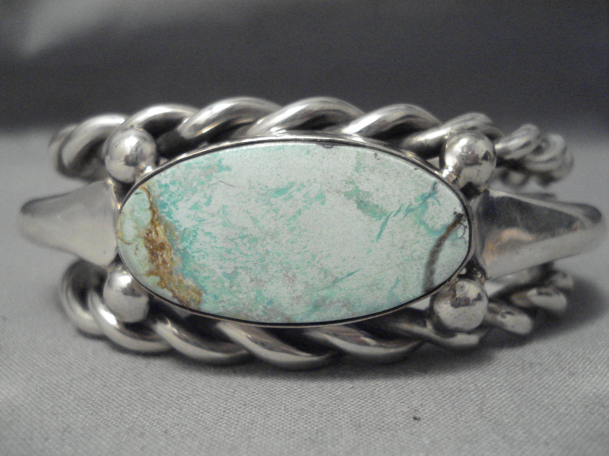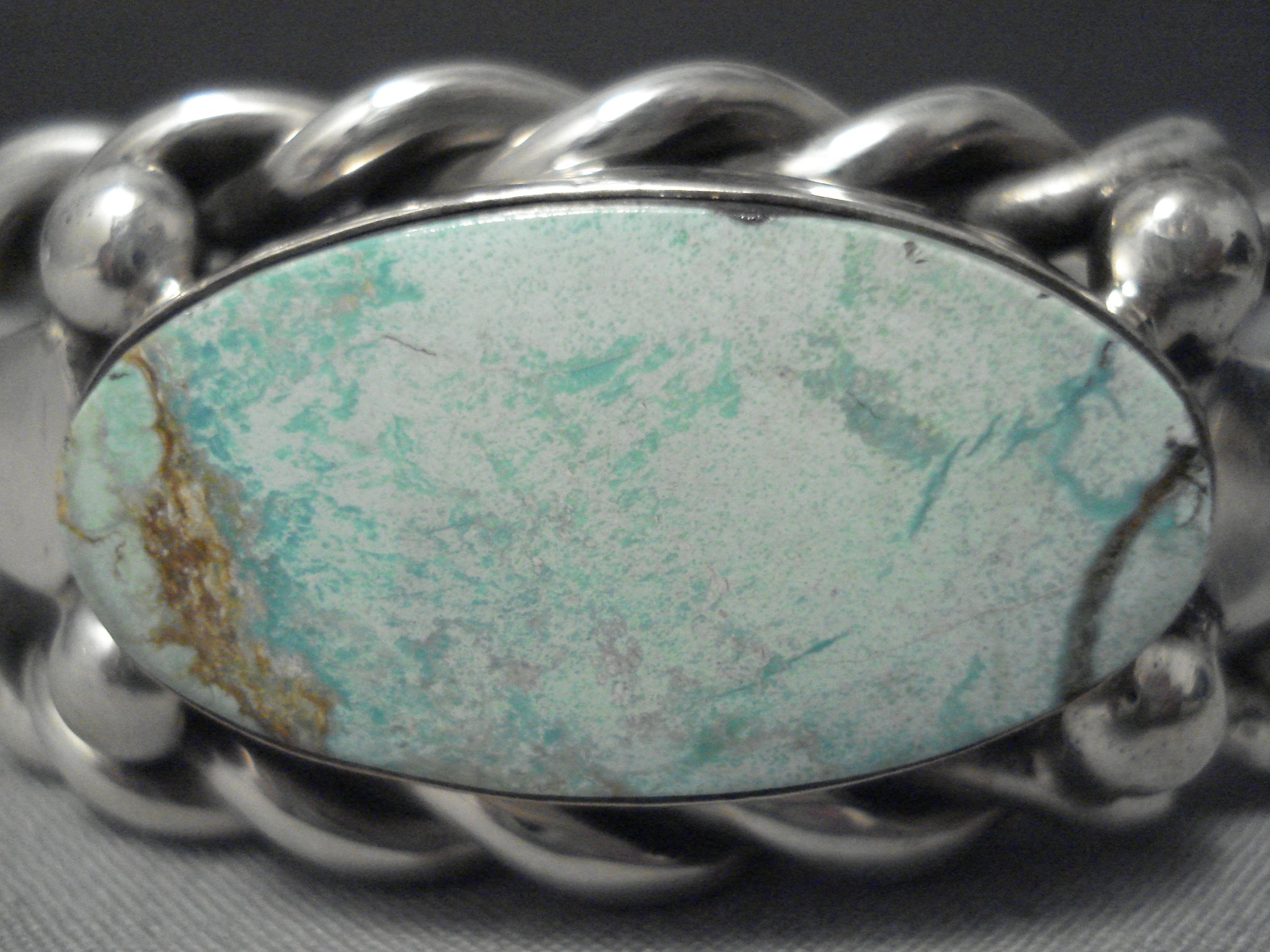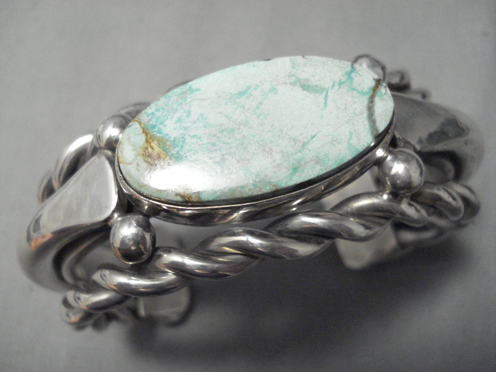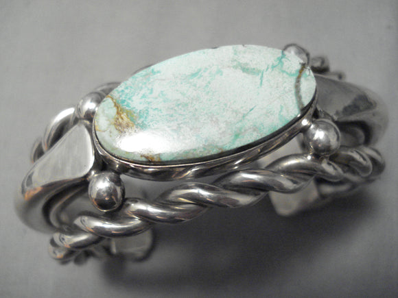 So Heavy!! Vintage Native American Navajo Green Turquoise Sterling Silver Bracelet- 142 Grams
