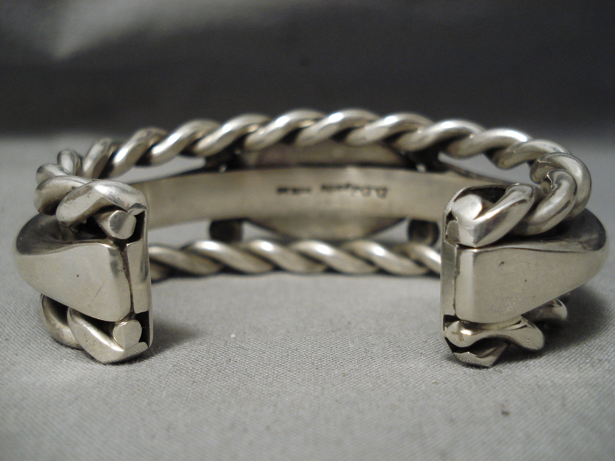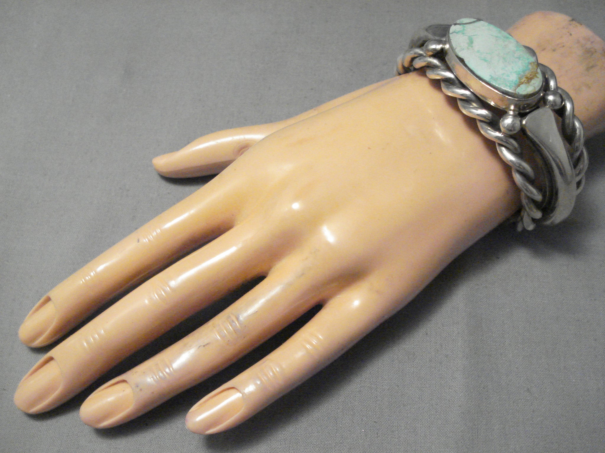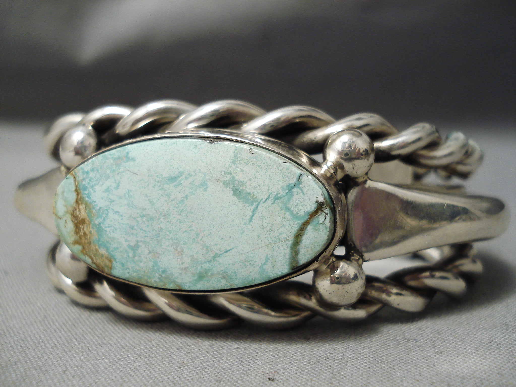 So Heavy!! Vintage Native American Navajo Green Turquoise Sterling Silver Bracelet- 142 Grams