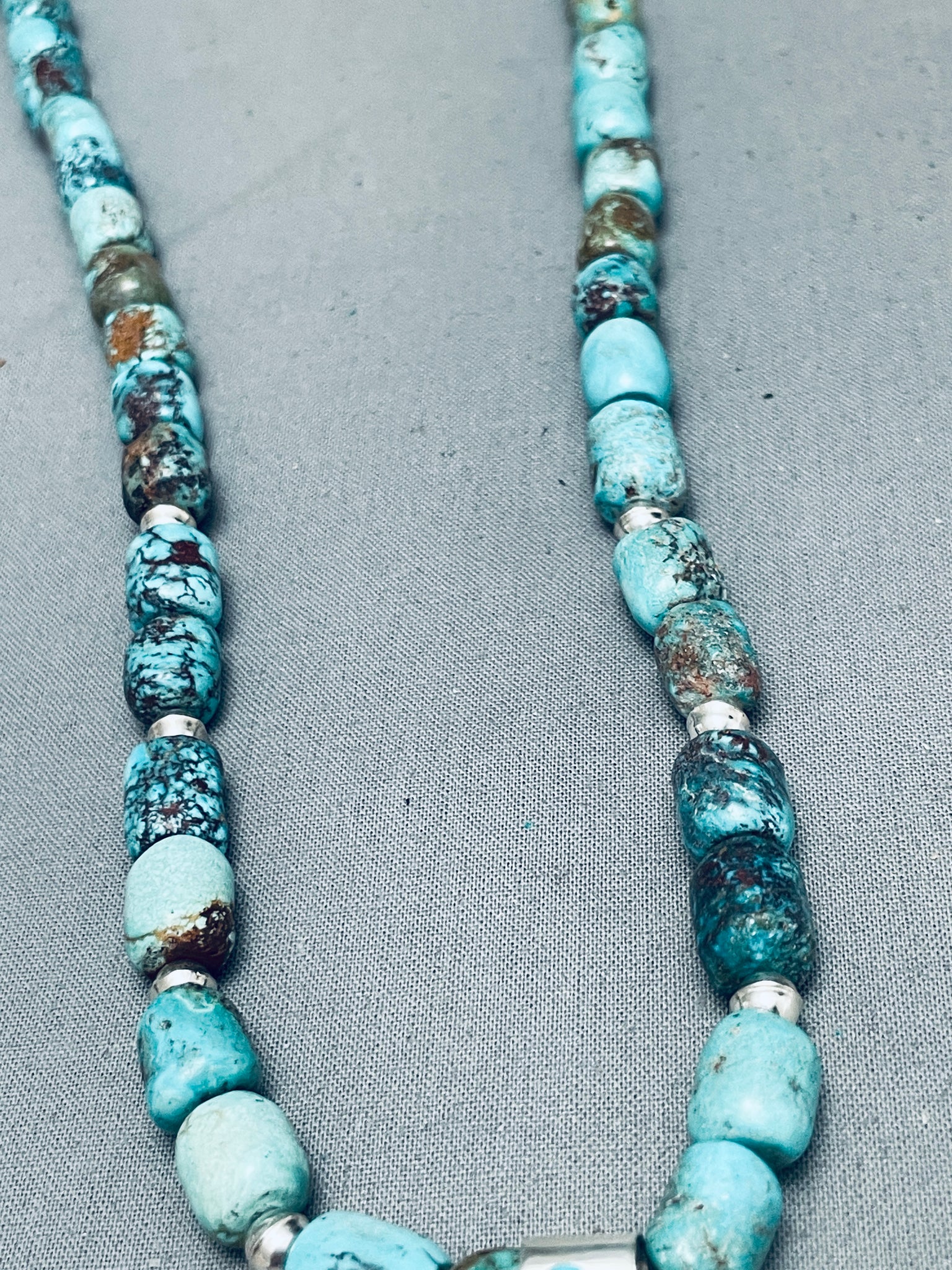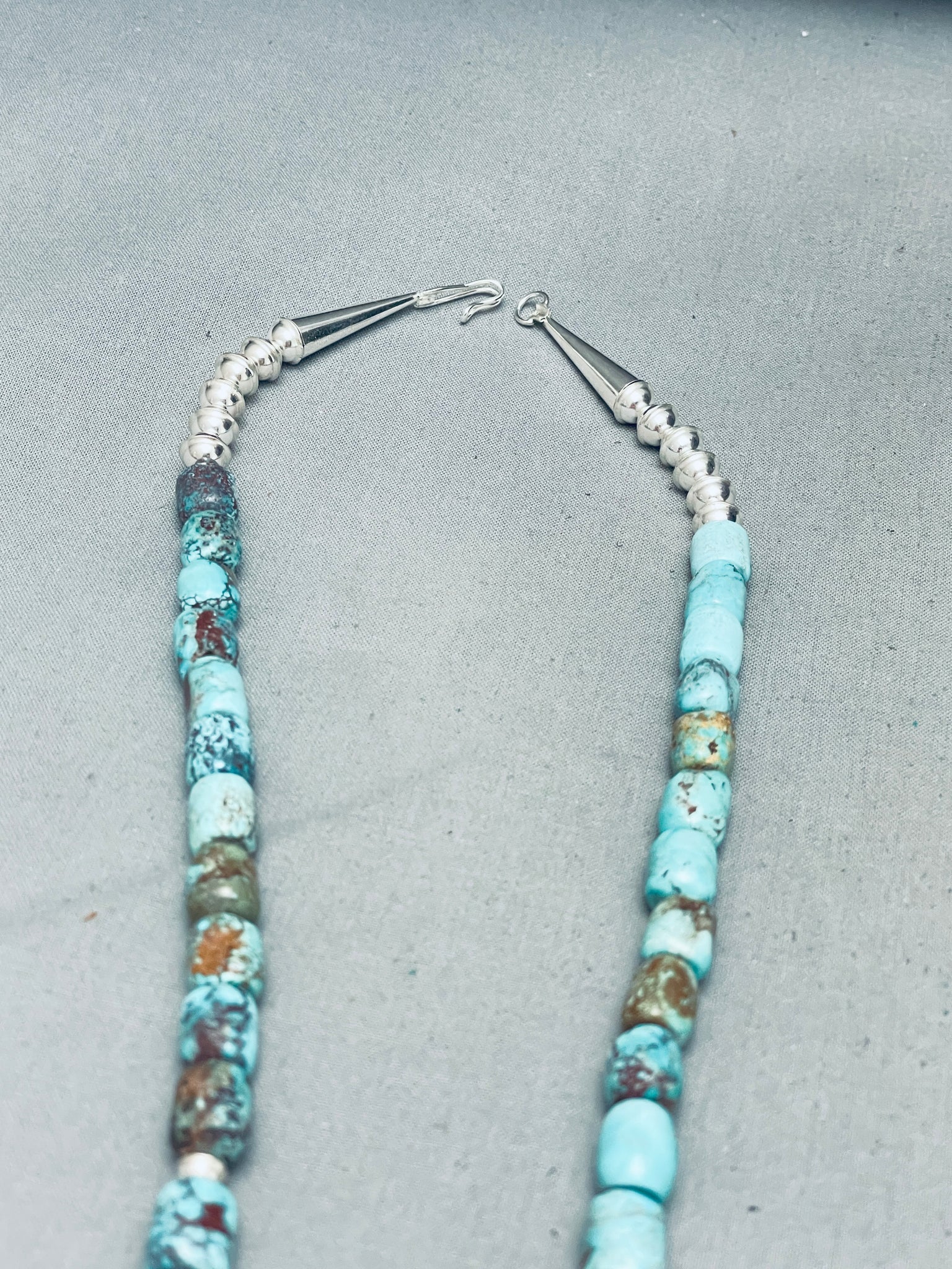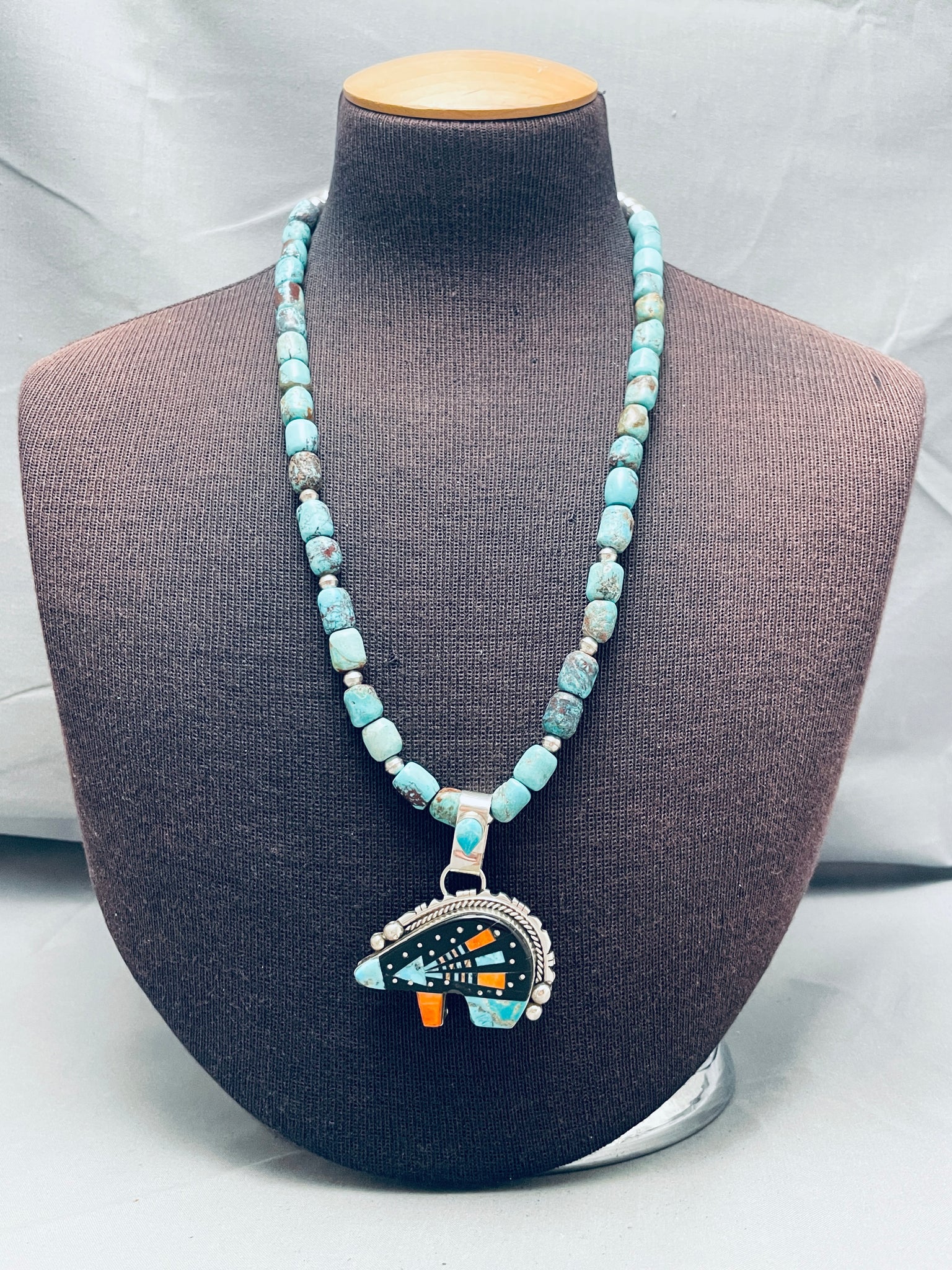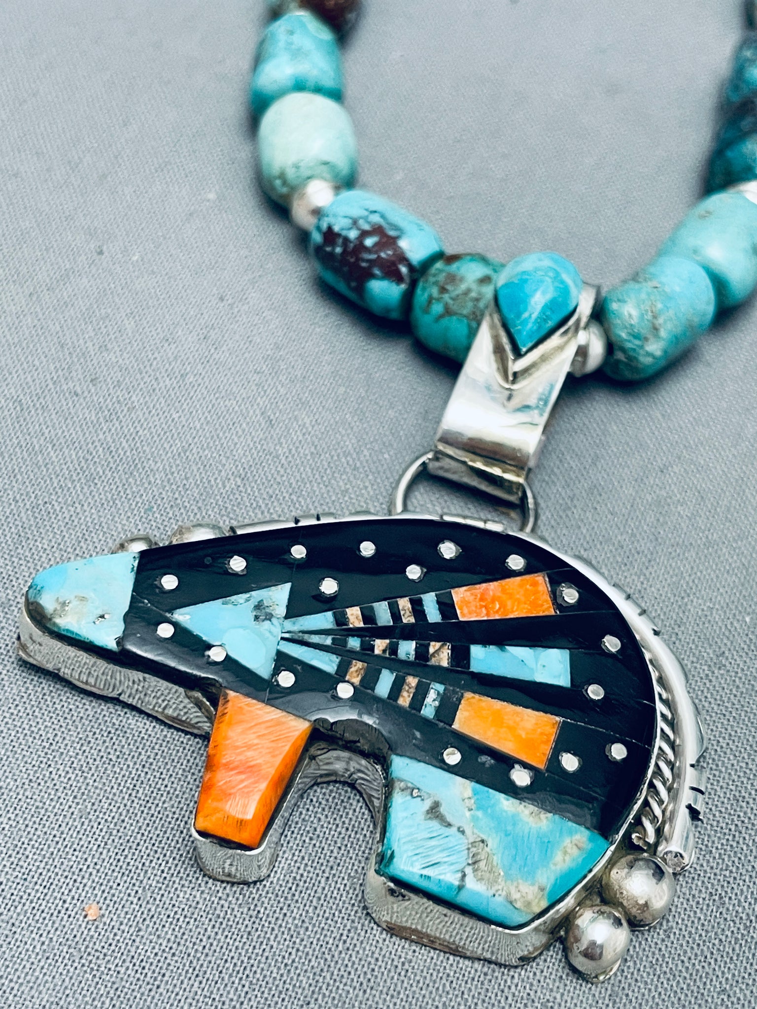 Space Bear Native American Navajo Turquoise Inlay Sterling Silver Necklace