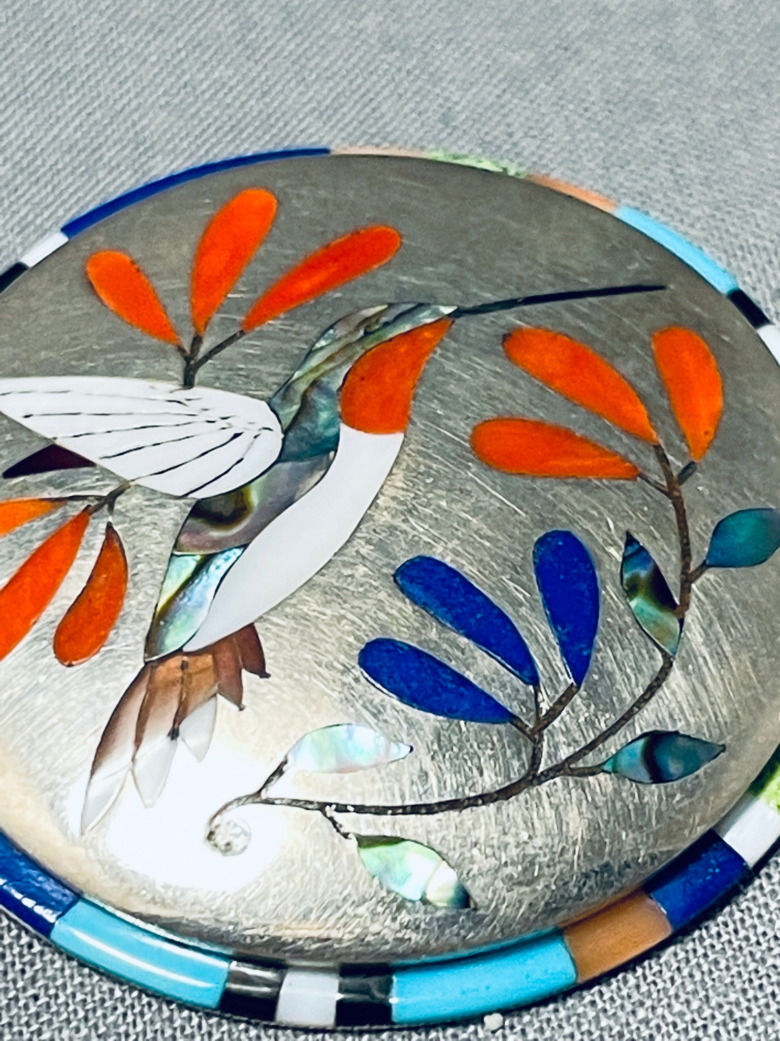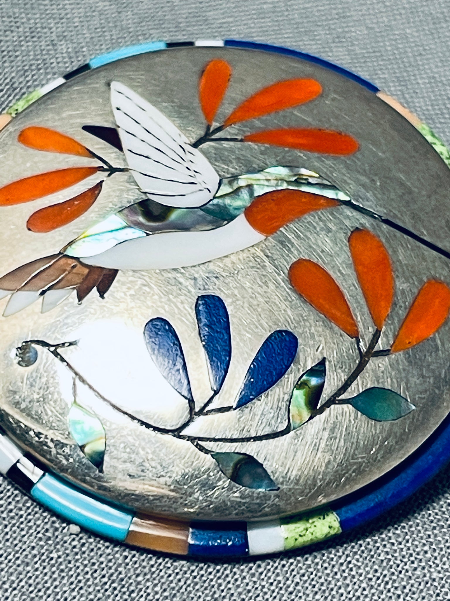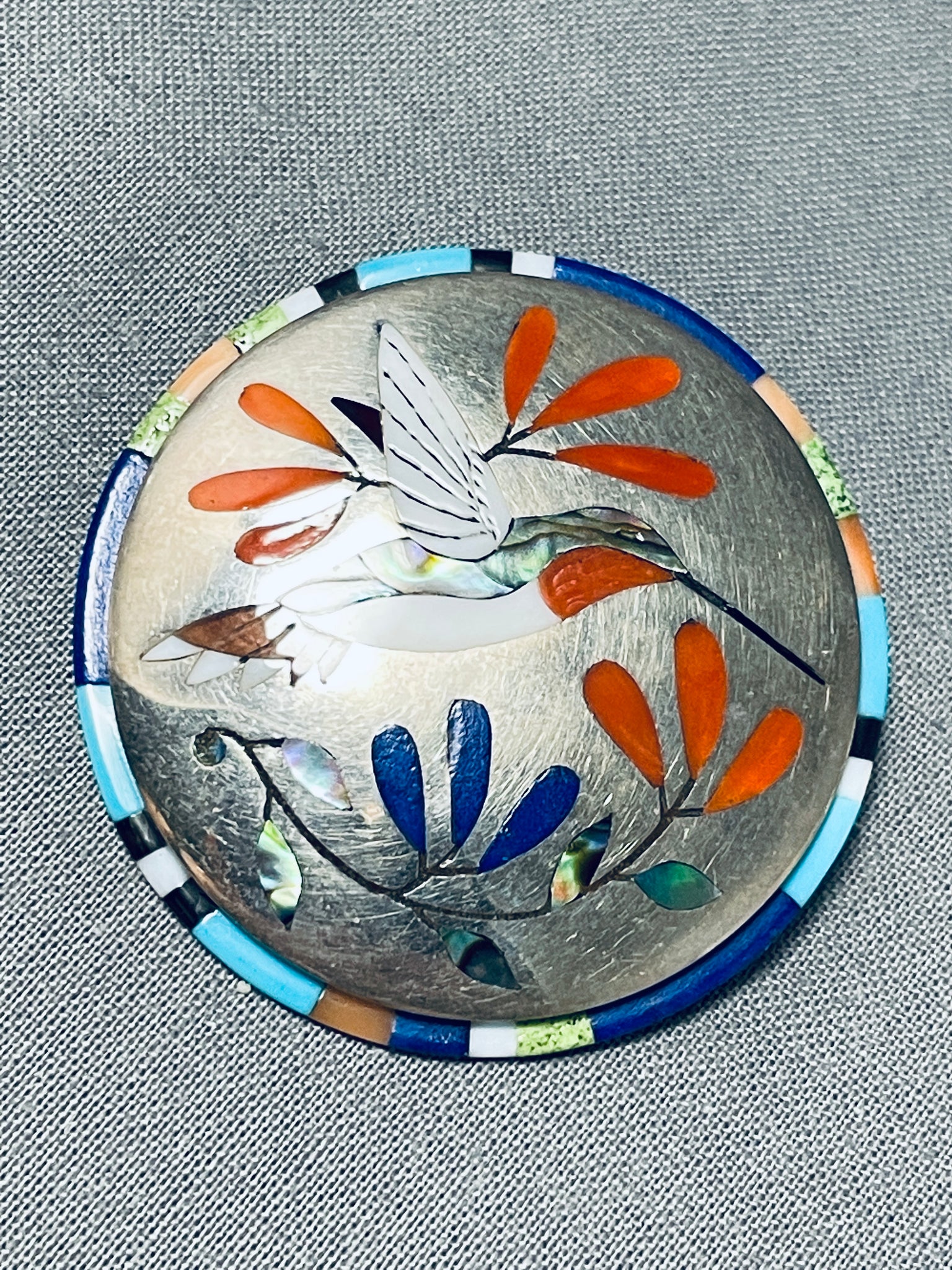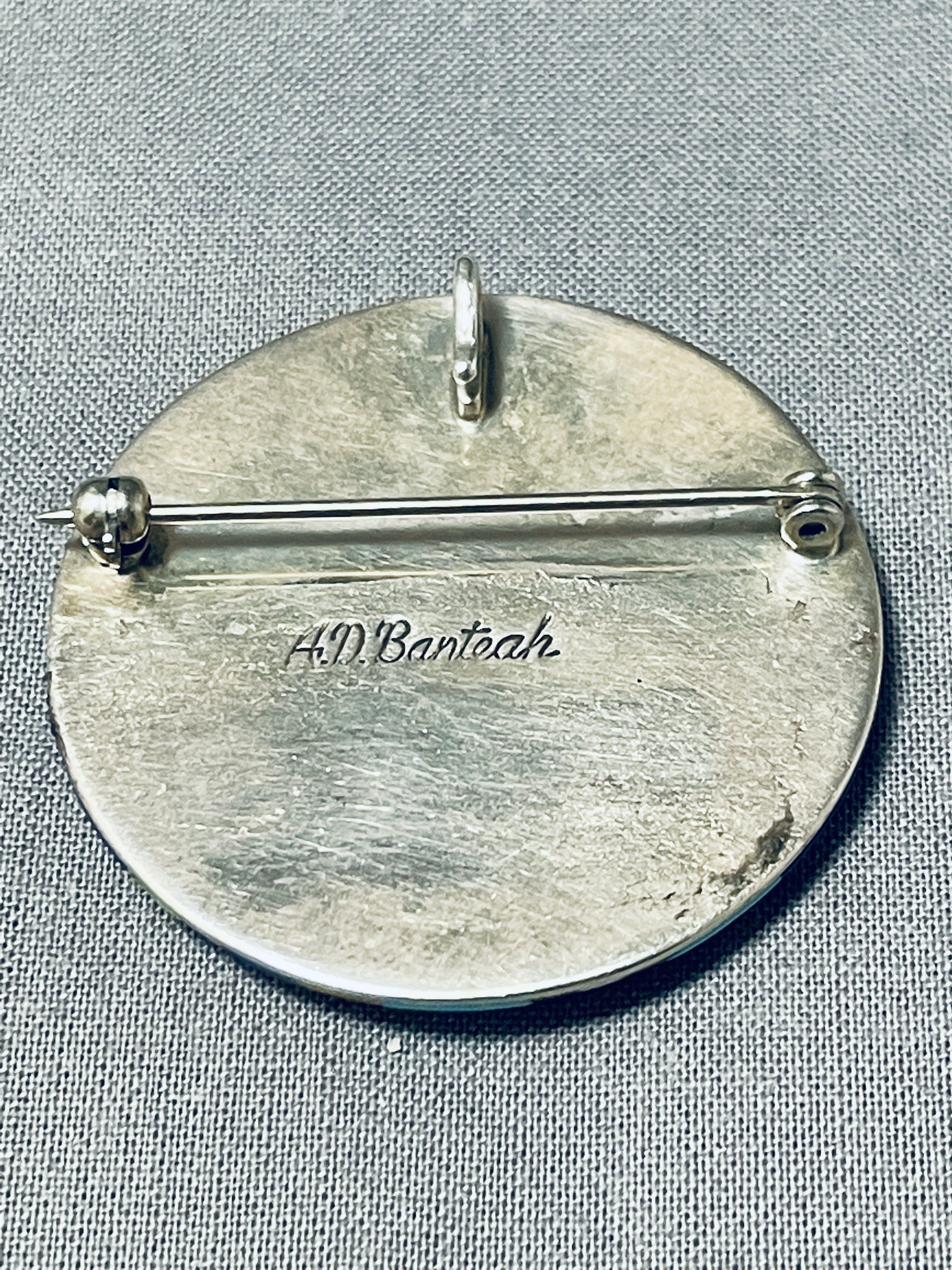 Special Al Banteah Vintage Native American Zuni Turquoise Sterling Silver Pin/ Pendant Signed