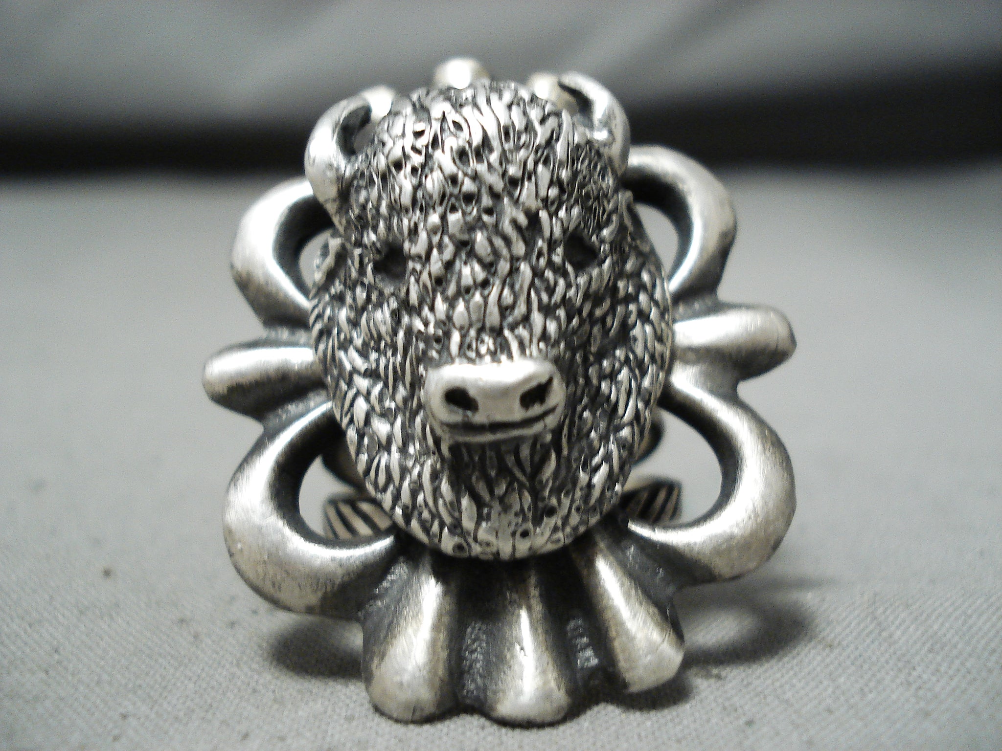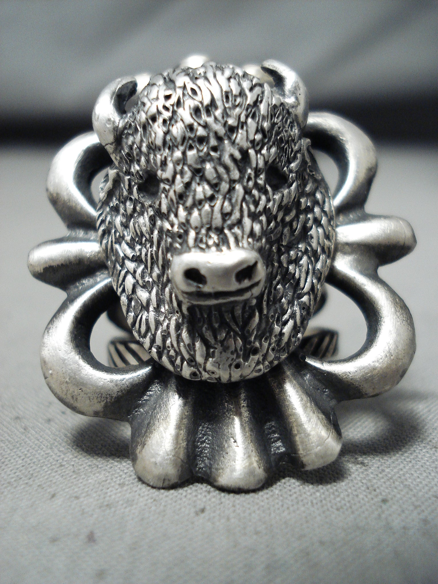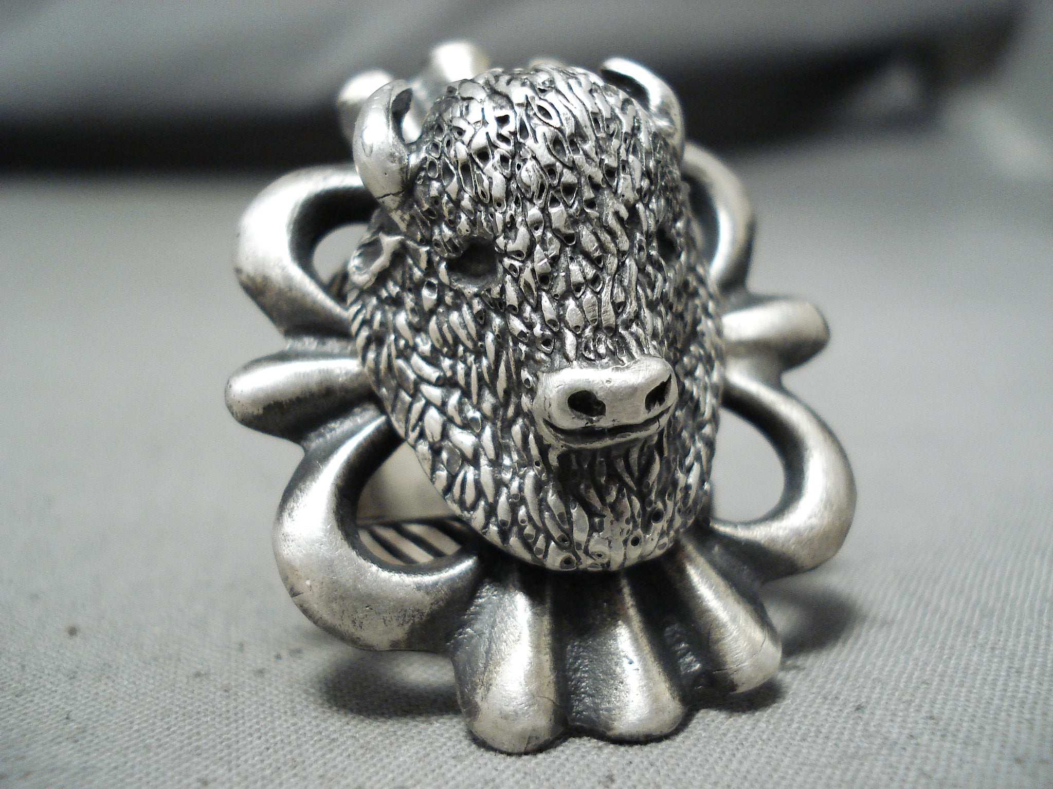 Spectacular Mongo Native American Navajo Sterling Silver Buffalo Ring