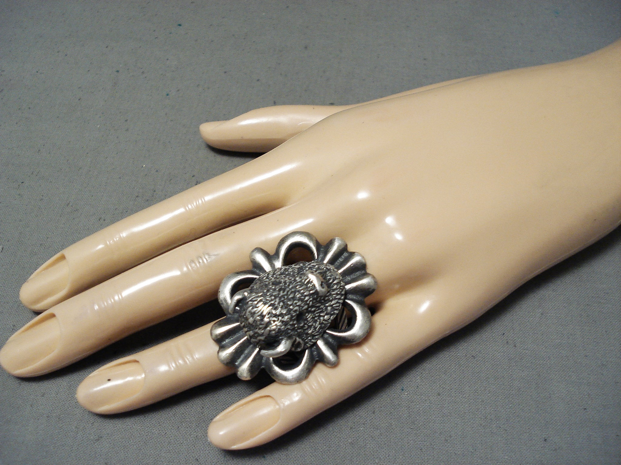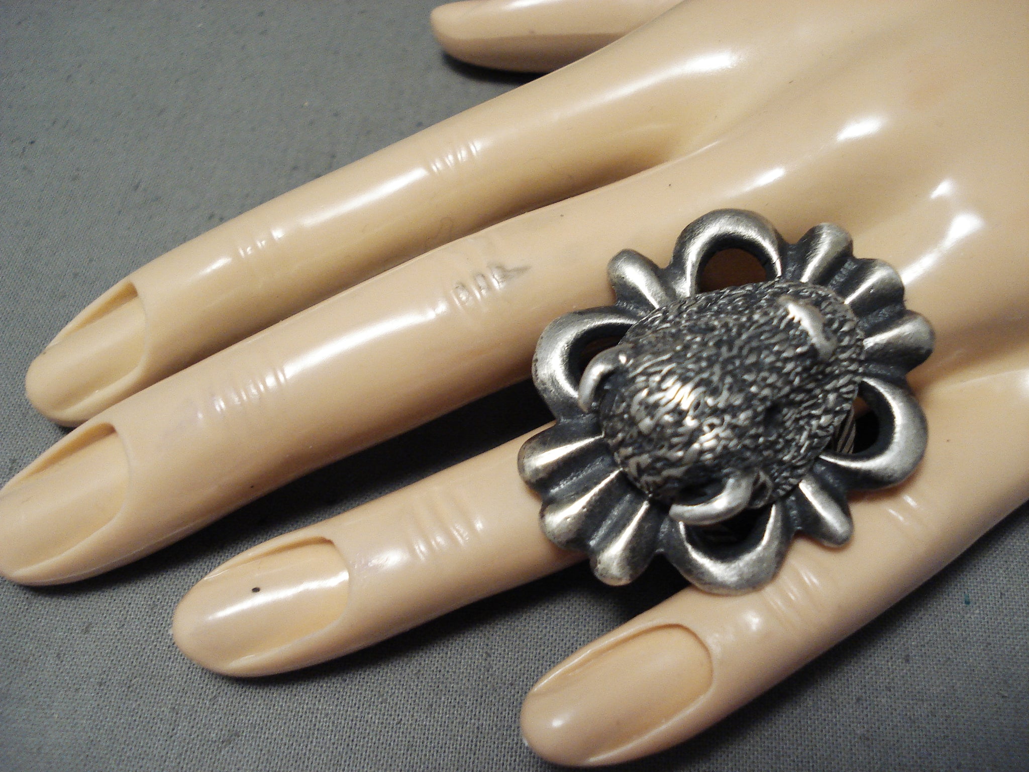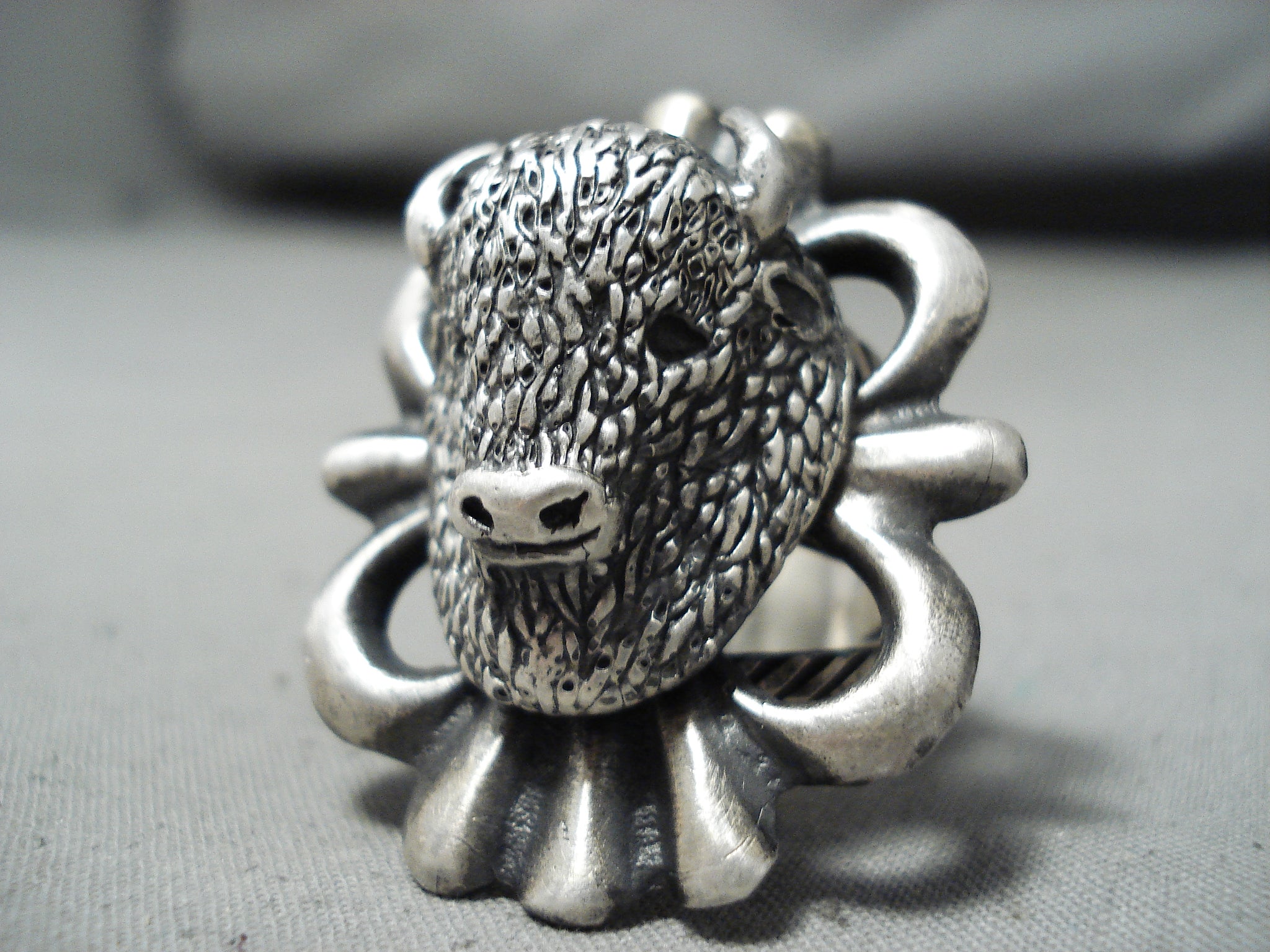 Spectacular Mongo Native American Navajo Sterling Silver Buffalo Ring