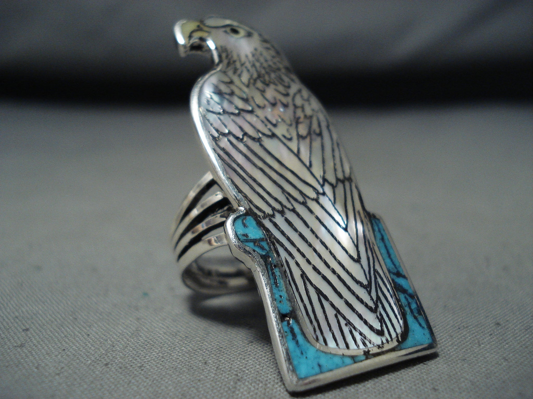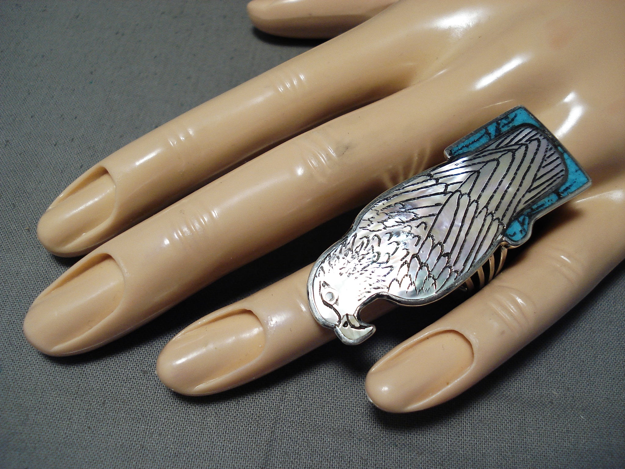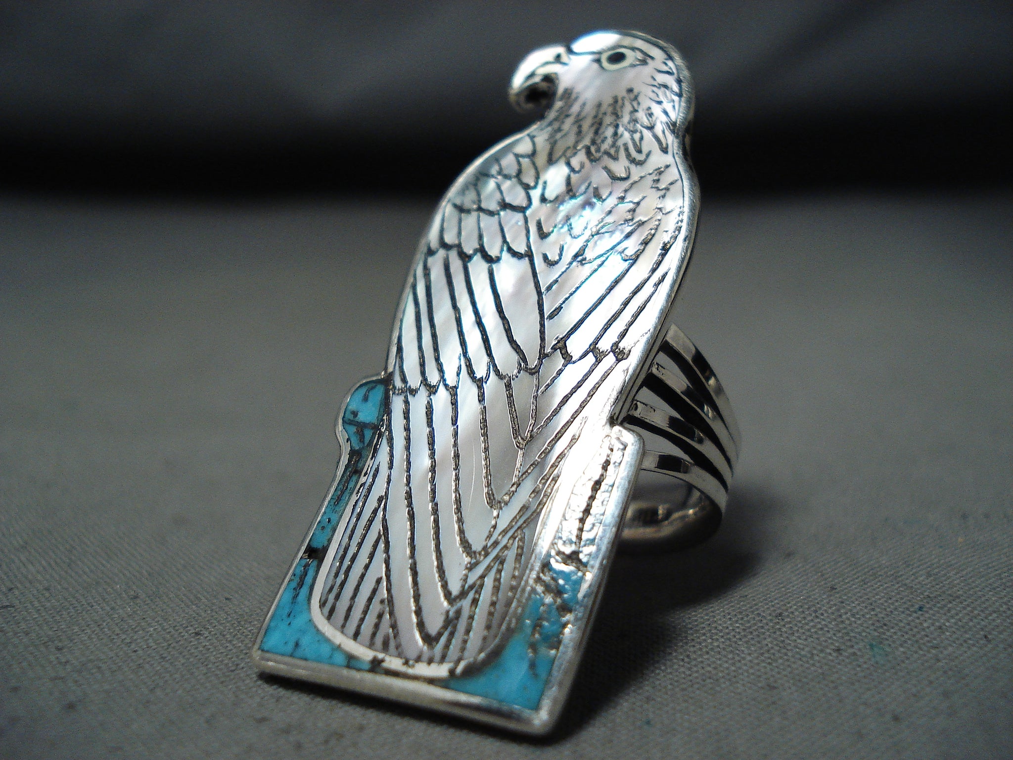 Spectacular Native American Zuni Mother Of Pearl Sterling Silver Ring
