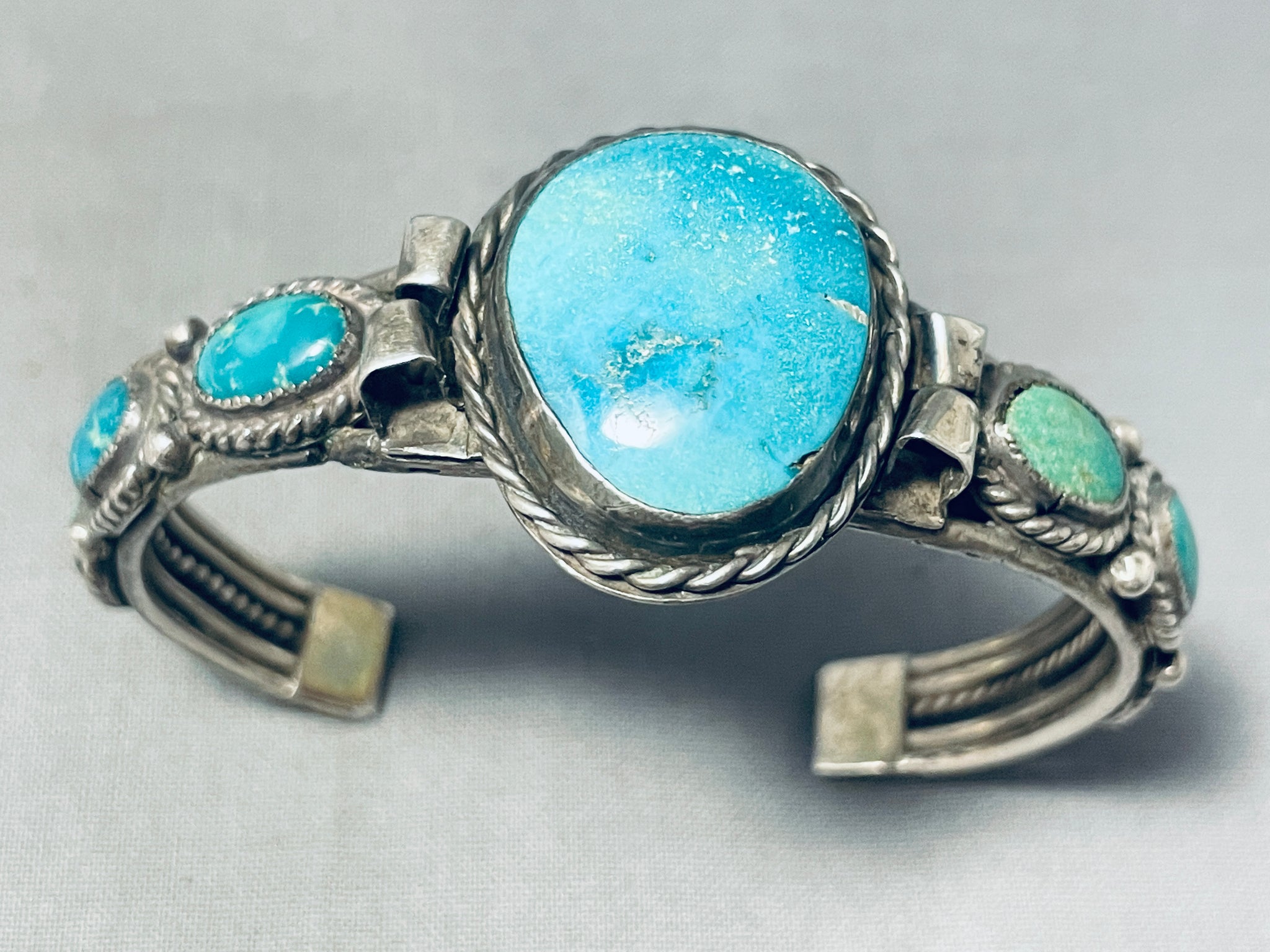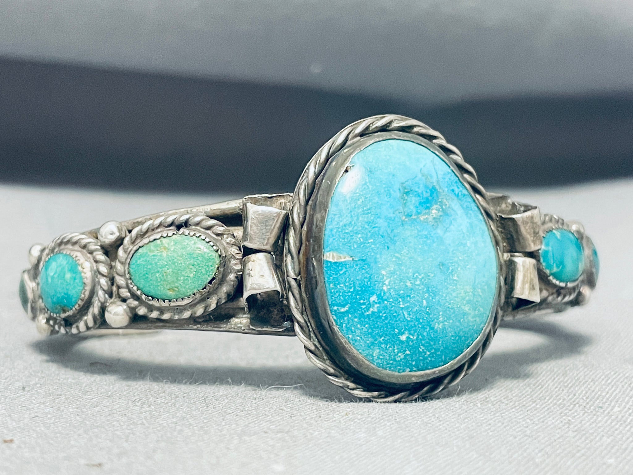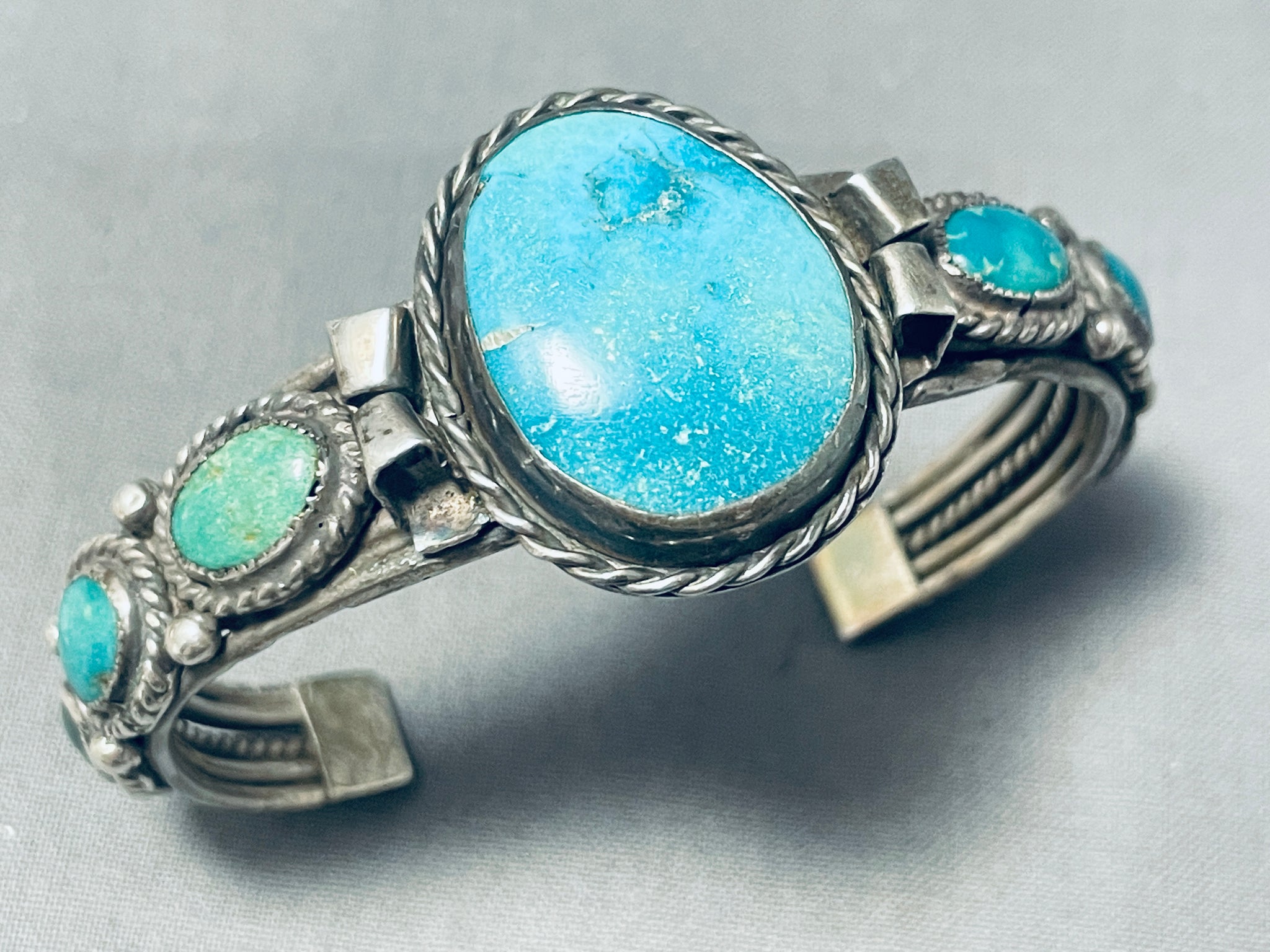 Spectacular Vintage Native American Navajo Blue Green Turquoise Sterling Silver Bracelet