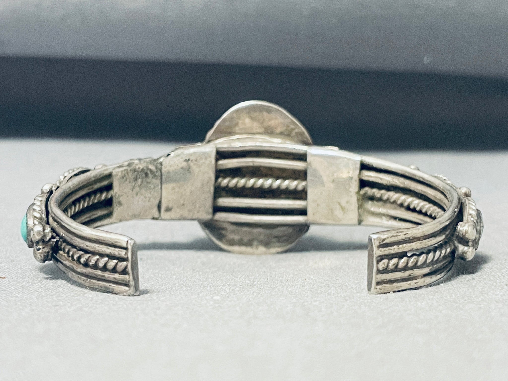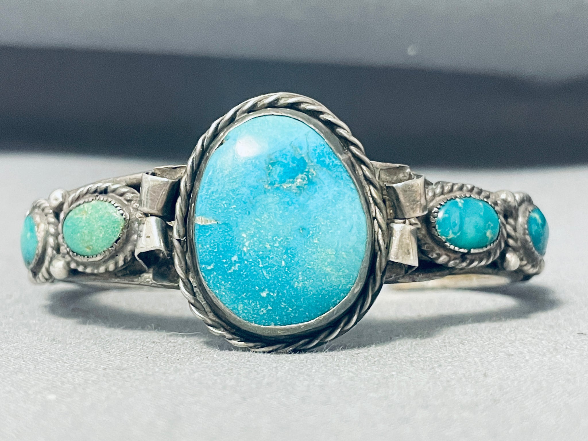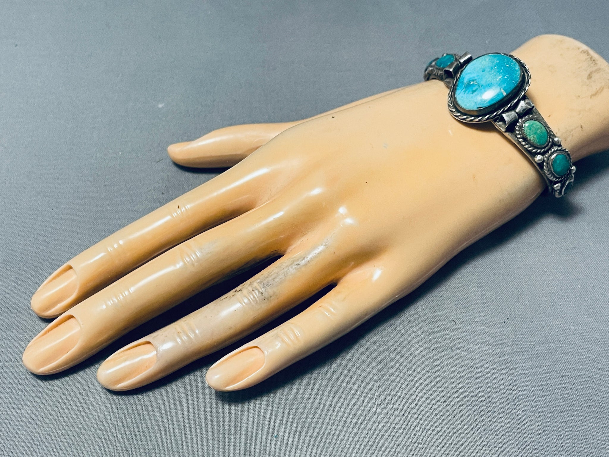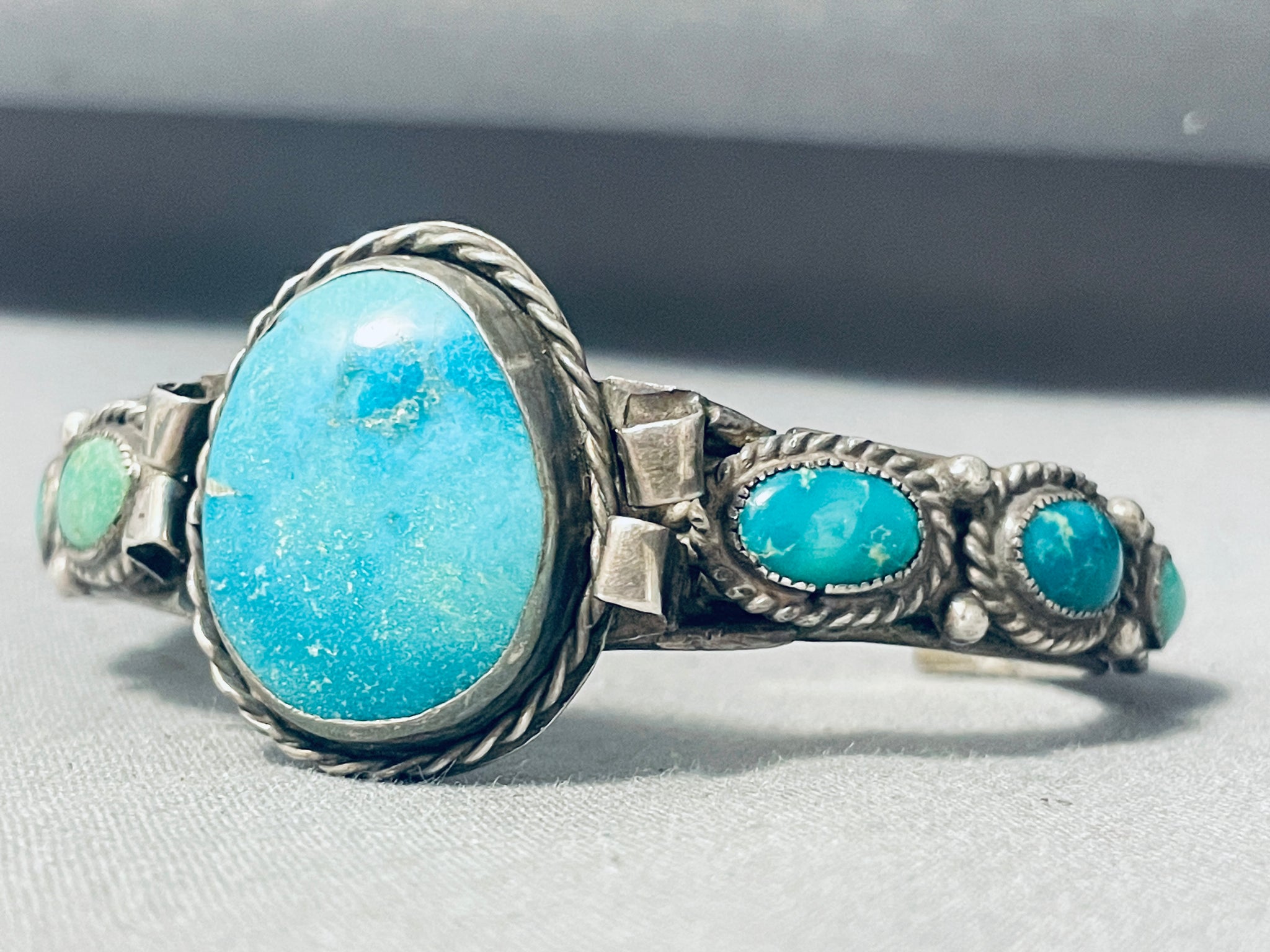 Spectacular Vintage Native American Navajo Blue Green Turquoise Sterling Silver Bracelet