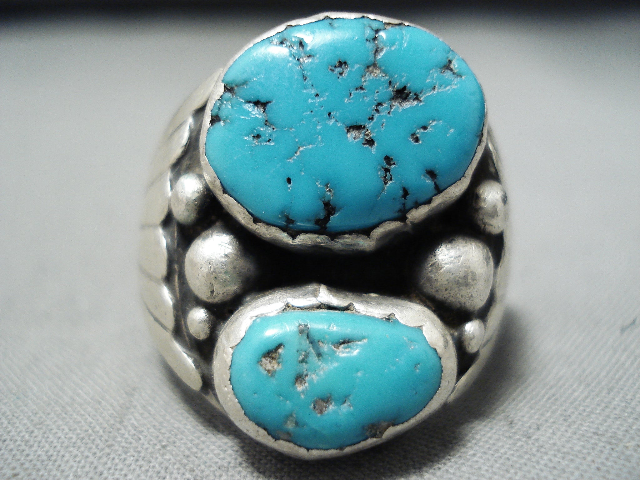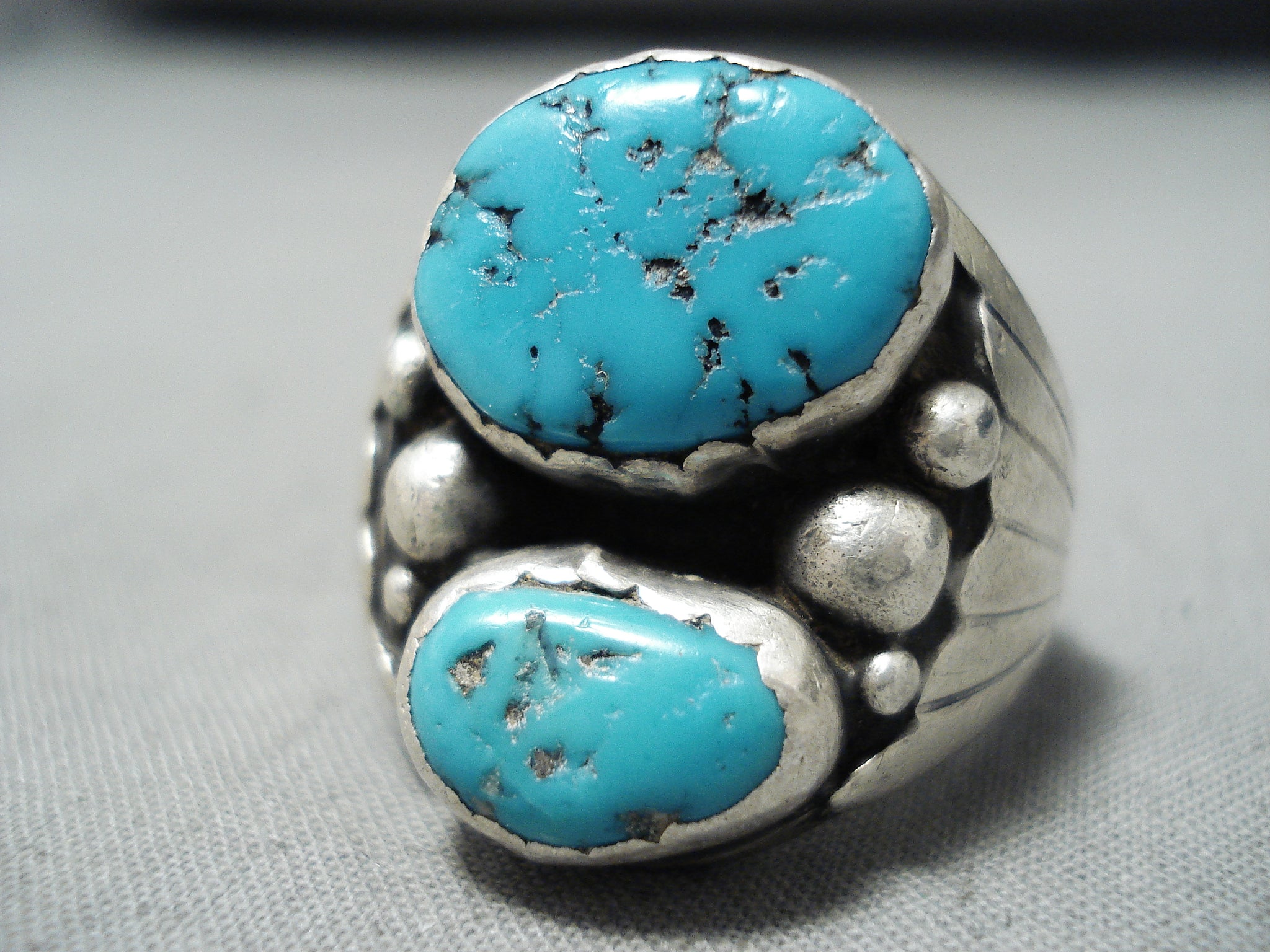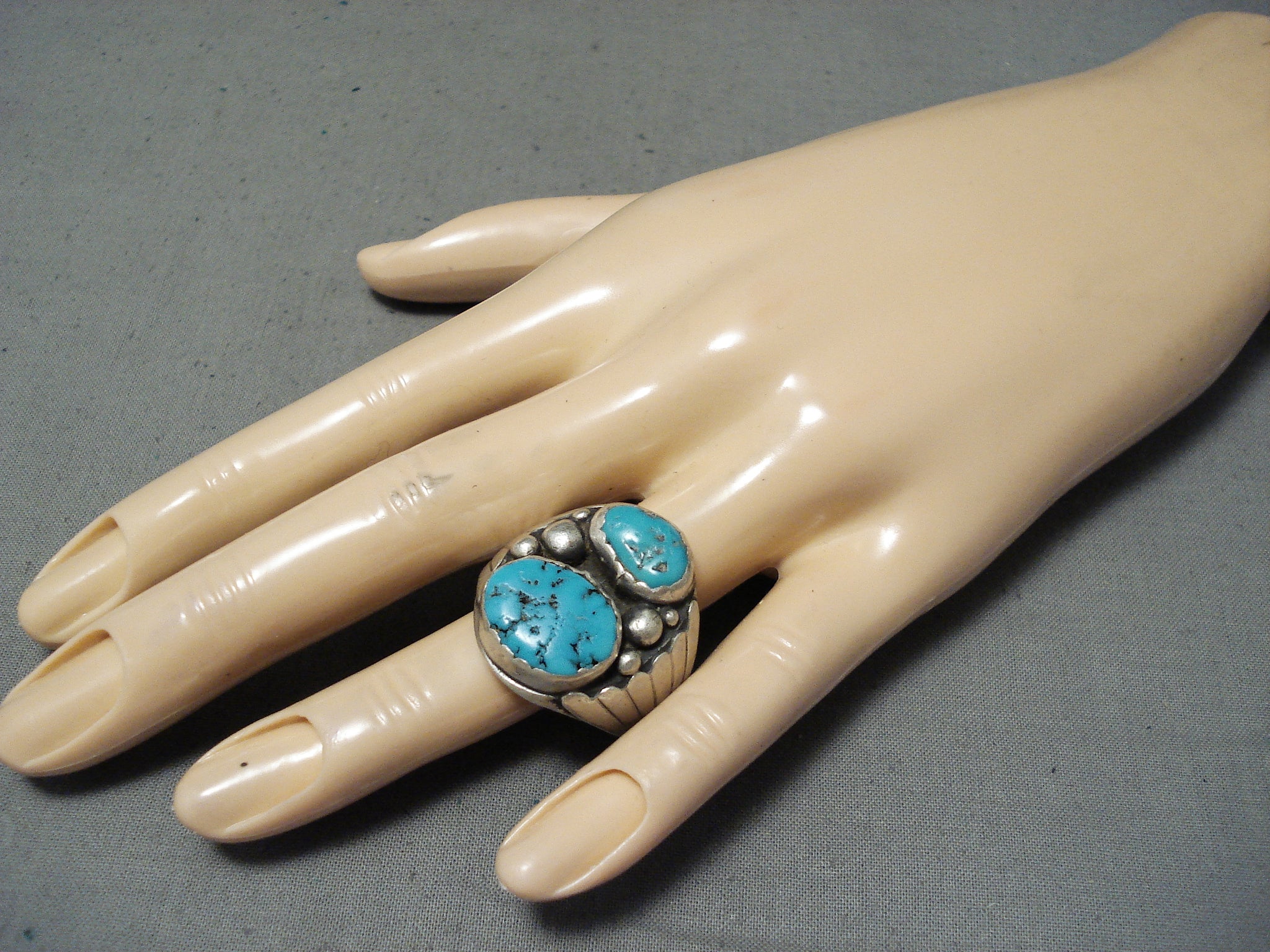 Spectacular Vintage Native American Navajo Kingman Turquoise Sterling Silver Ring