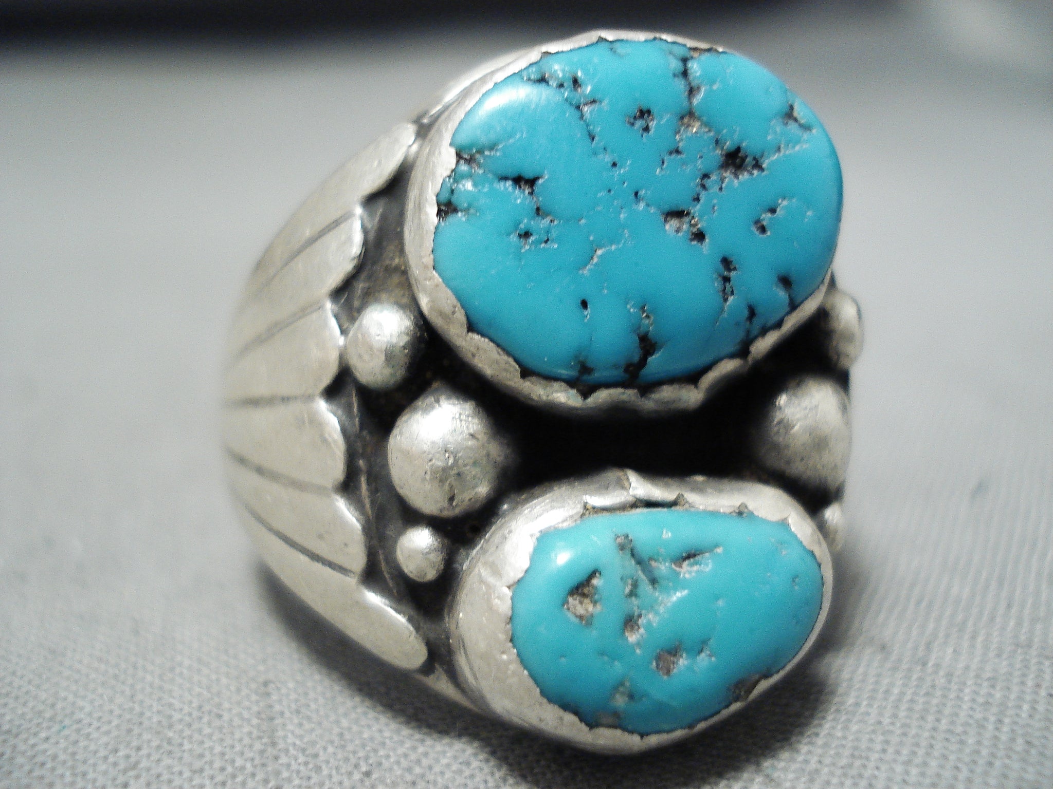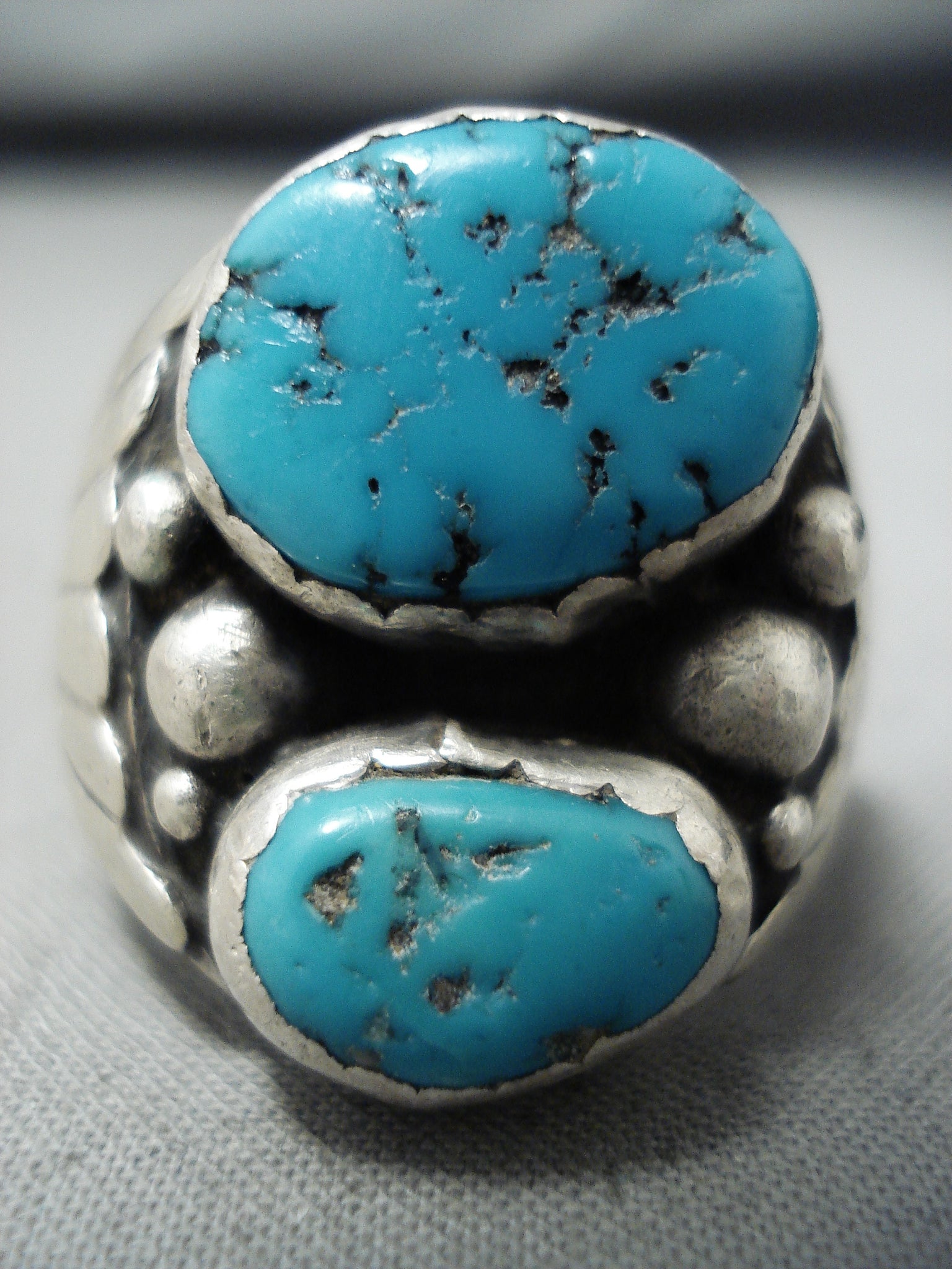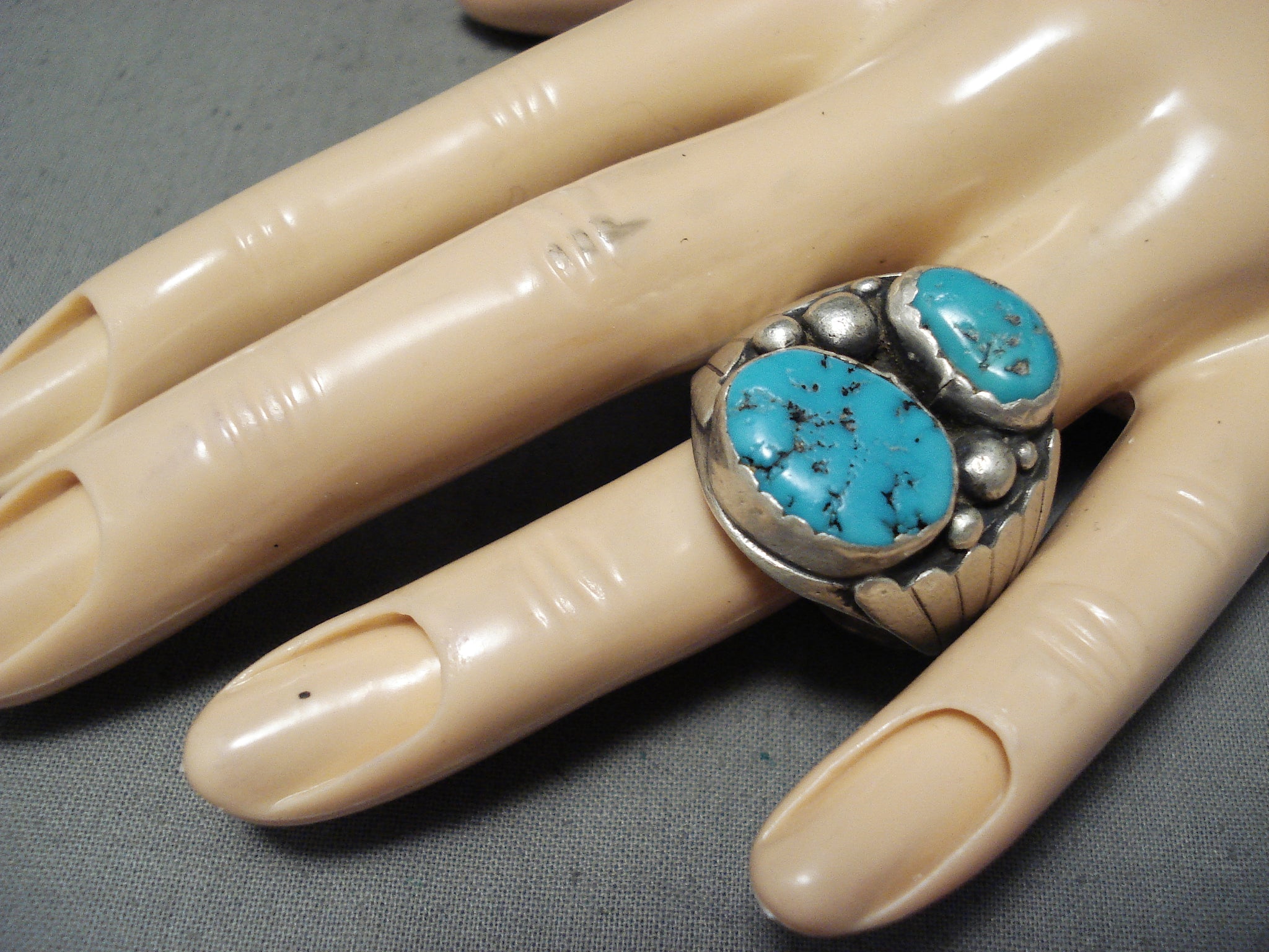 Spectacular Vintage Native American Navajo Kingman Turquoise Sterling Silver Ring
