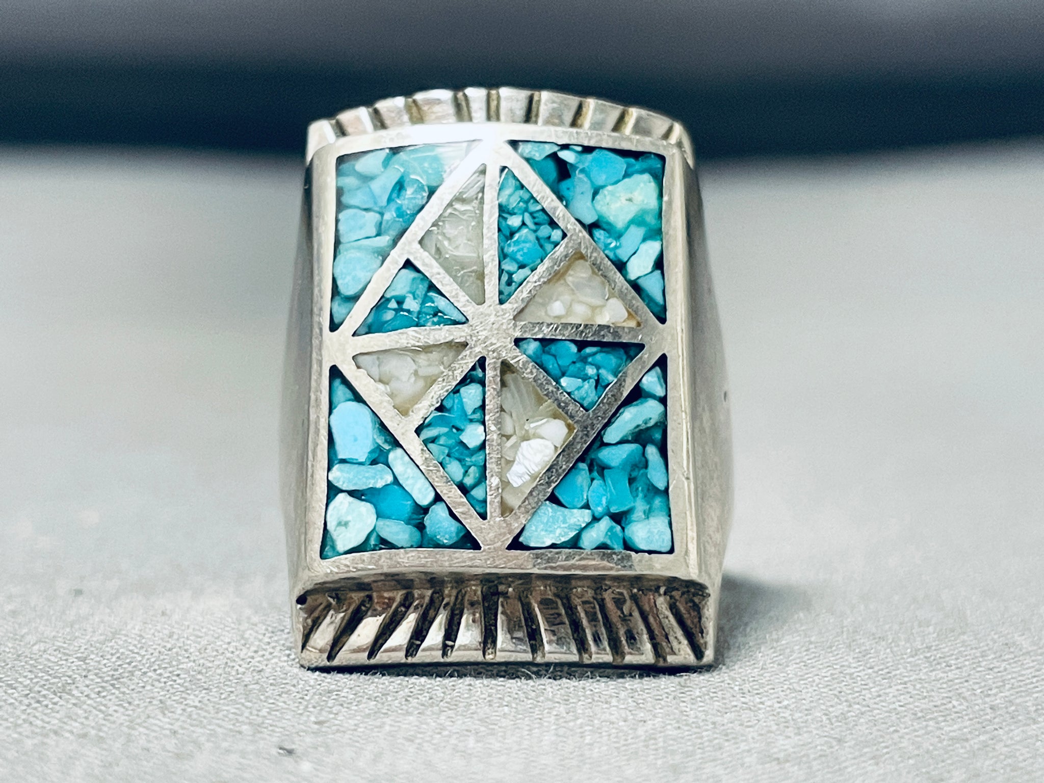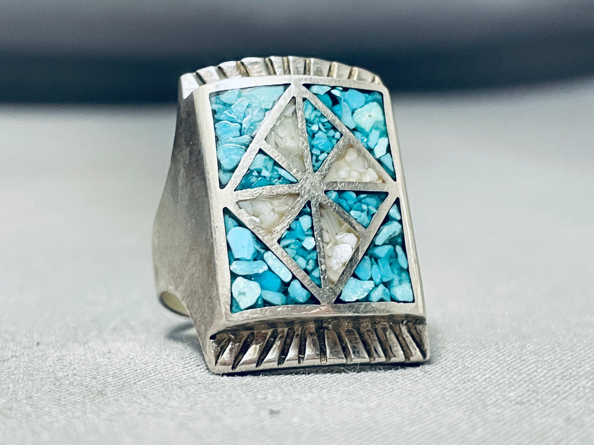 Spectacular Vintage Native American Navajo Turquoise Sterling Silver Ring