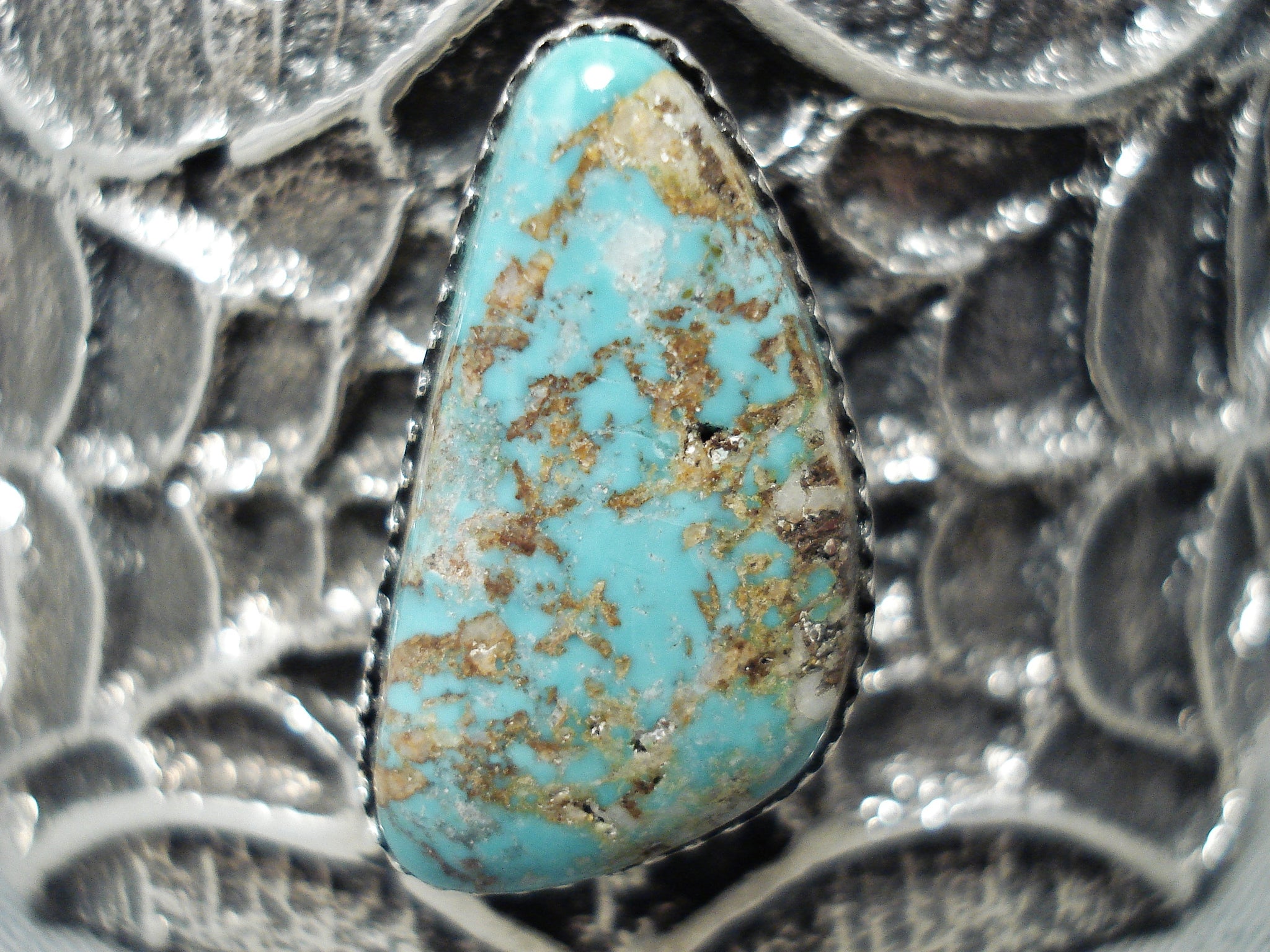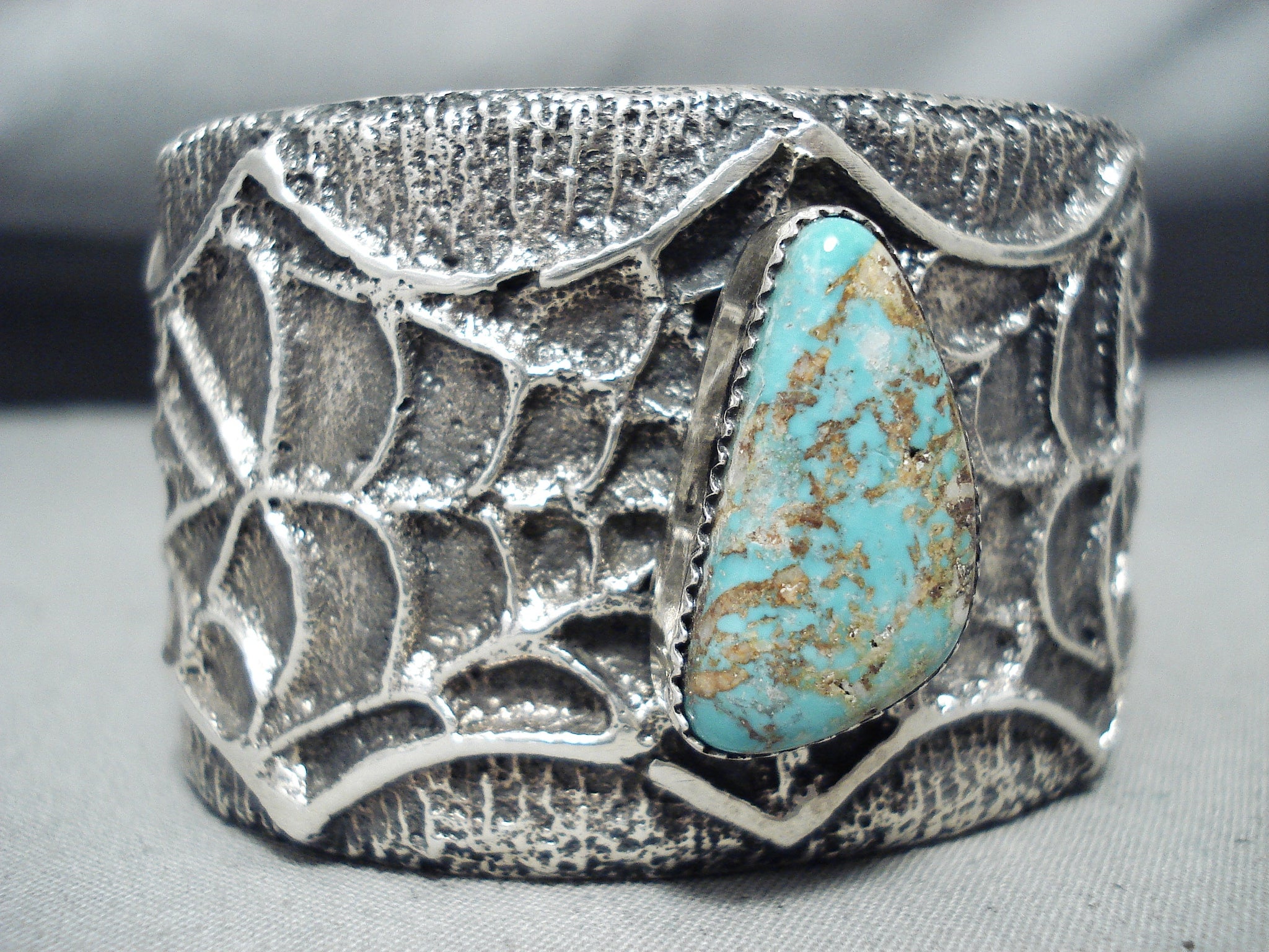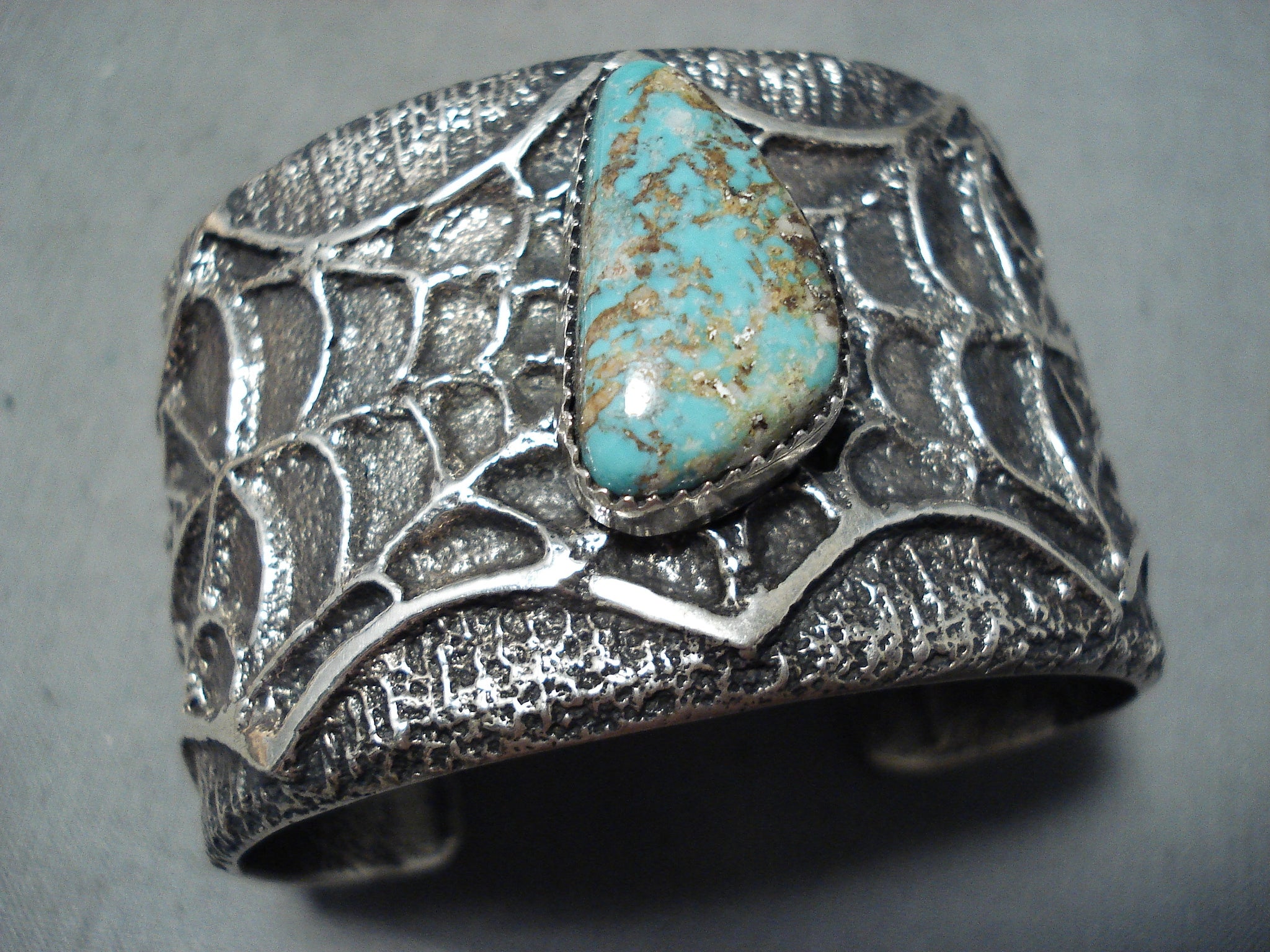 Spell-binding Native American Navajo Pilot Mountain Turquoise Sterling Silver Bracelet