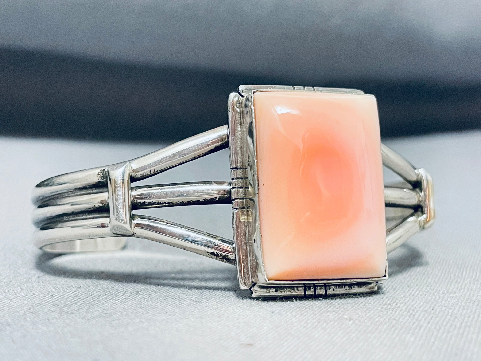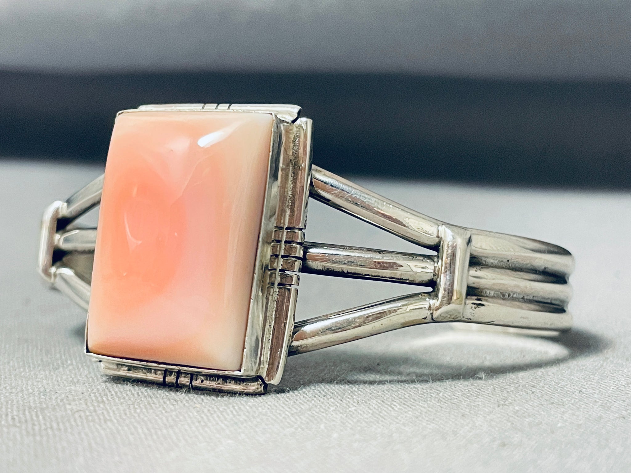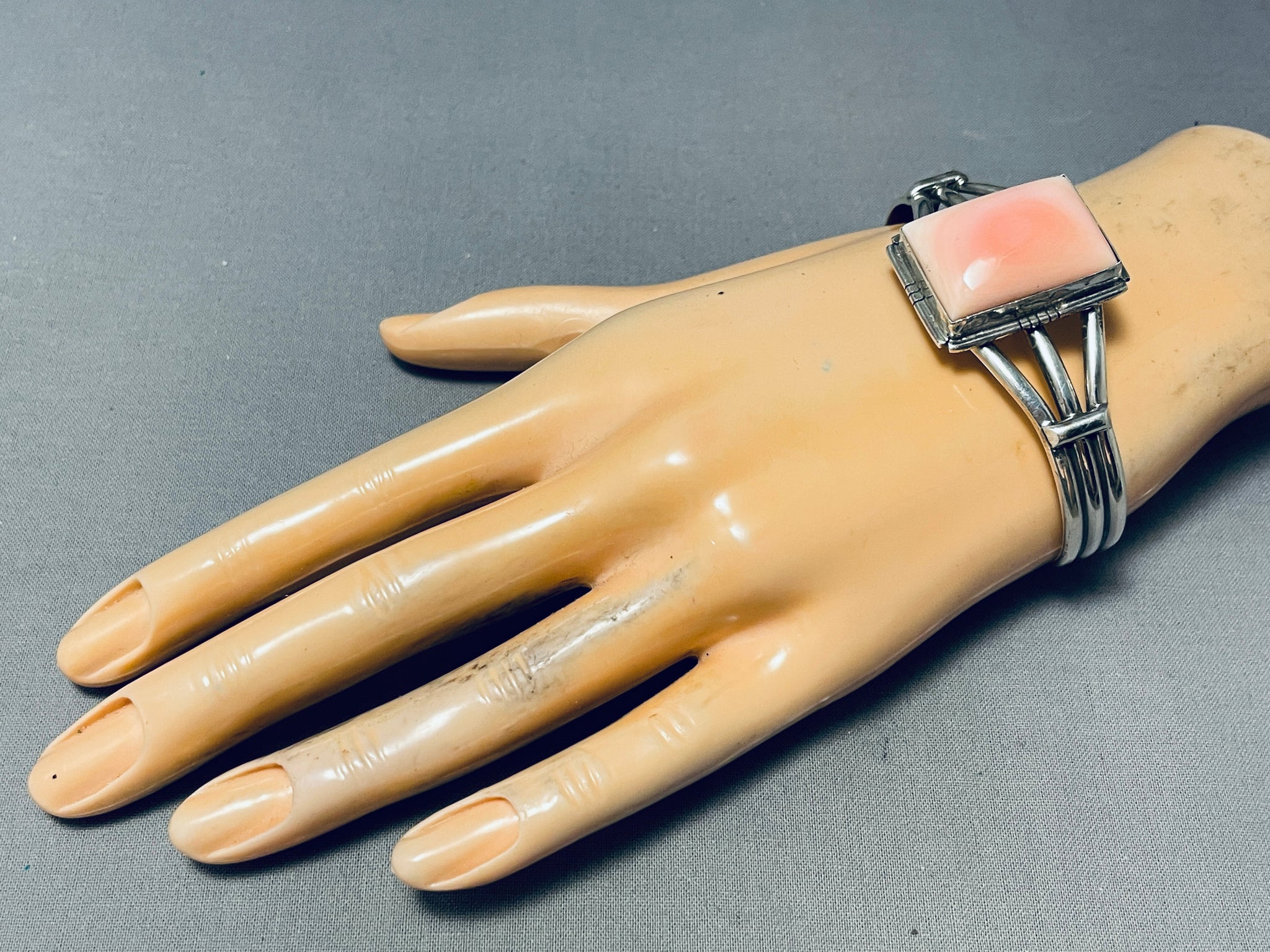 Striking Native American Navajo Pink Conch Sterling Silver Bracelet