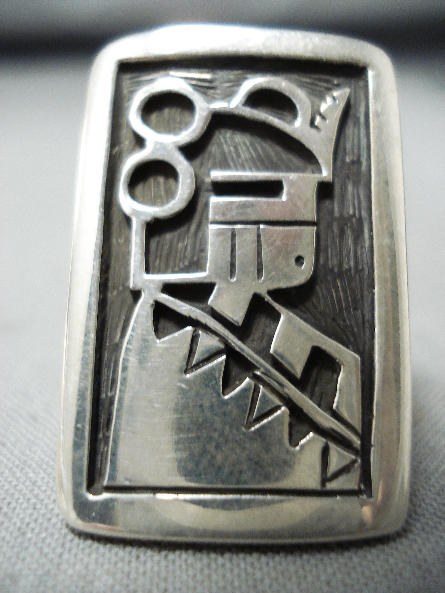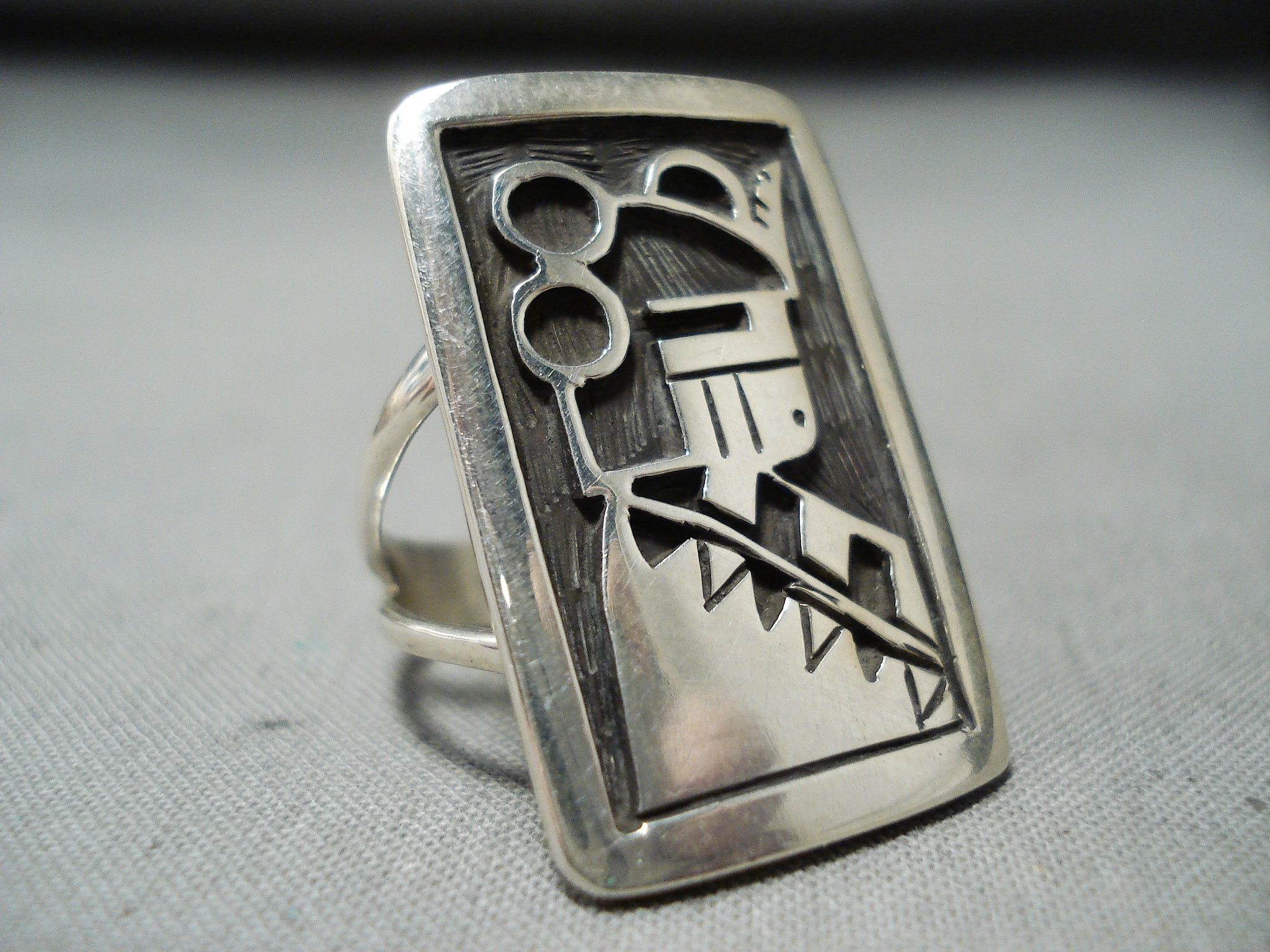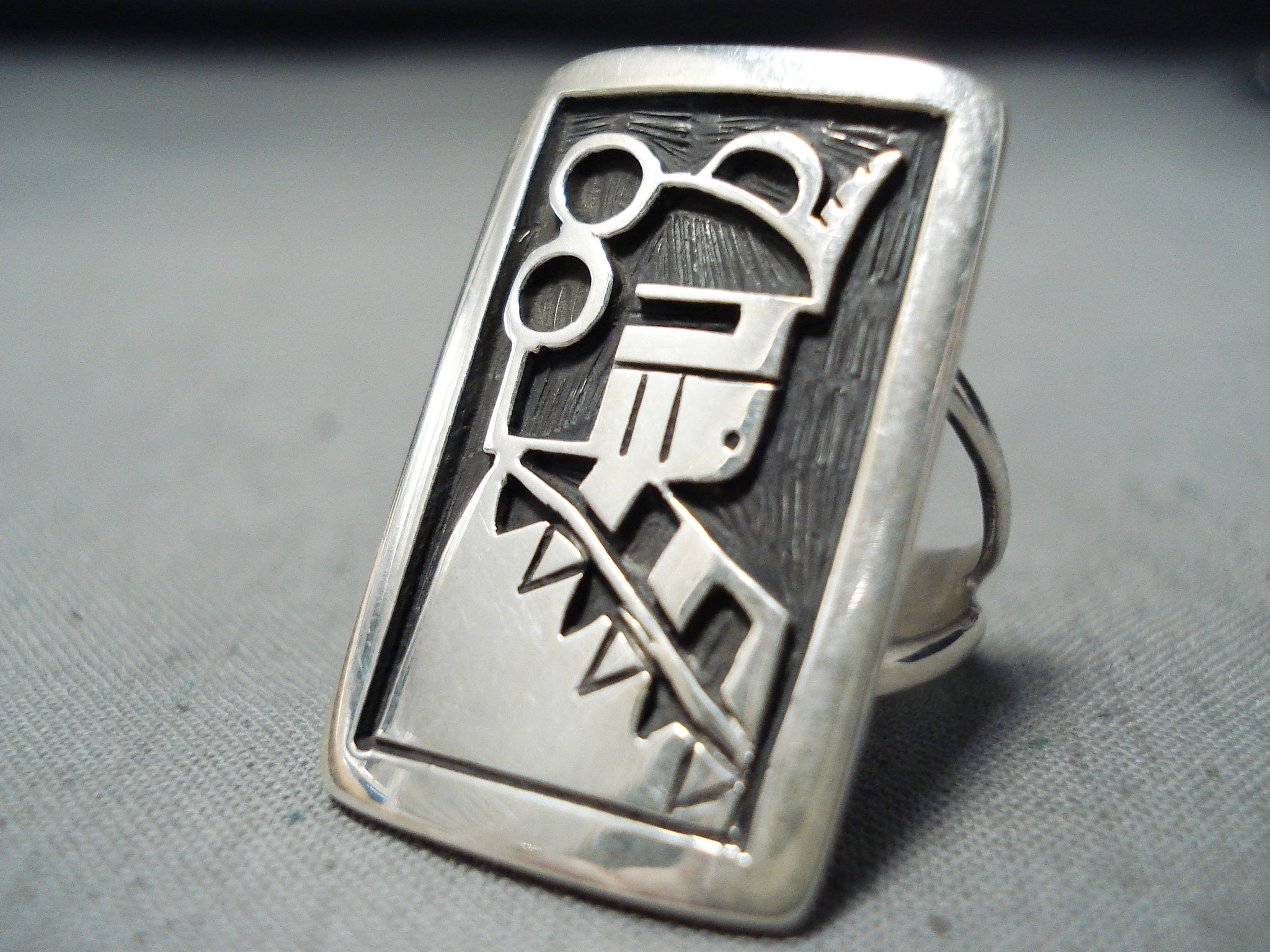 Striking Signed Native American Hopi Sterling Silver Kachina Ring