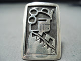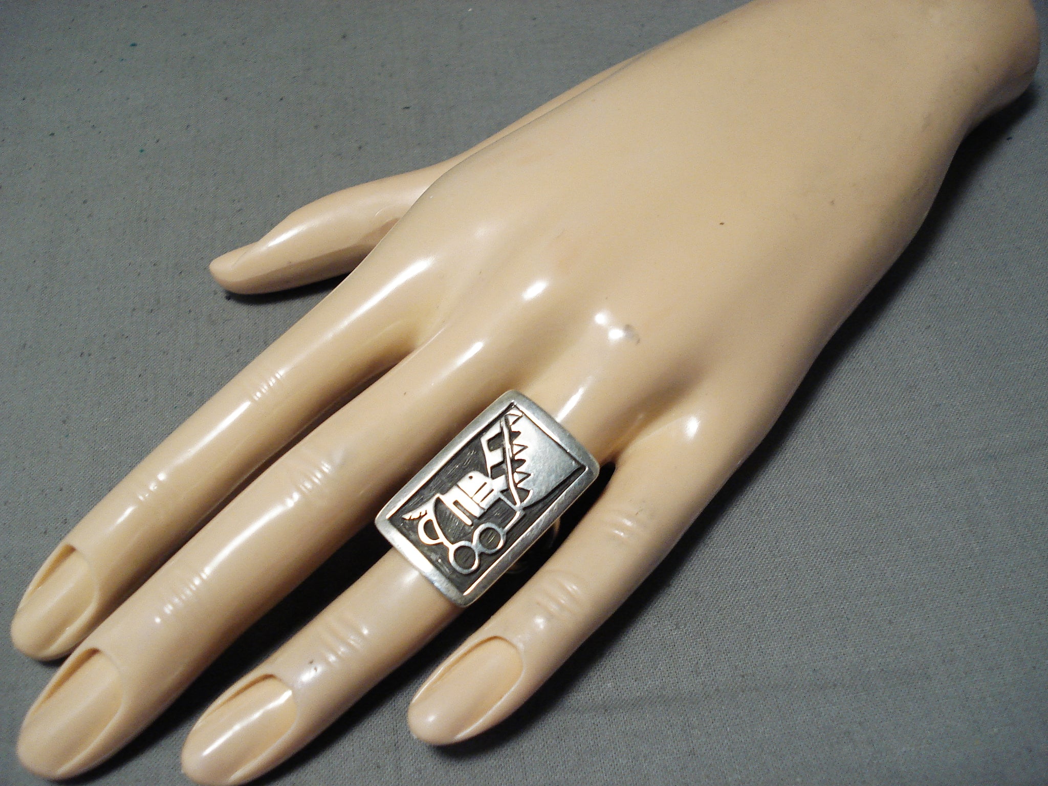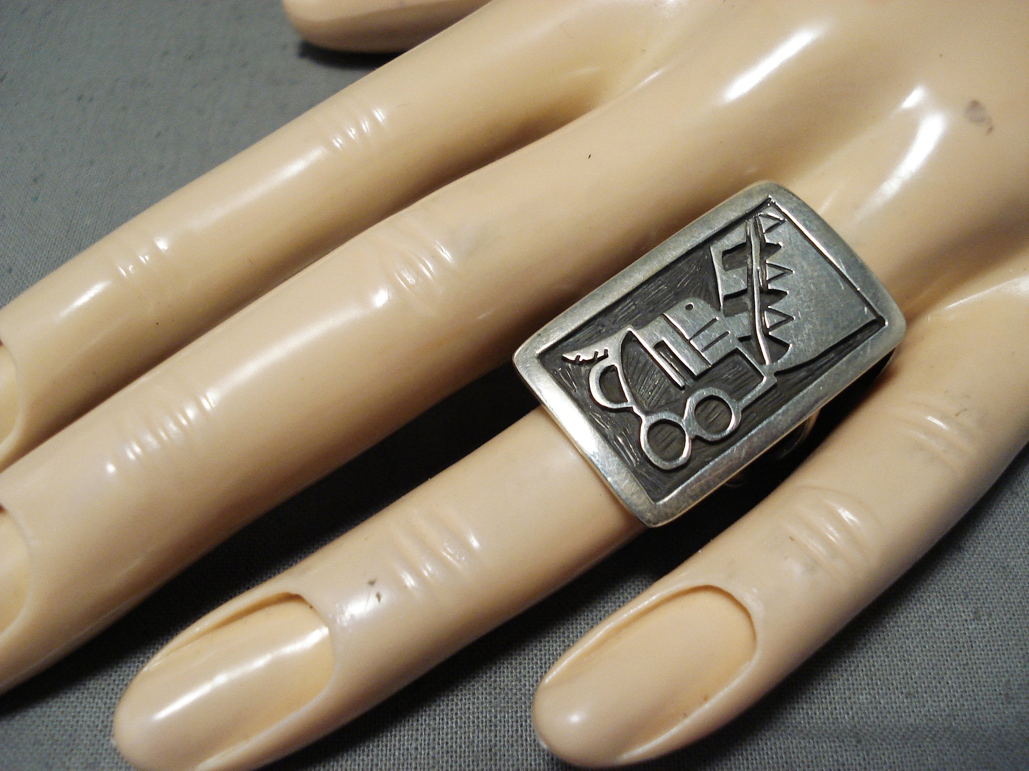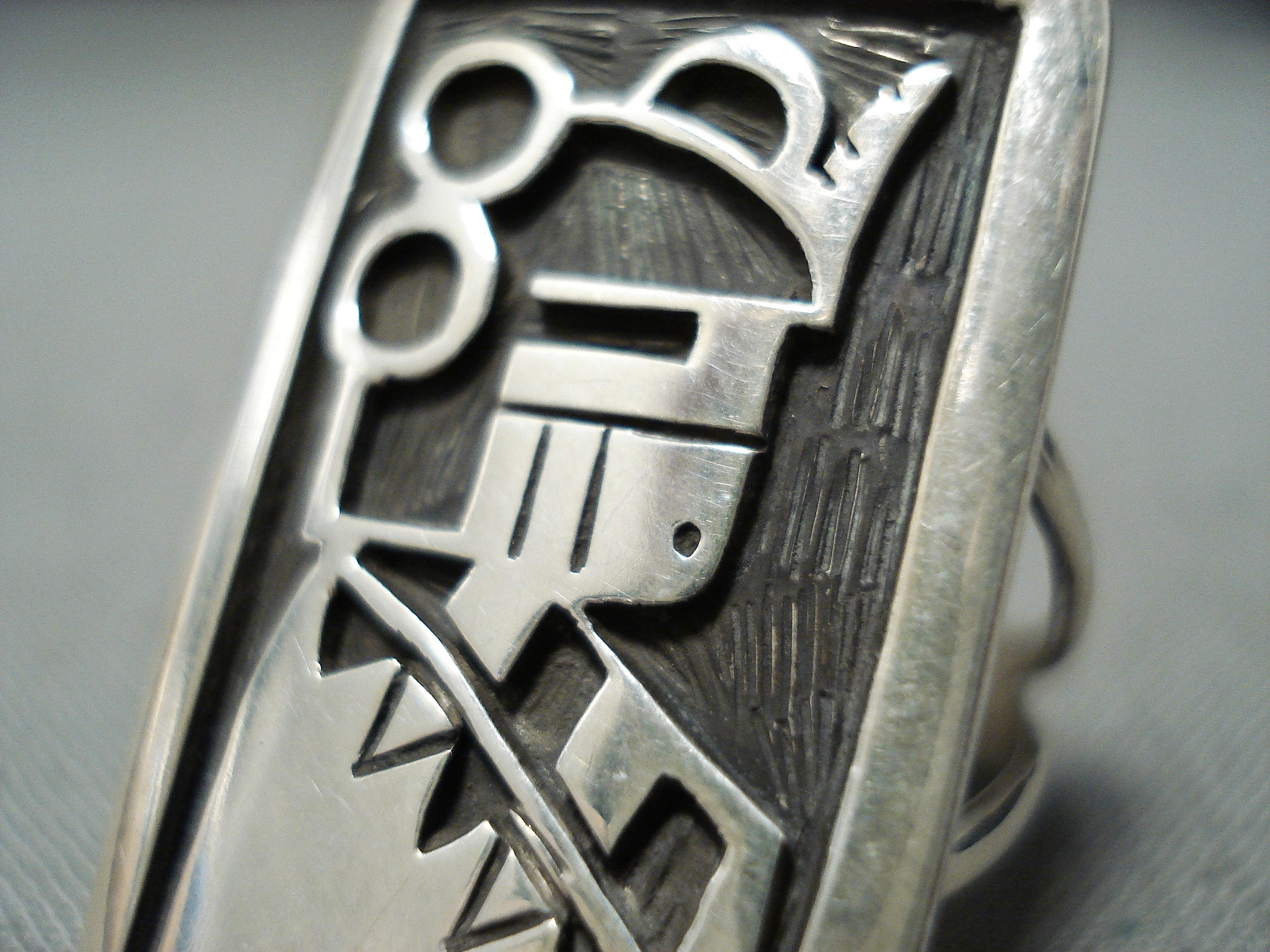 Striking Signed Native American Hopi Sterling Silver Kachina Ring