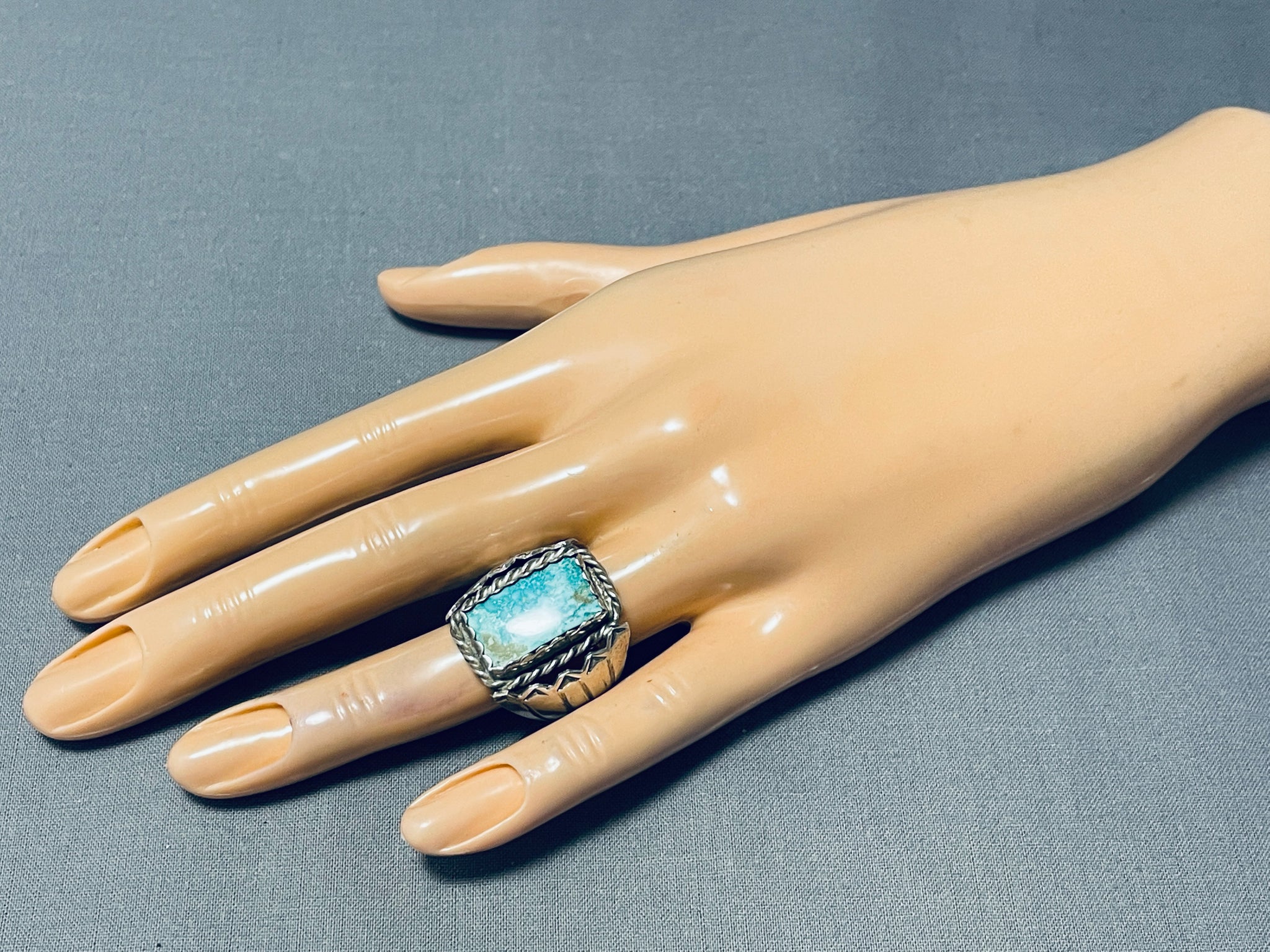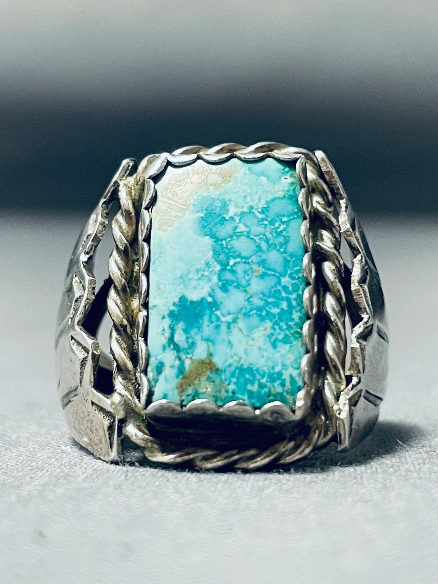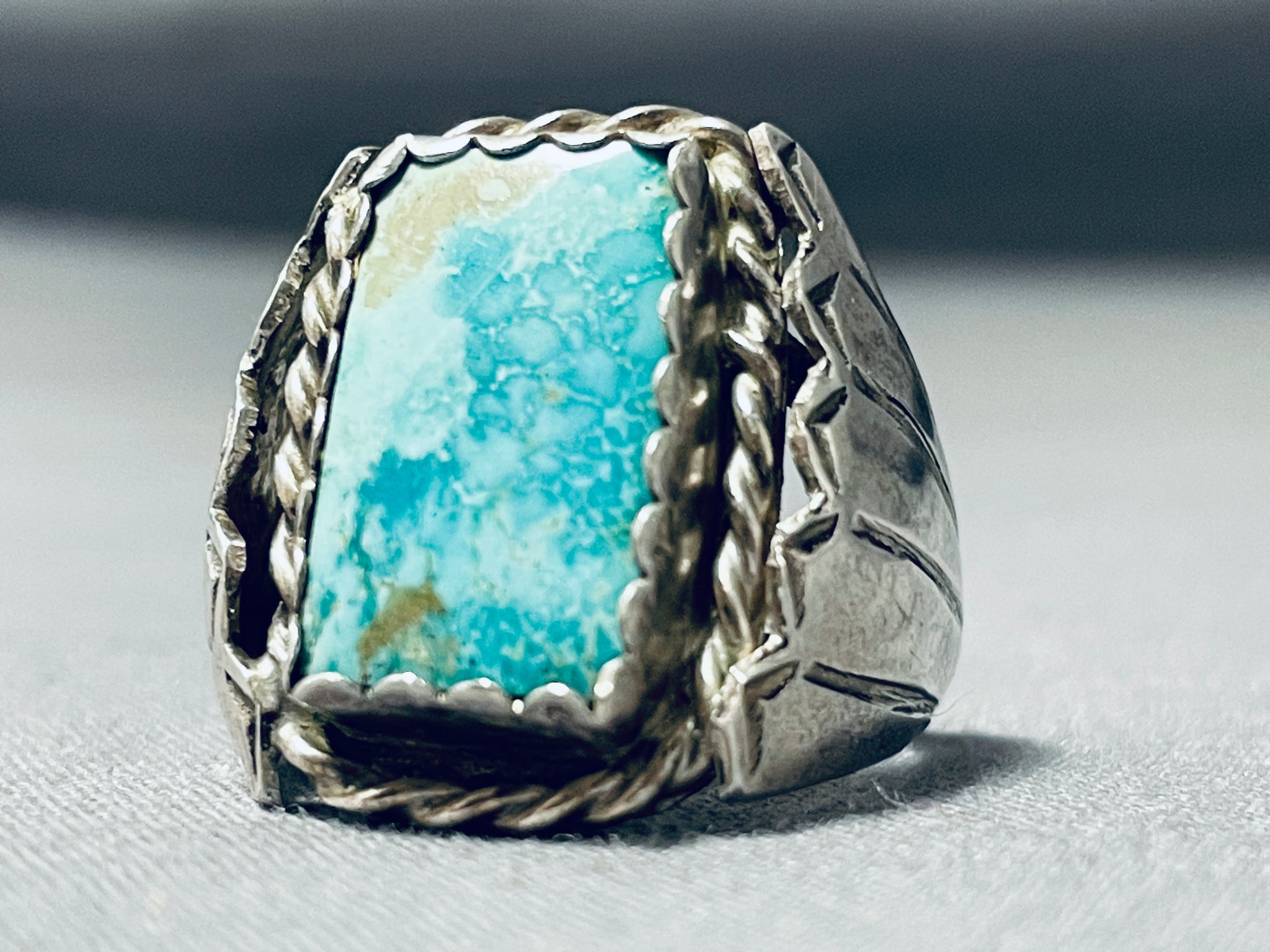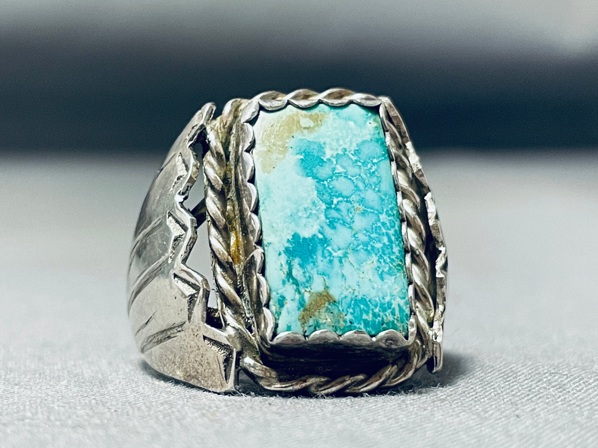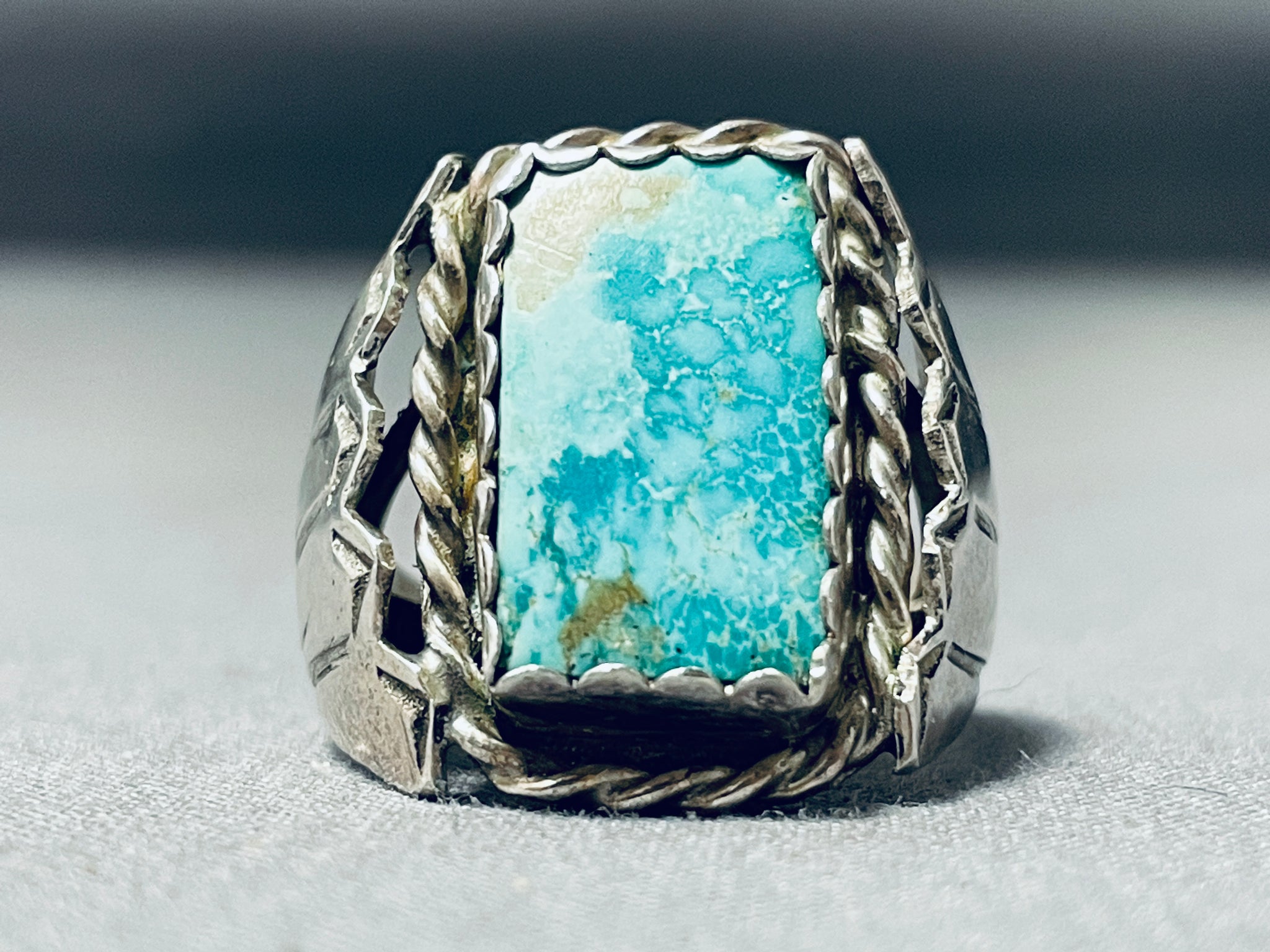 Striking Vintage Native American Navajo Pilot Mountain Turquoise Sterling Silver Ring
