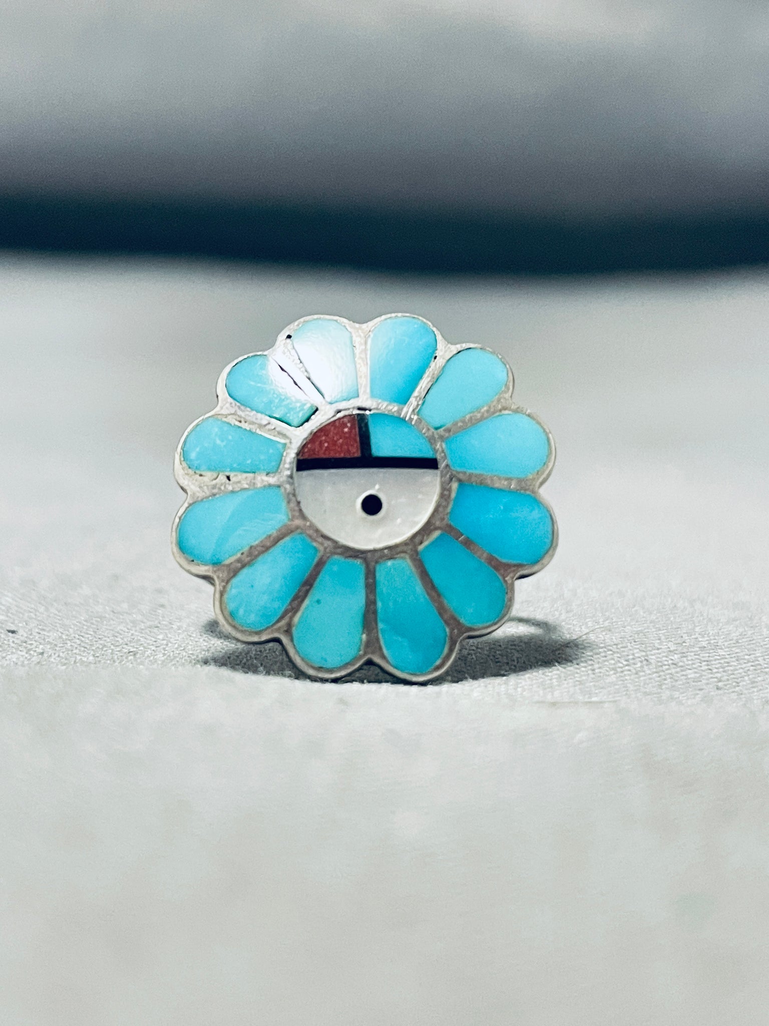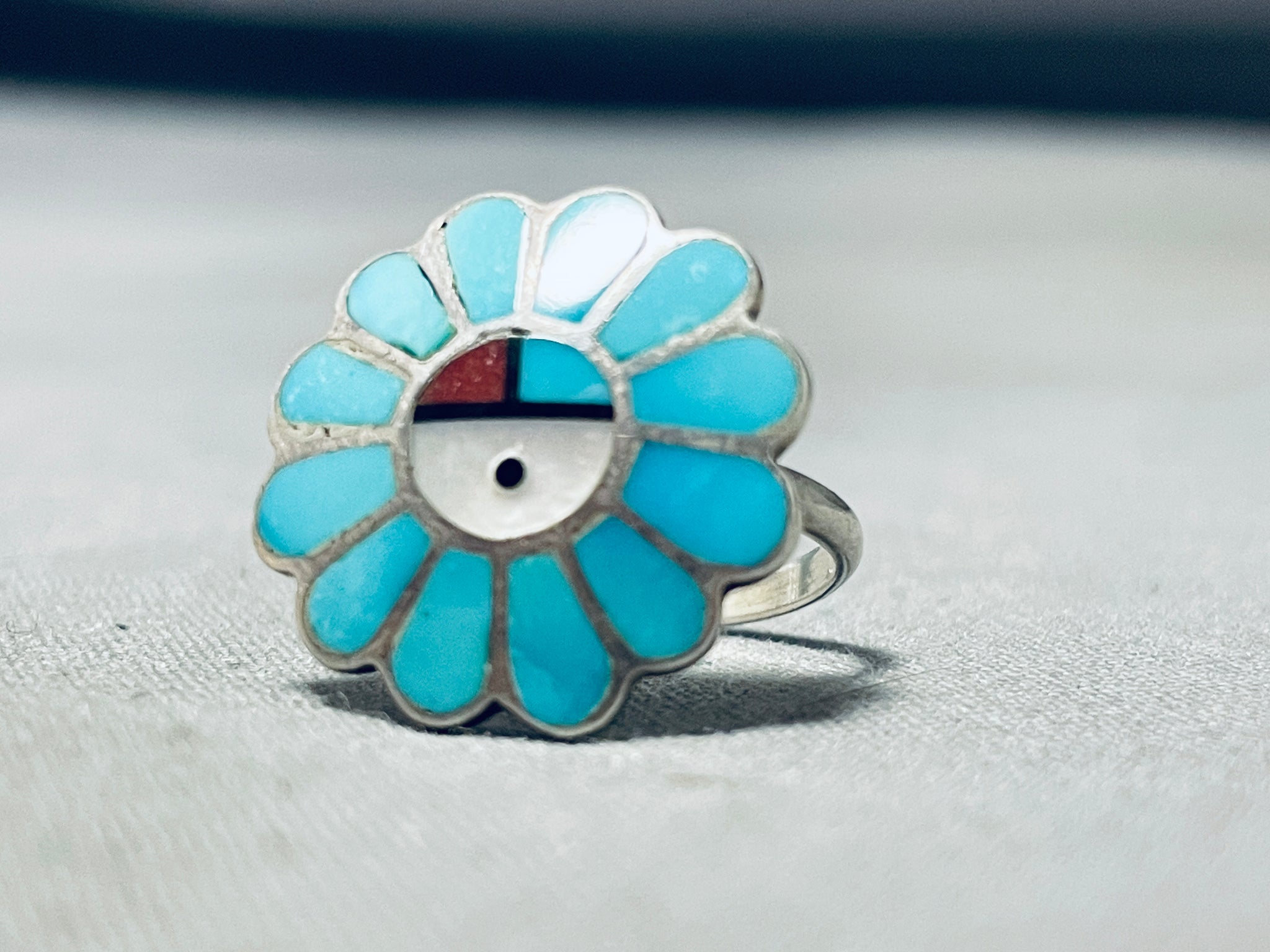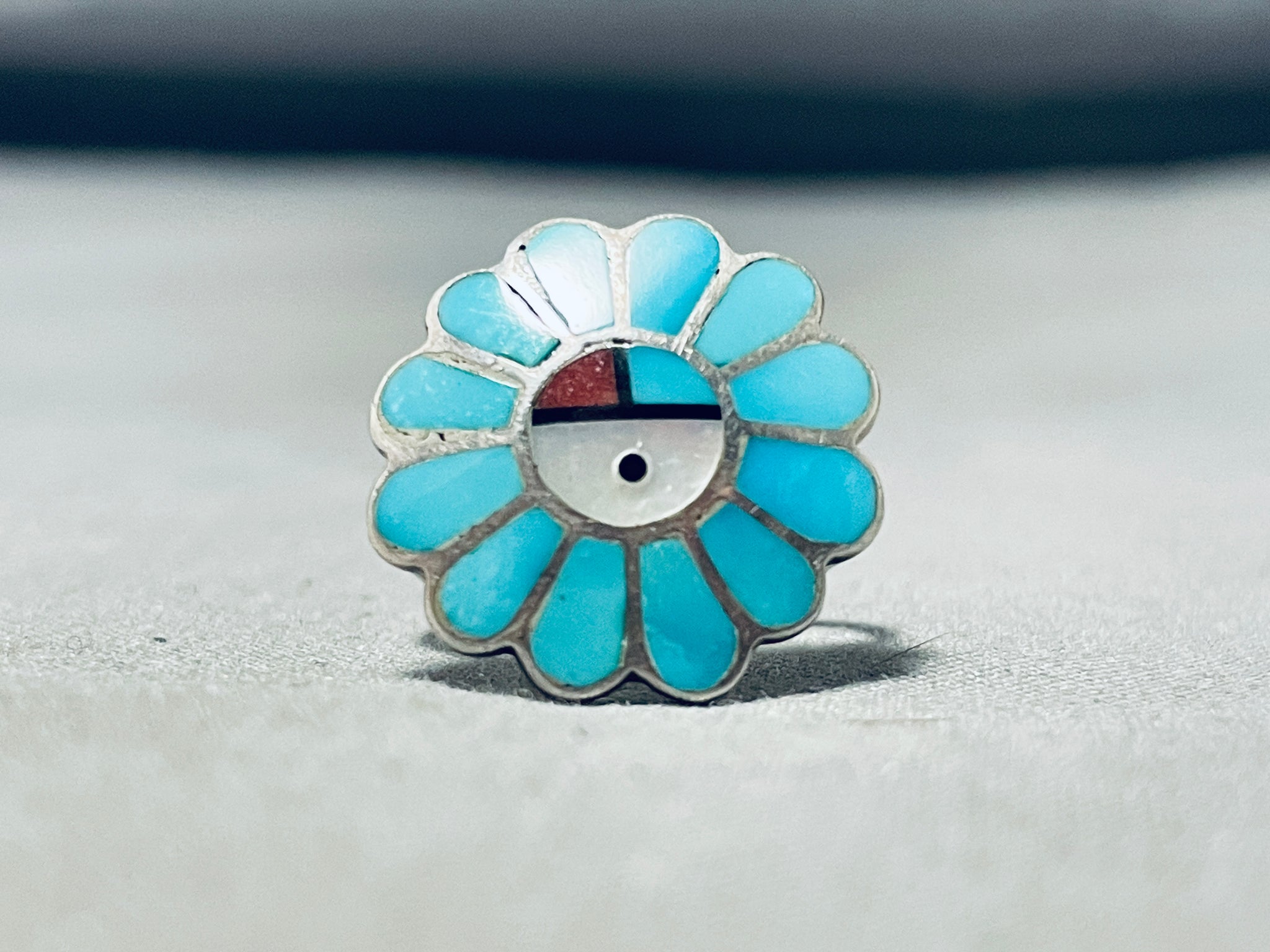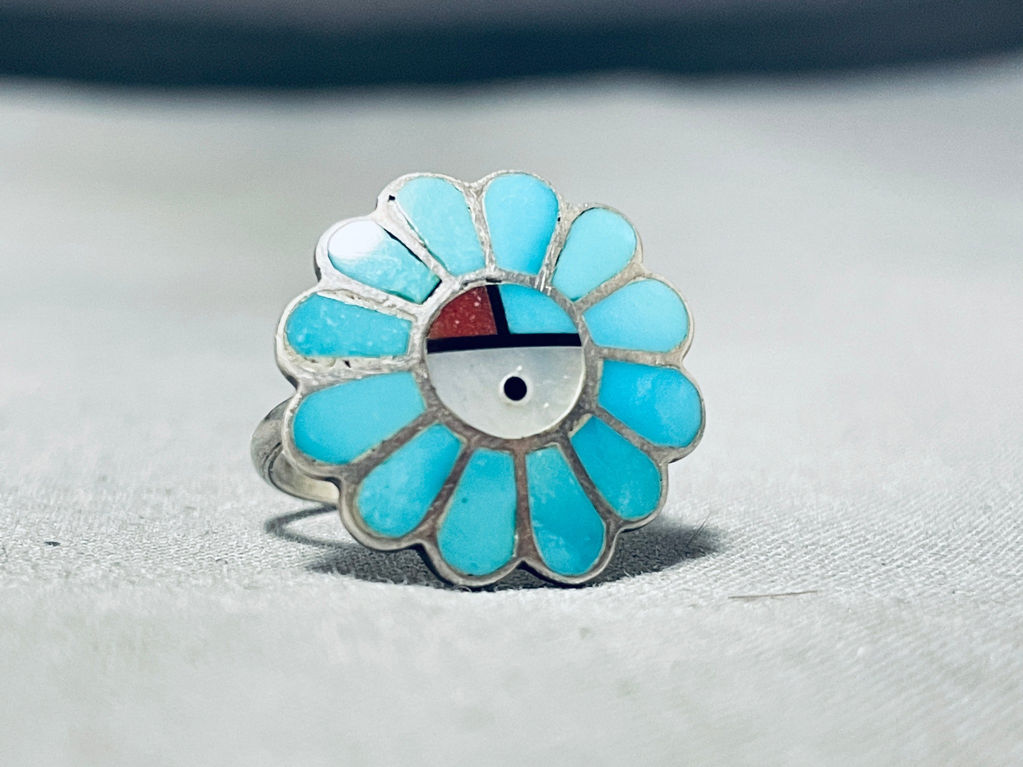 Striking Vintage Native American Zuni Turquoise Sterling Silver Ring