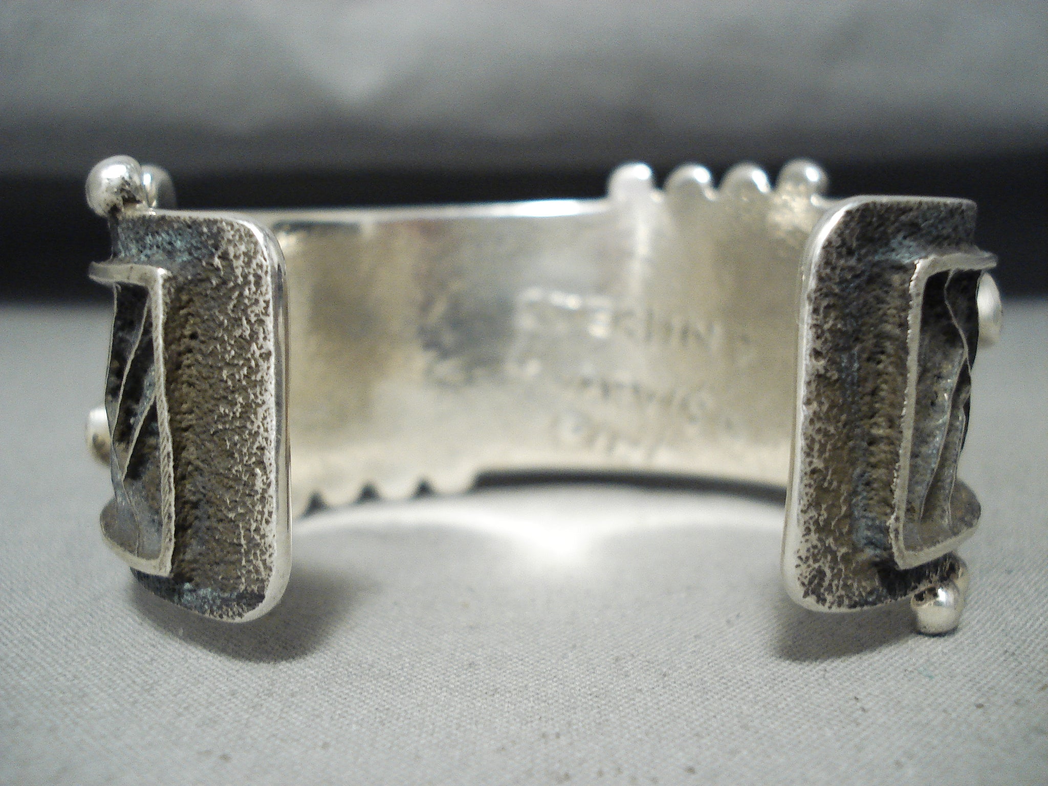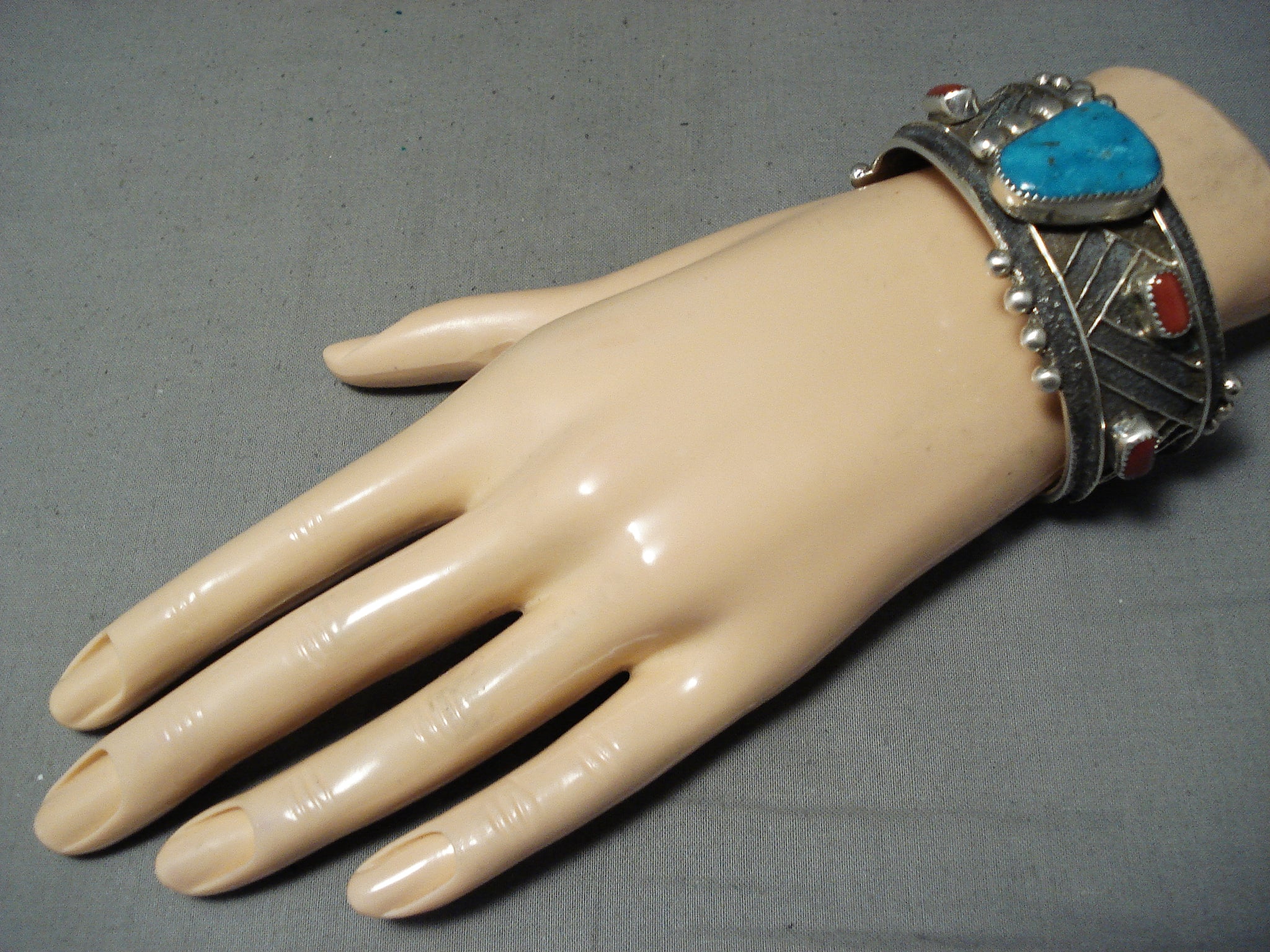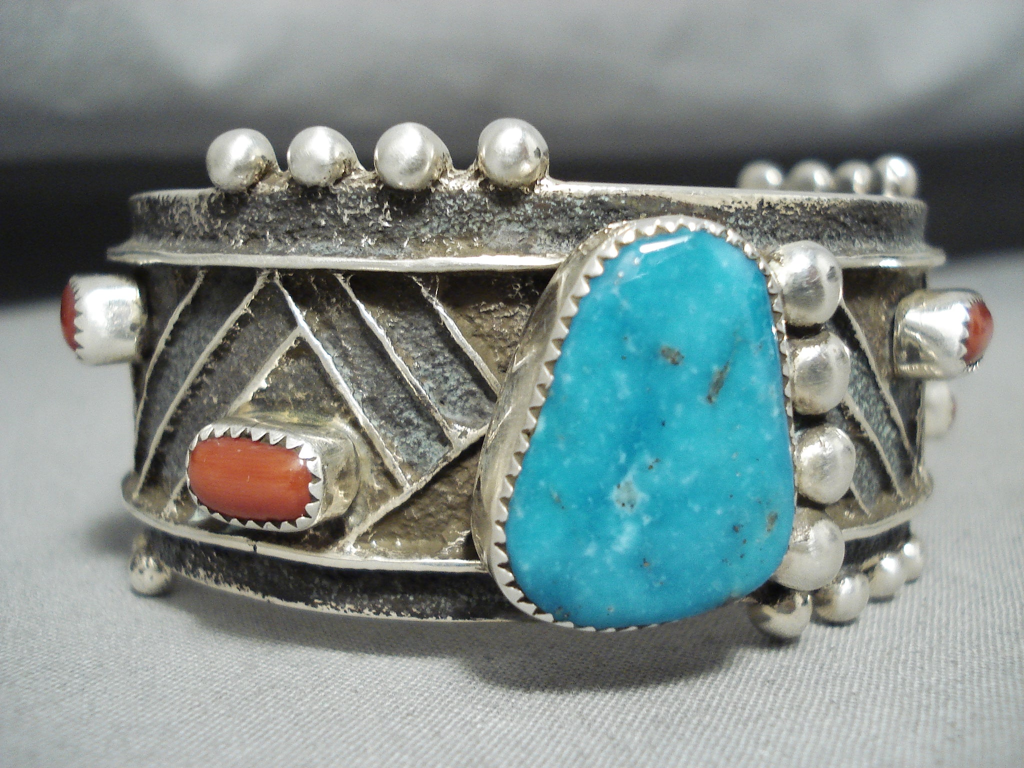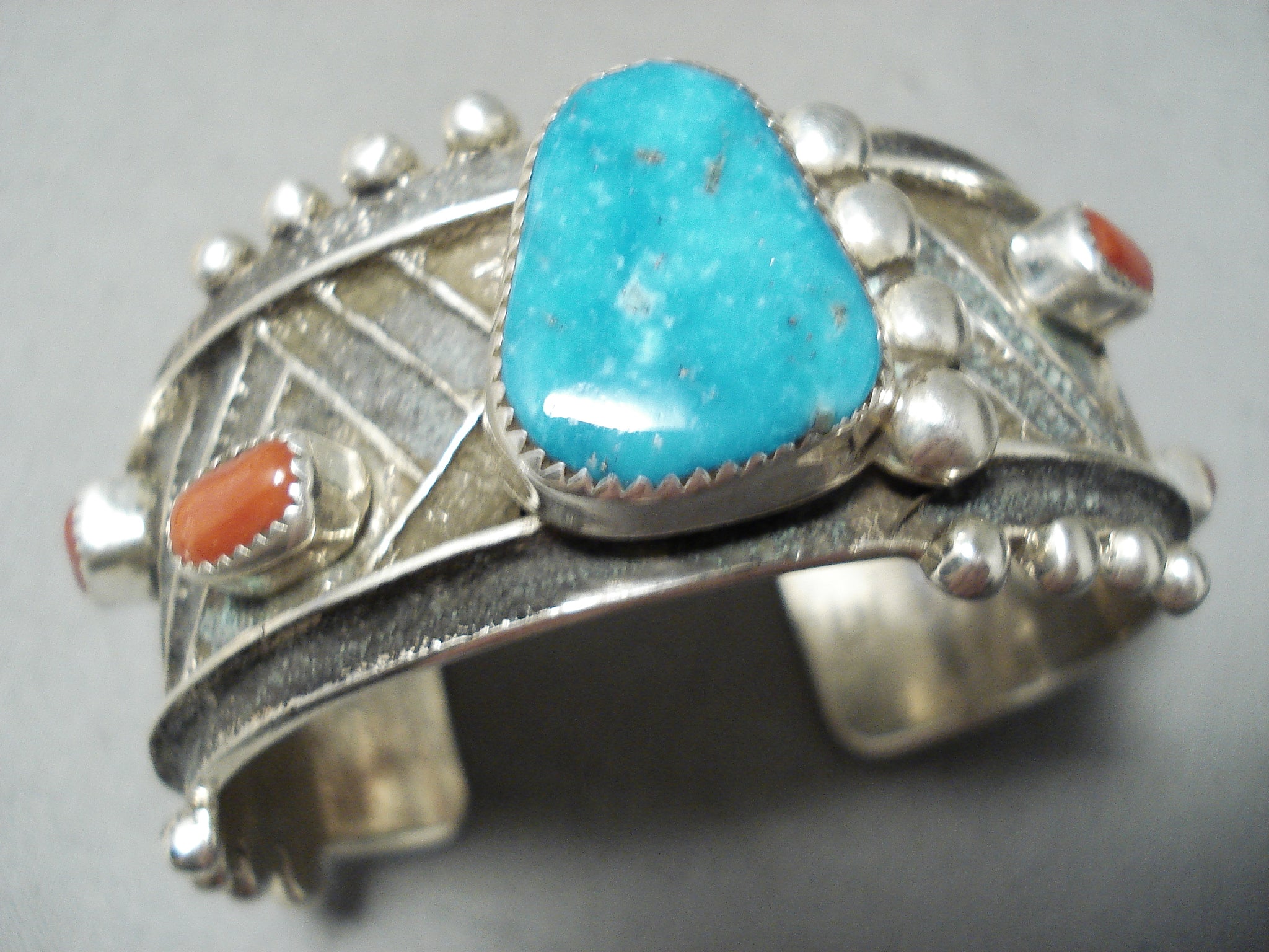 Stunning Arviso Native American Navajo Turquoise Coral Sterling Silver Bracelet