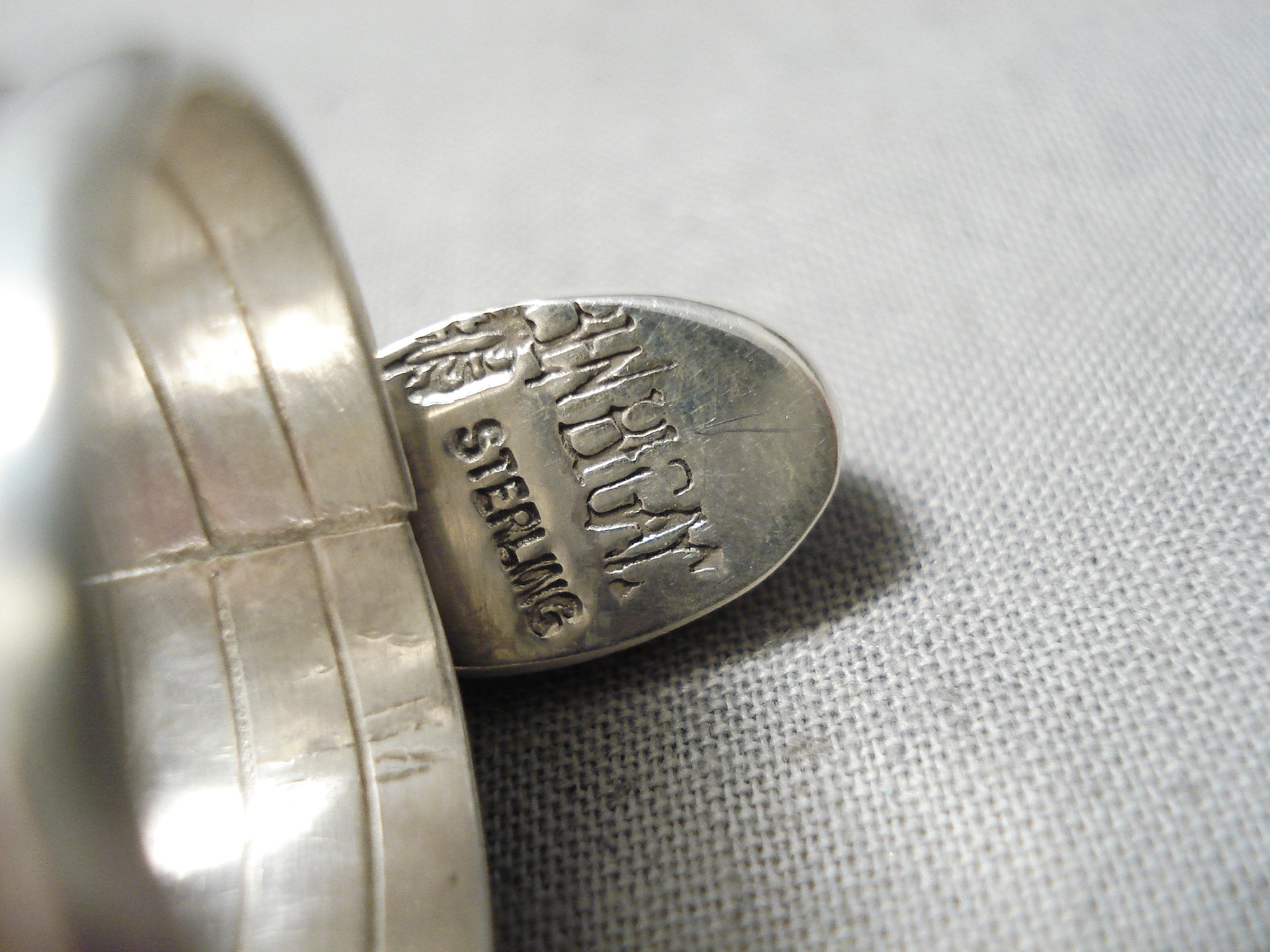 We are proud to offer this striking modern Navajo silver ring having 2 lapis ovals, handcarved silver star flanks, silver beads and a handcarved solid wide silver band! Absolutely Incredible! The largest stone measures around 5/8" x 3/8". The ring face measures around 1-1/4" x 3/8". Signed by Navajo artist, Ben Begaye. The ring size is around 7. Sterling silver, marked. Sturdy 12 grams.