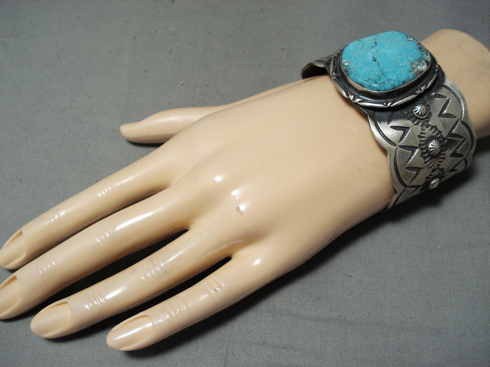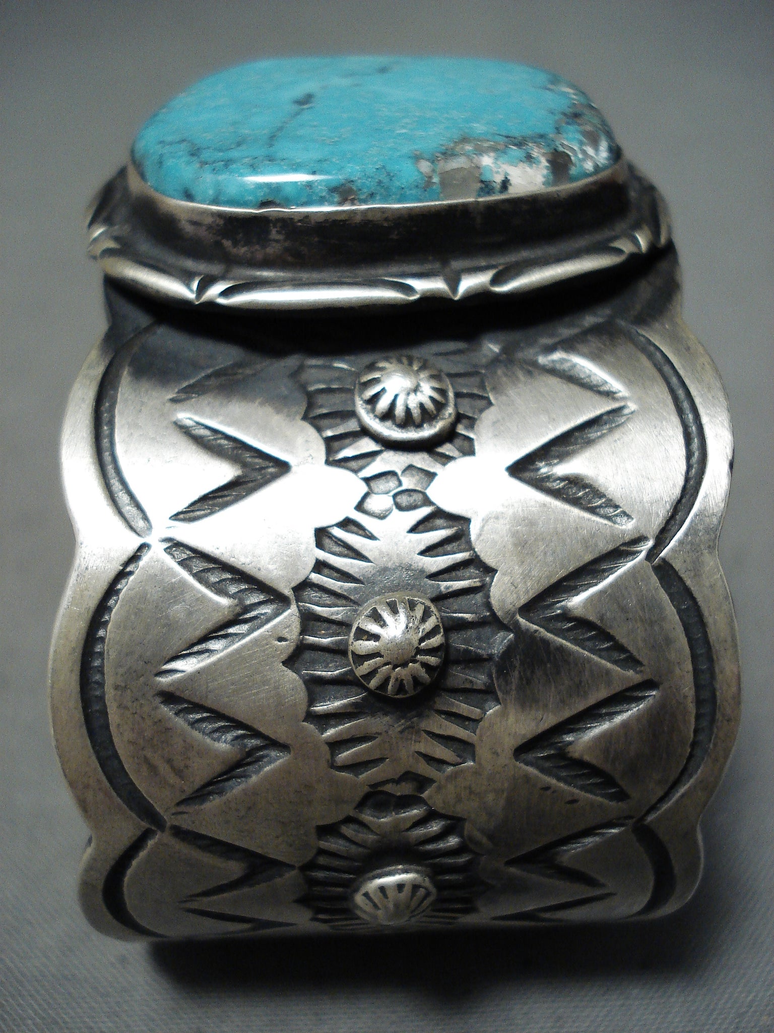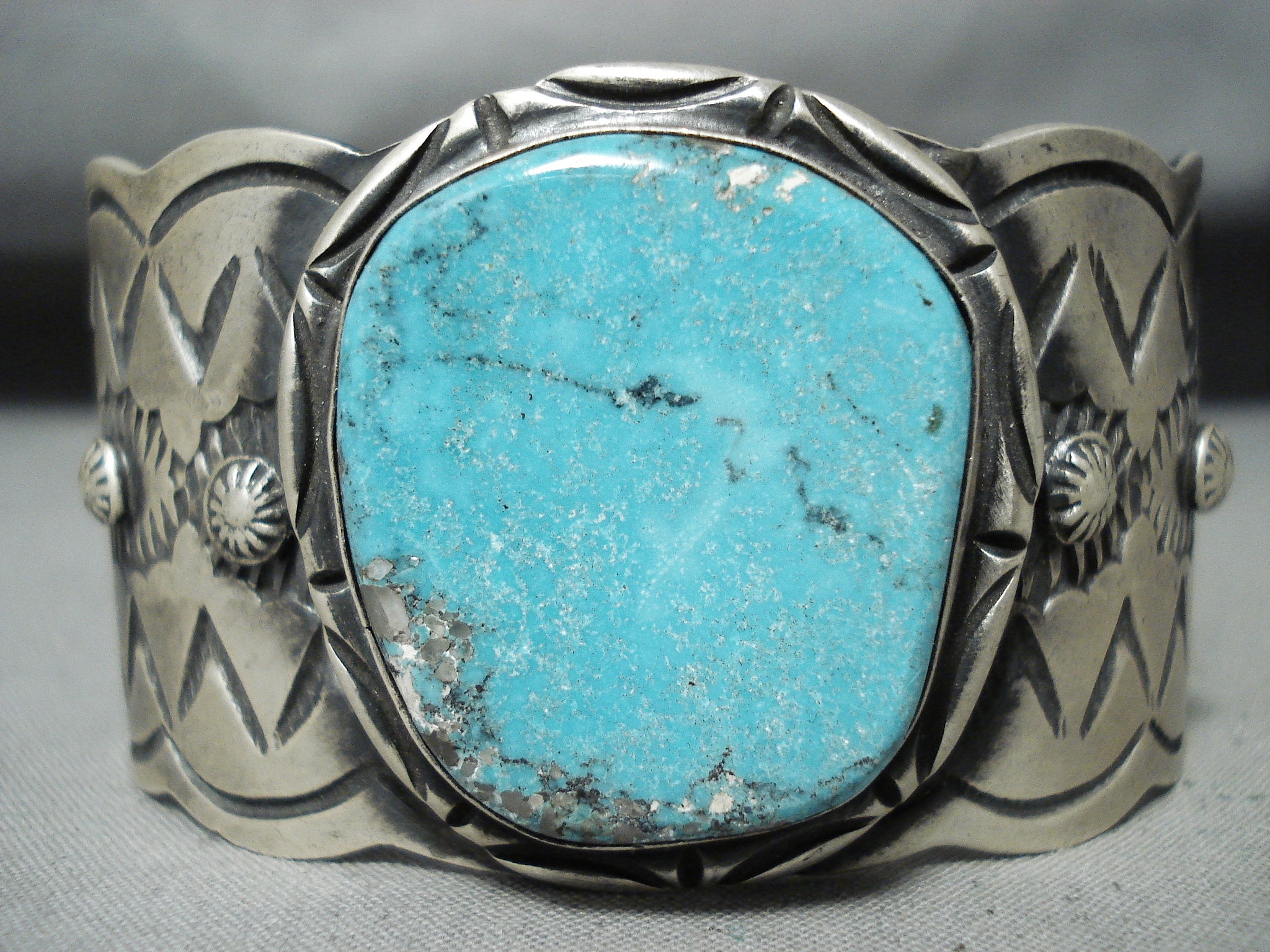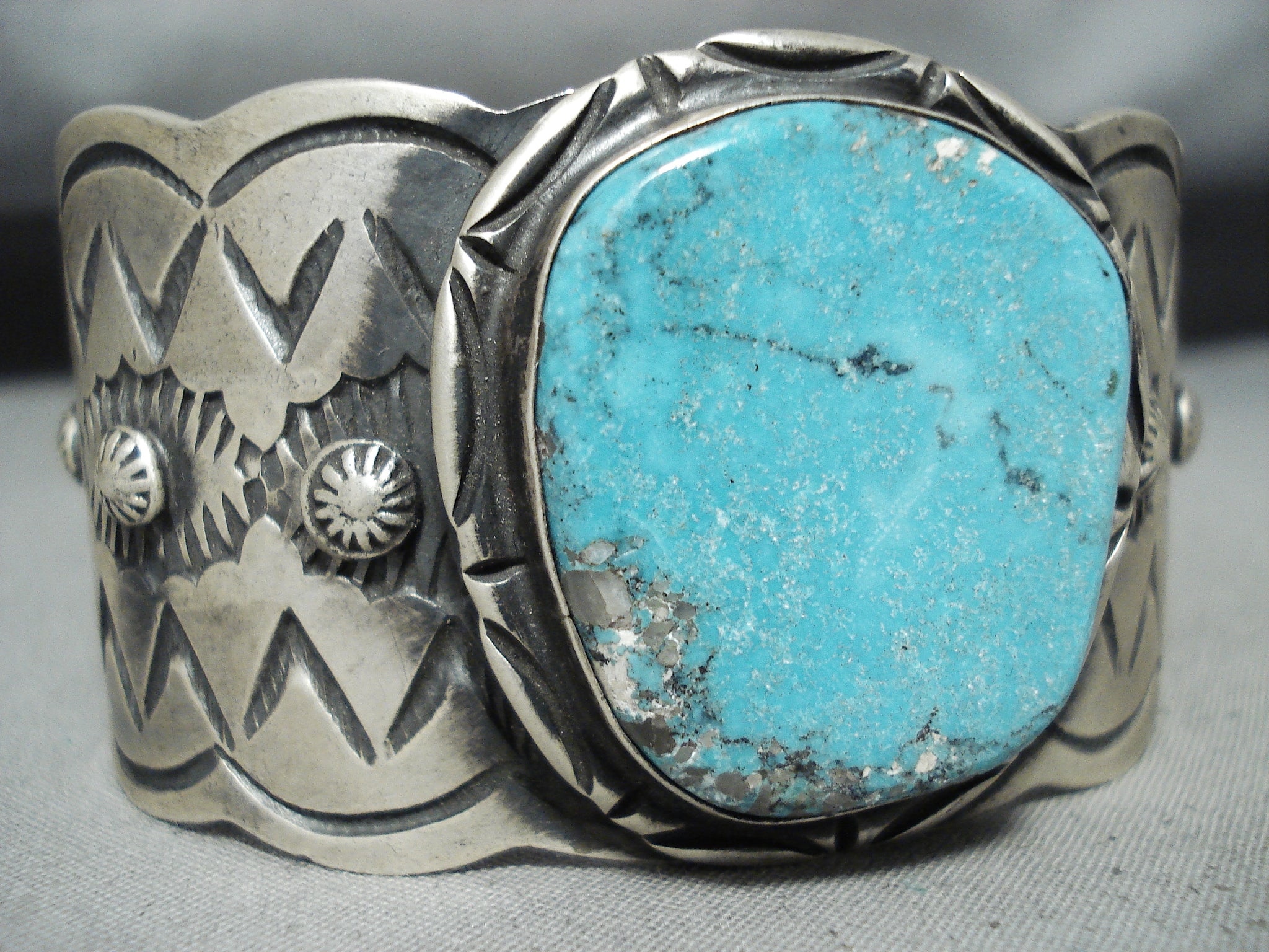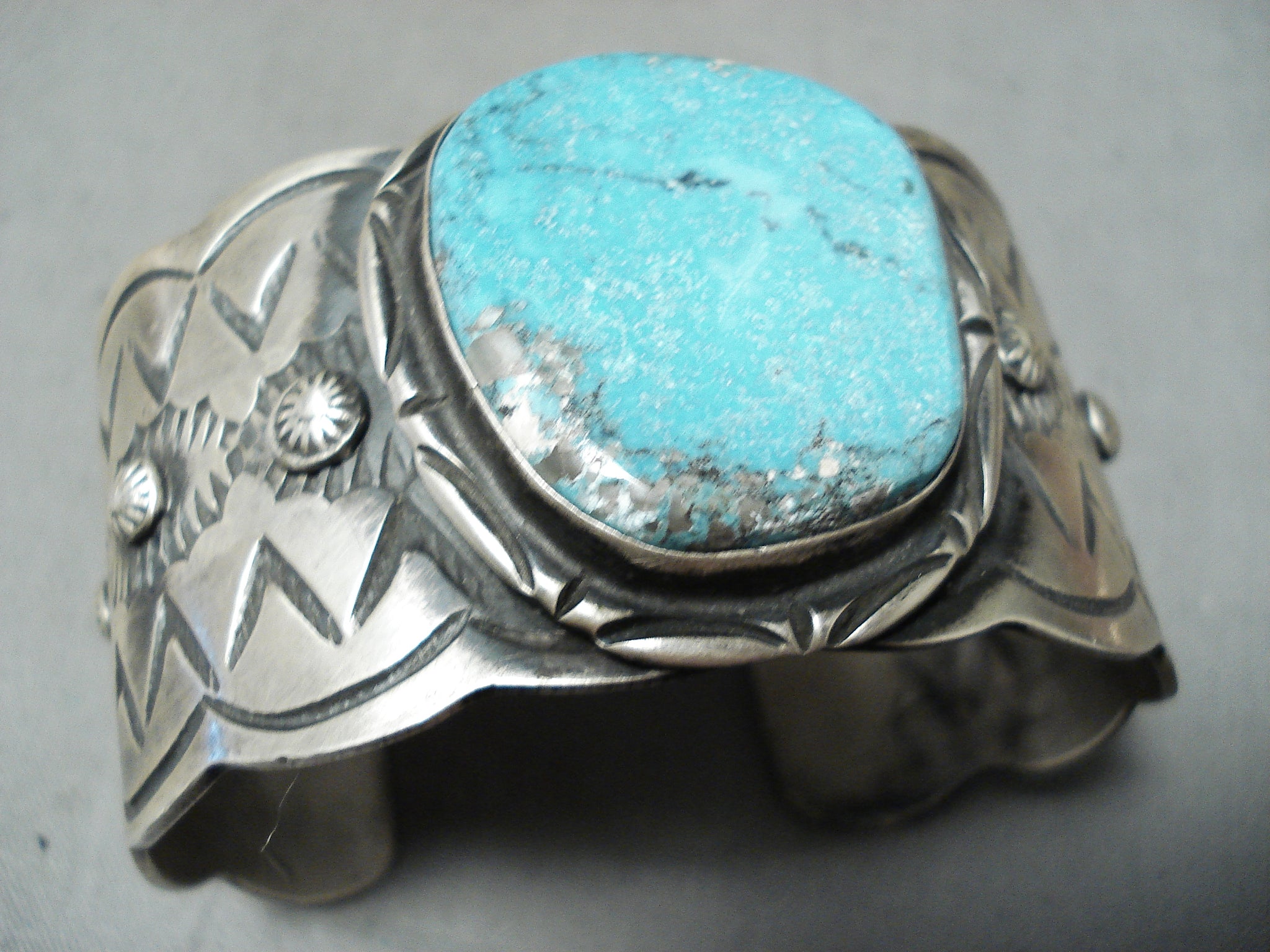Stunning Native American Navajo Pilot Mountain Turquoise Sterling Silver Bracelet