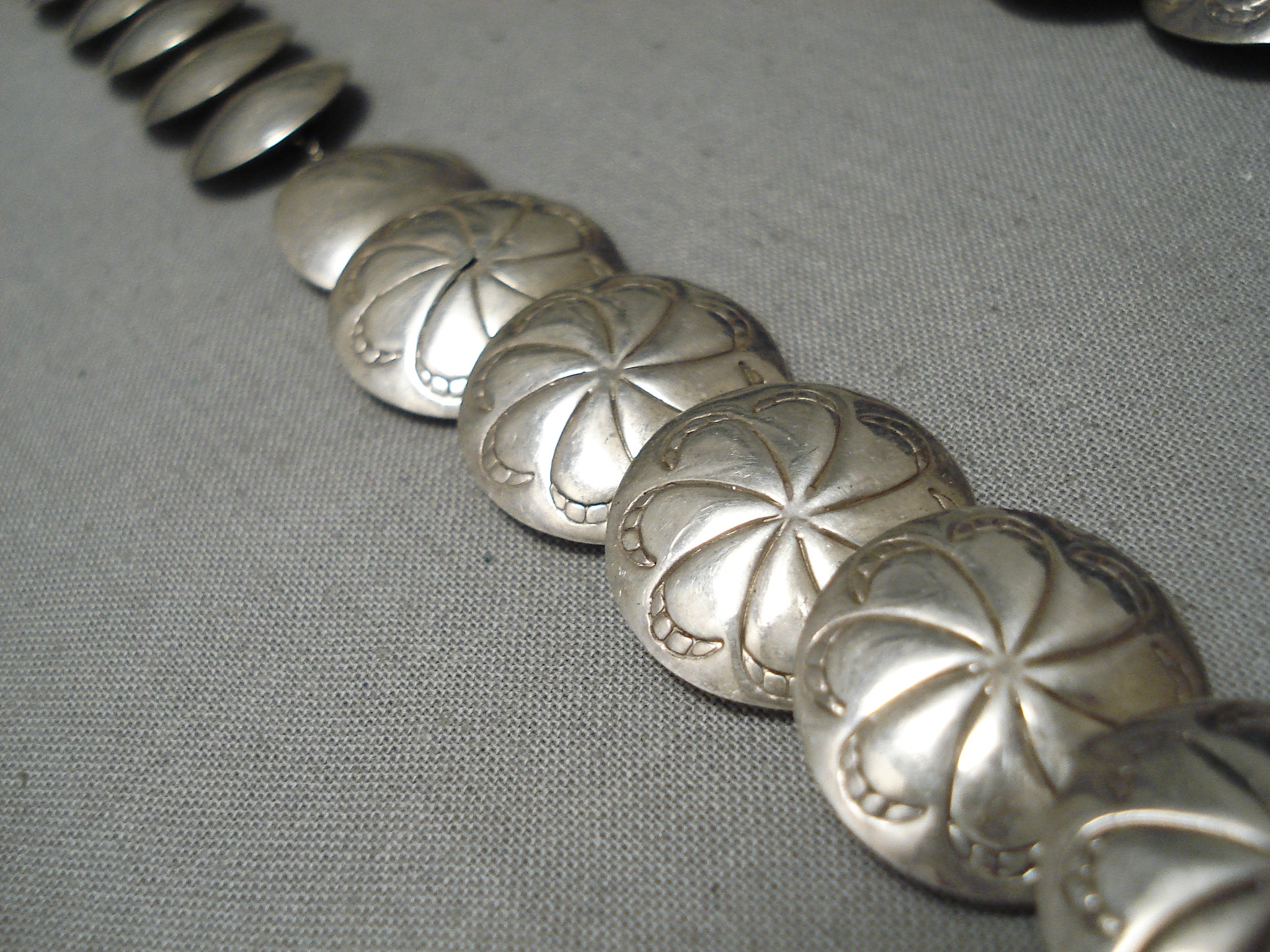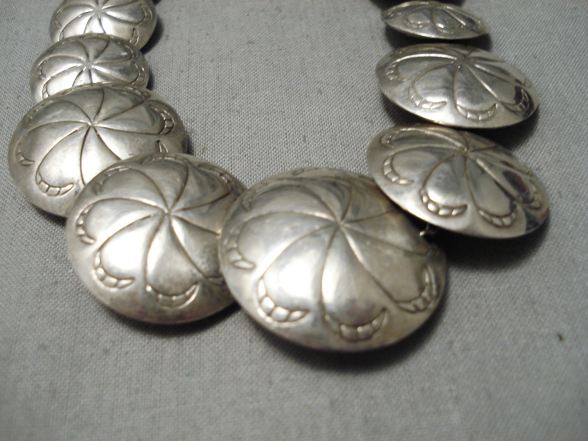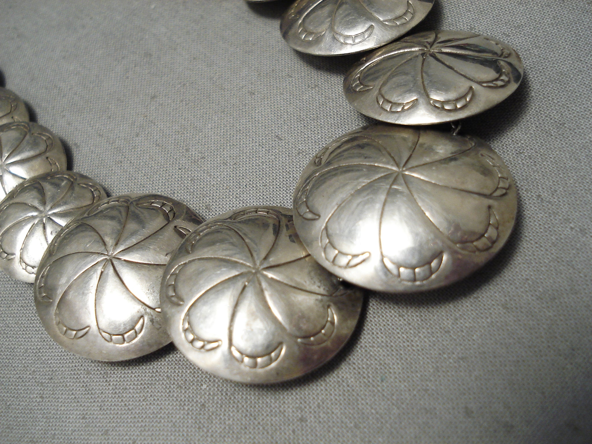 Stunning Vintage Native American Navajo Hand Tooled Sterling Silver Wheel Necklace Old
