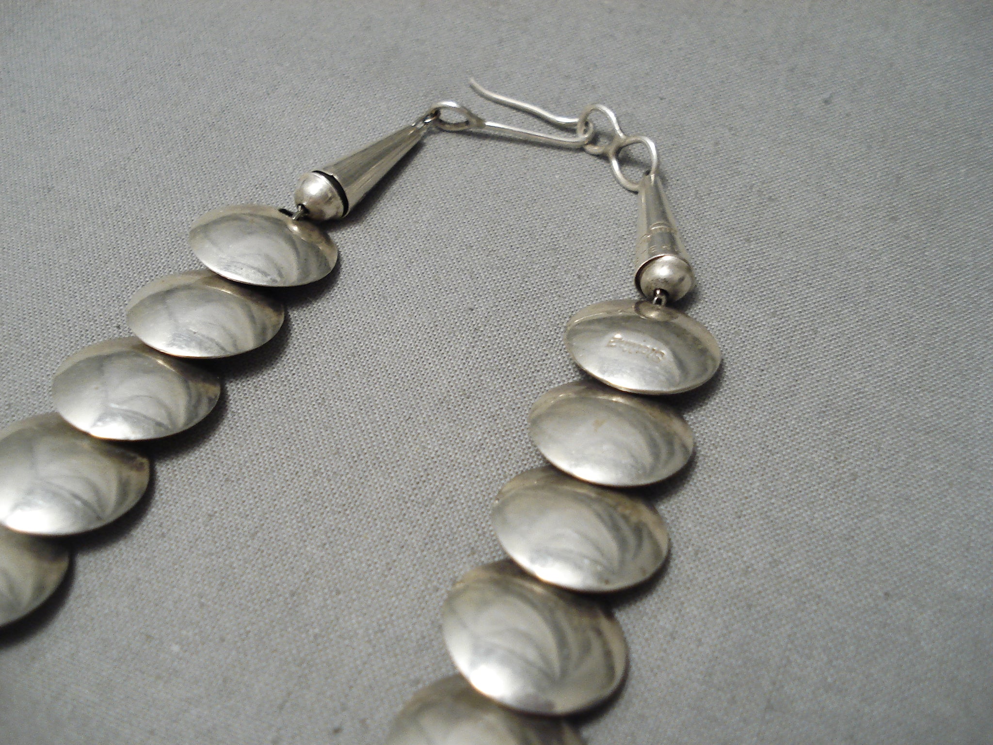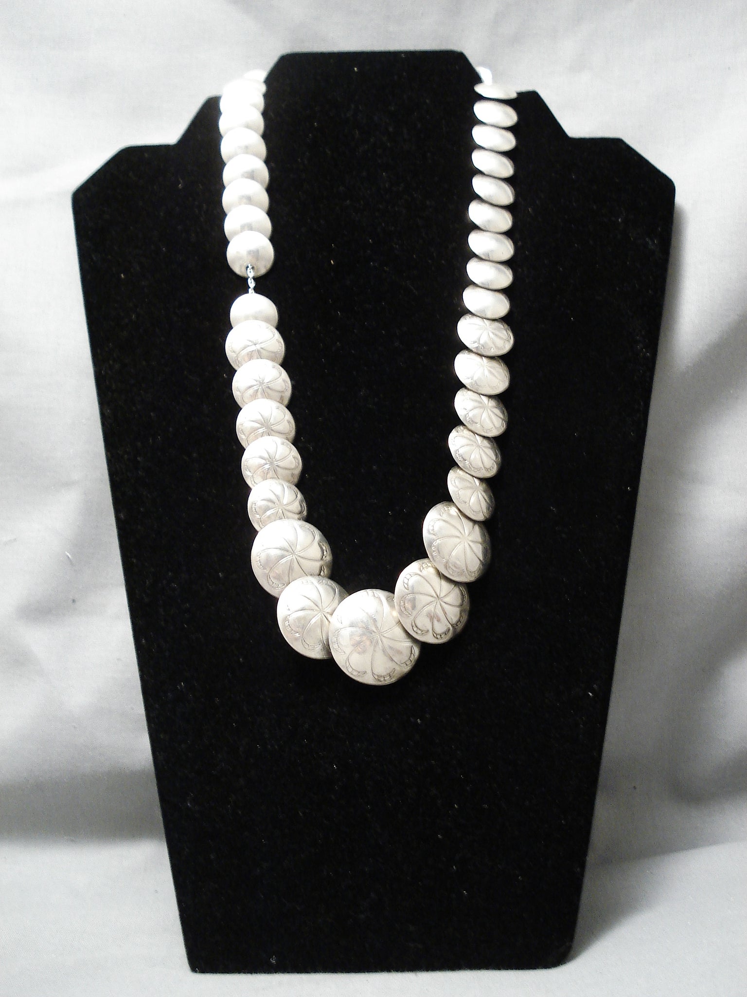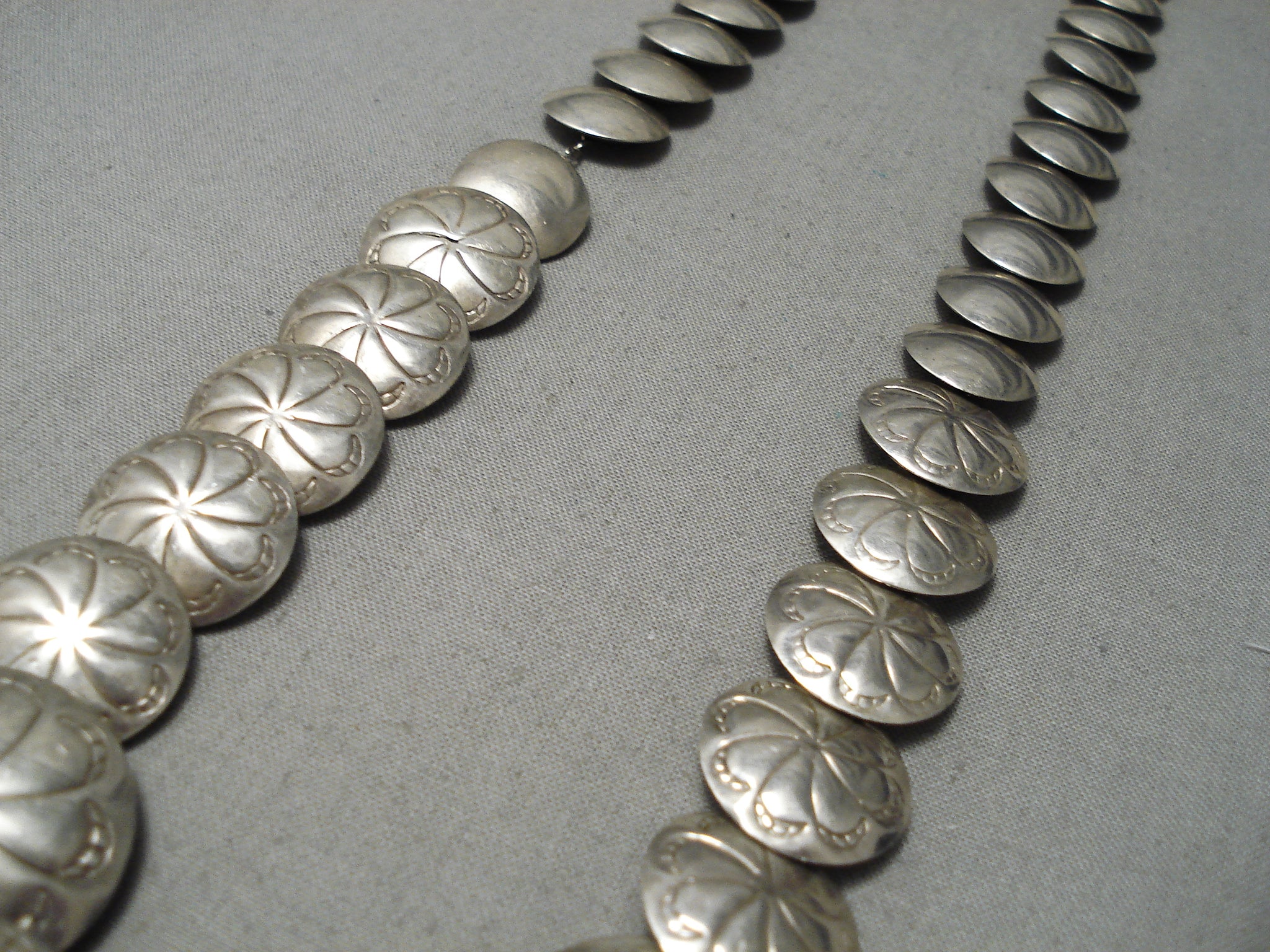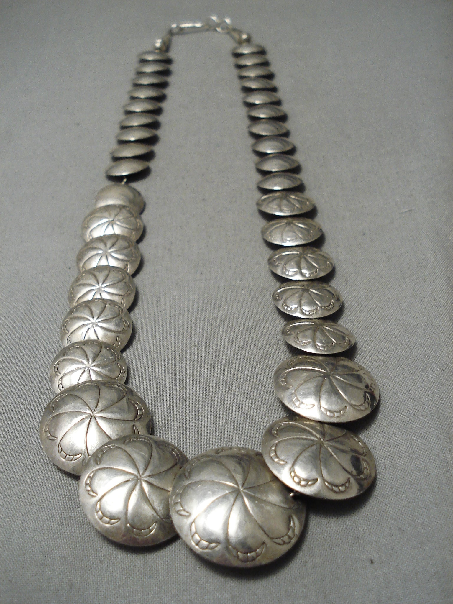 Stunning Vintage Native American Navajo Hand Tooled Sterling Silver Wheel Necklace Old