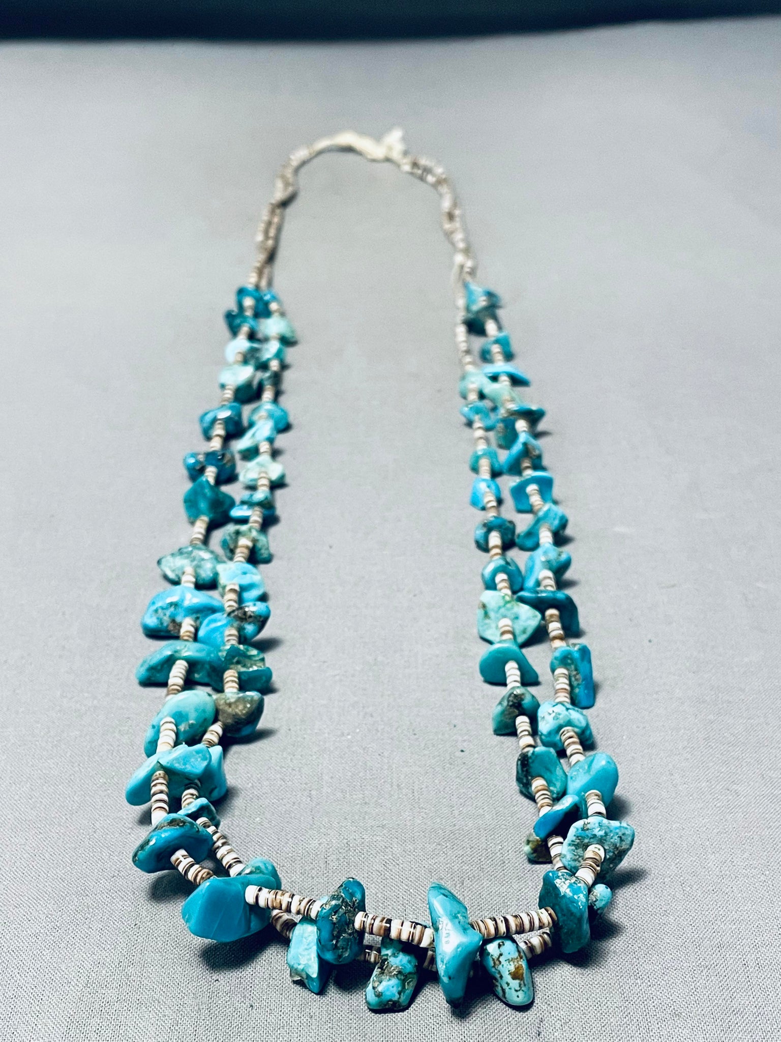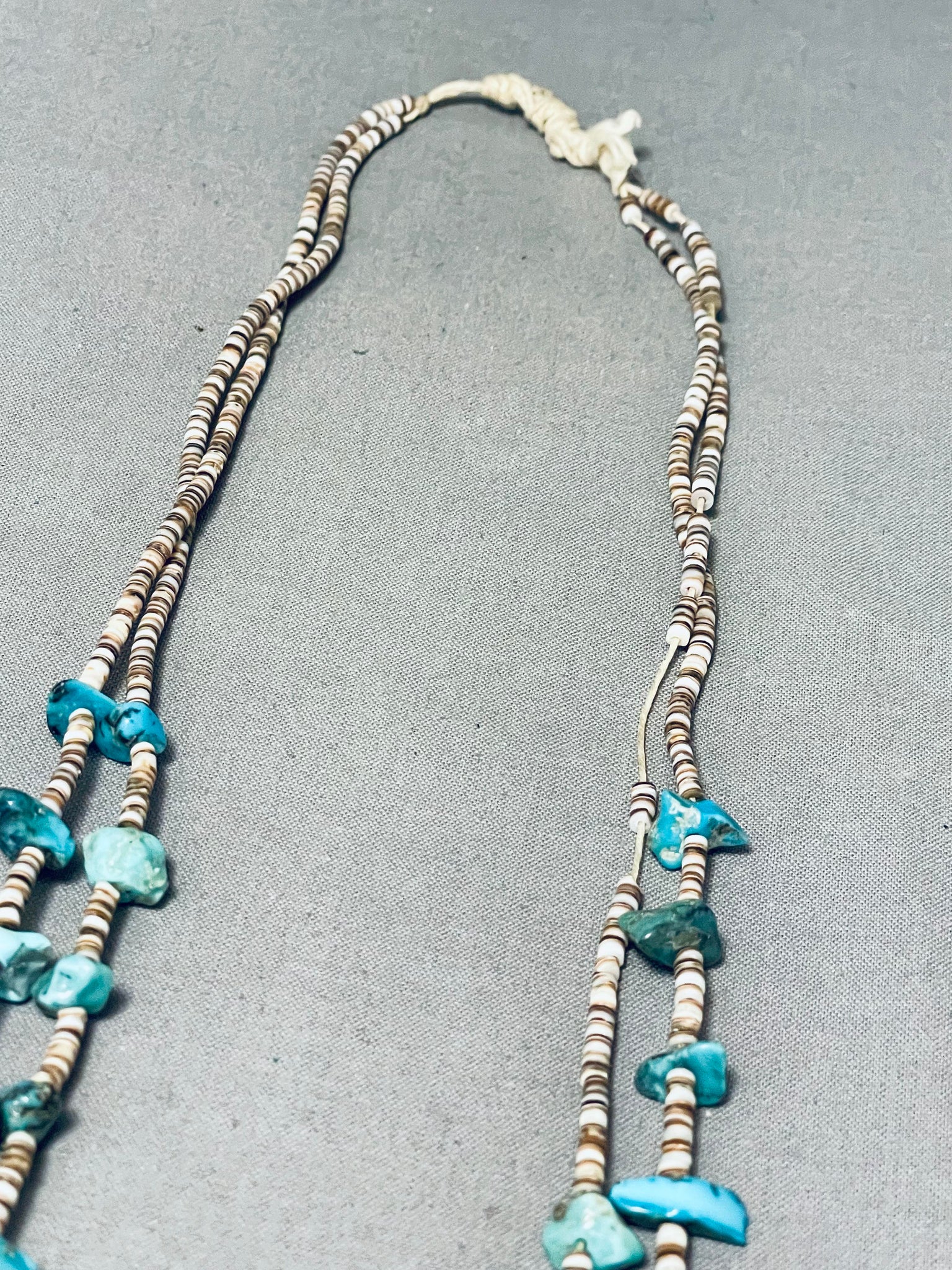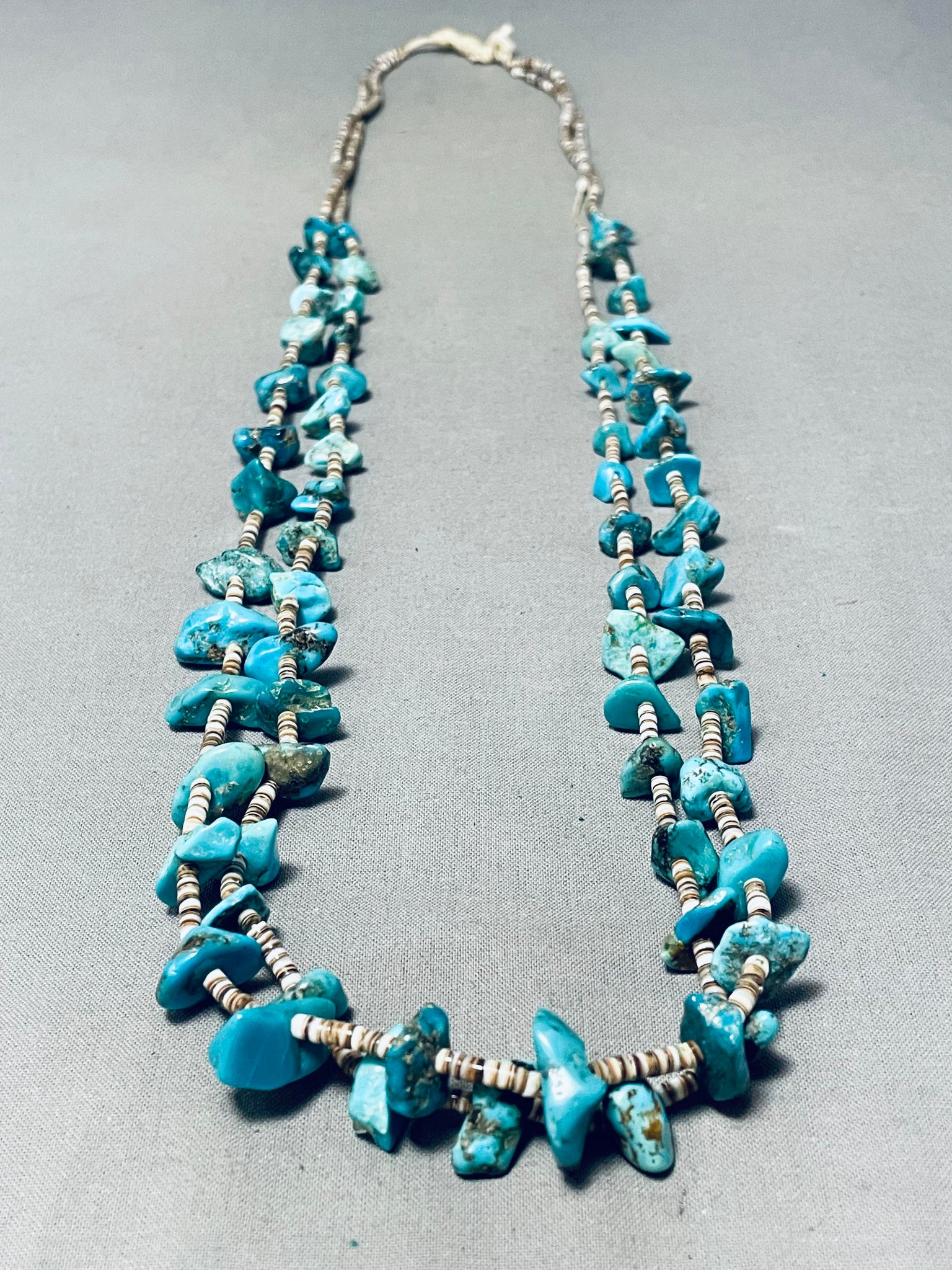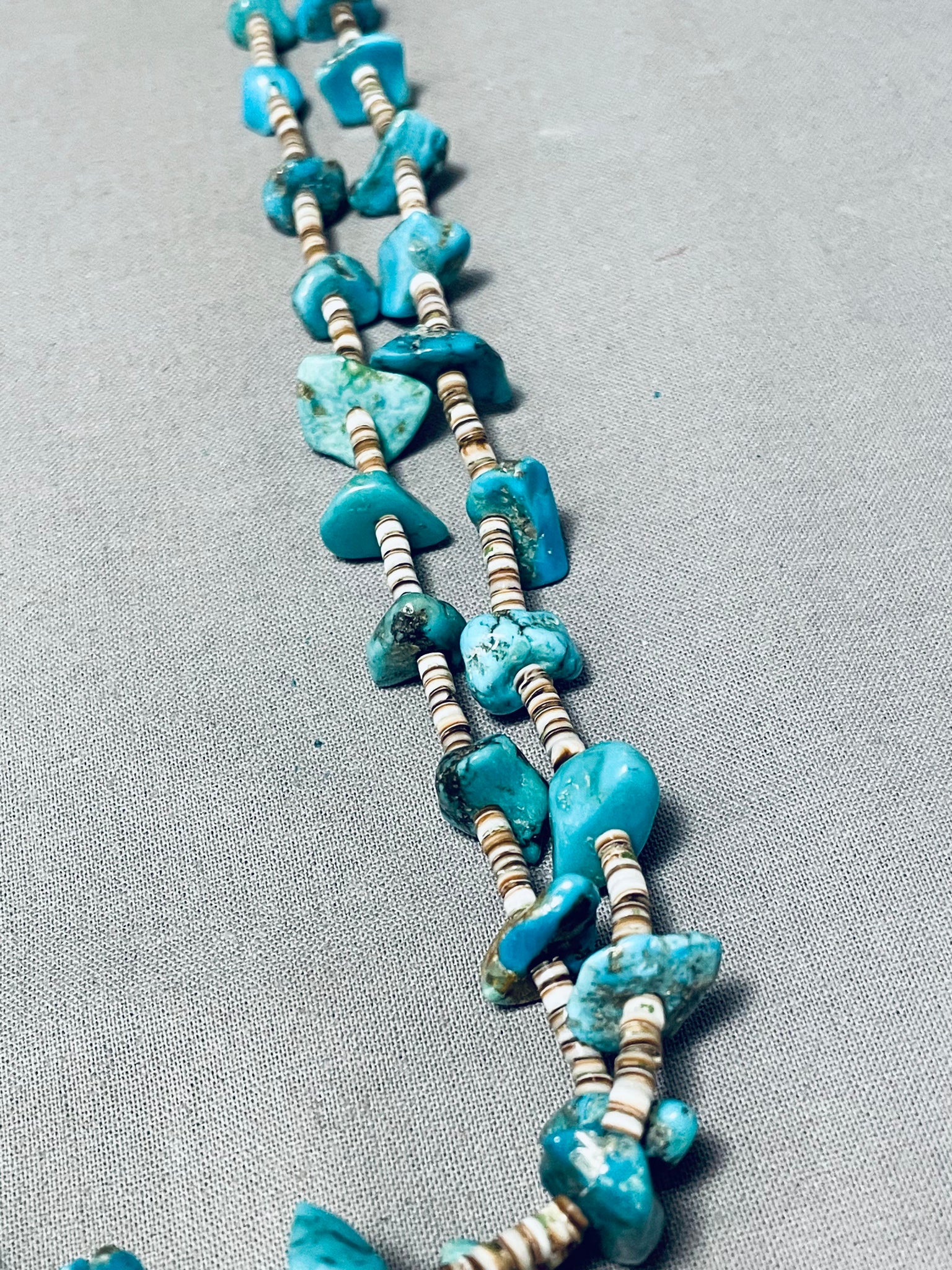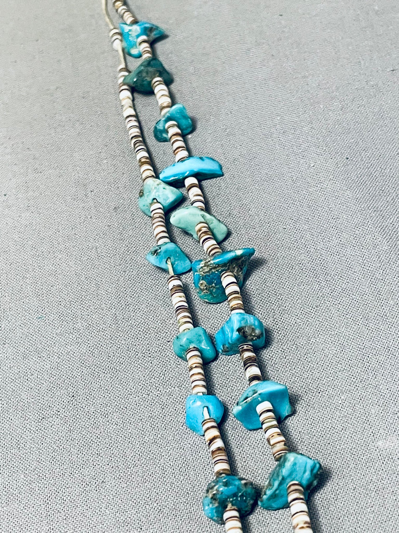Stunning Vintage Native American Navajo Kingman Turquoise & Heishi Necklace