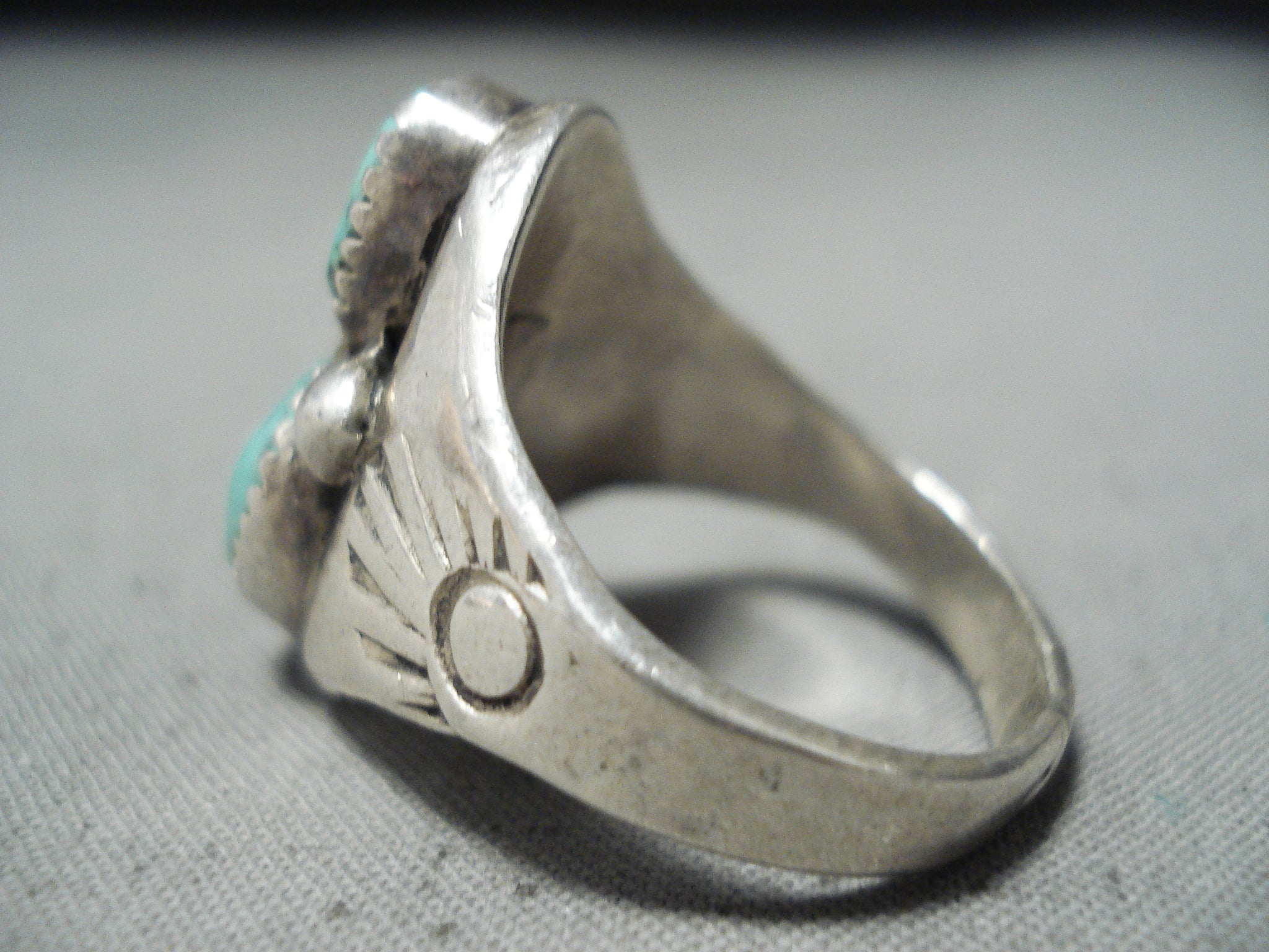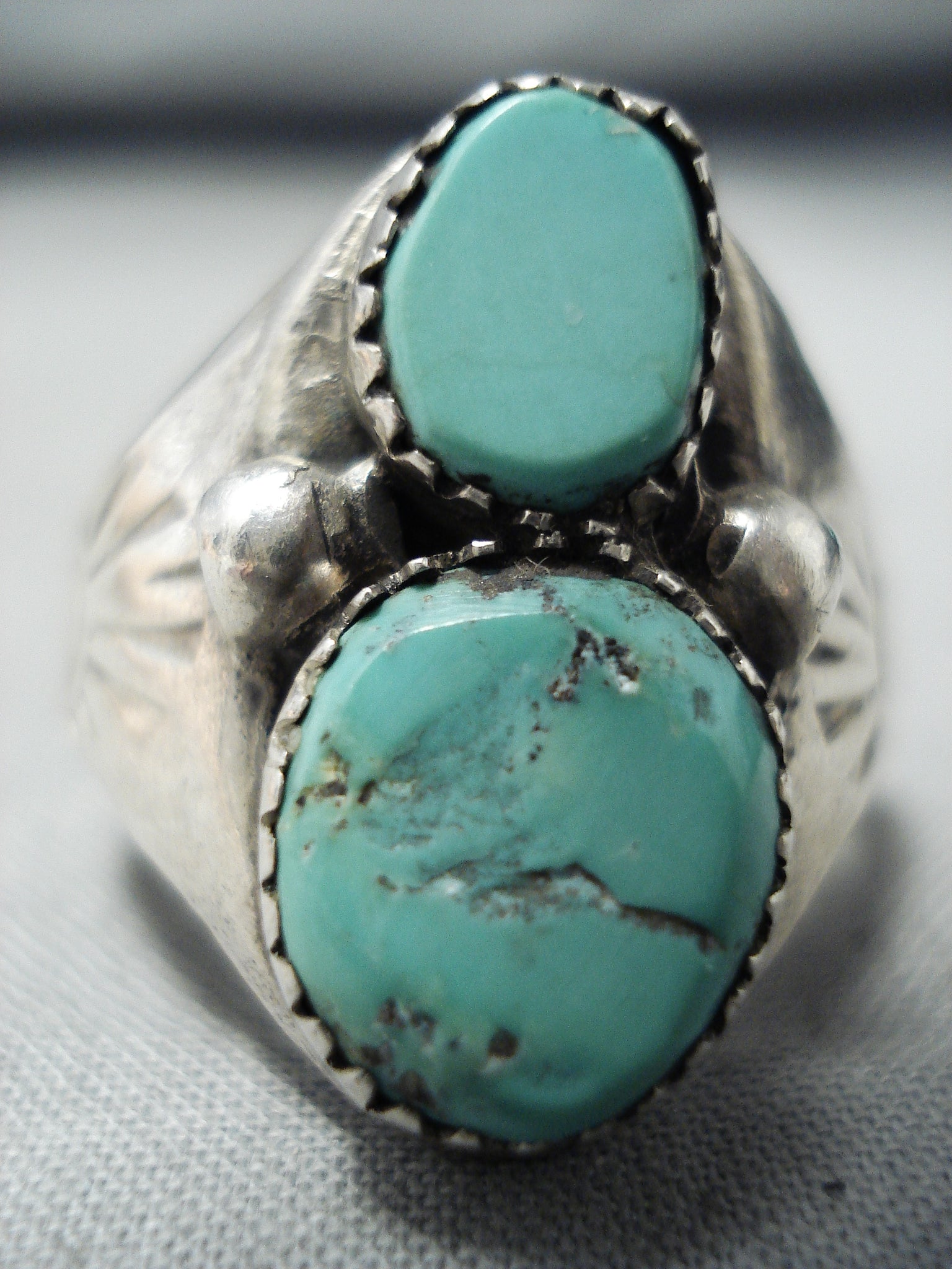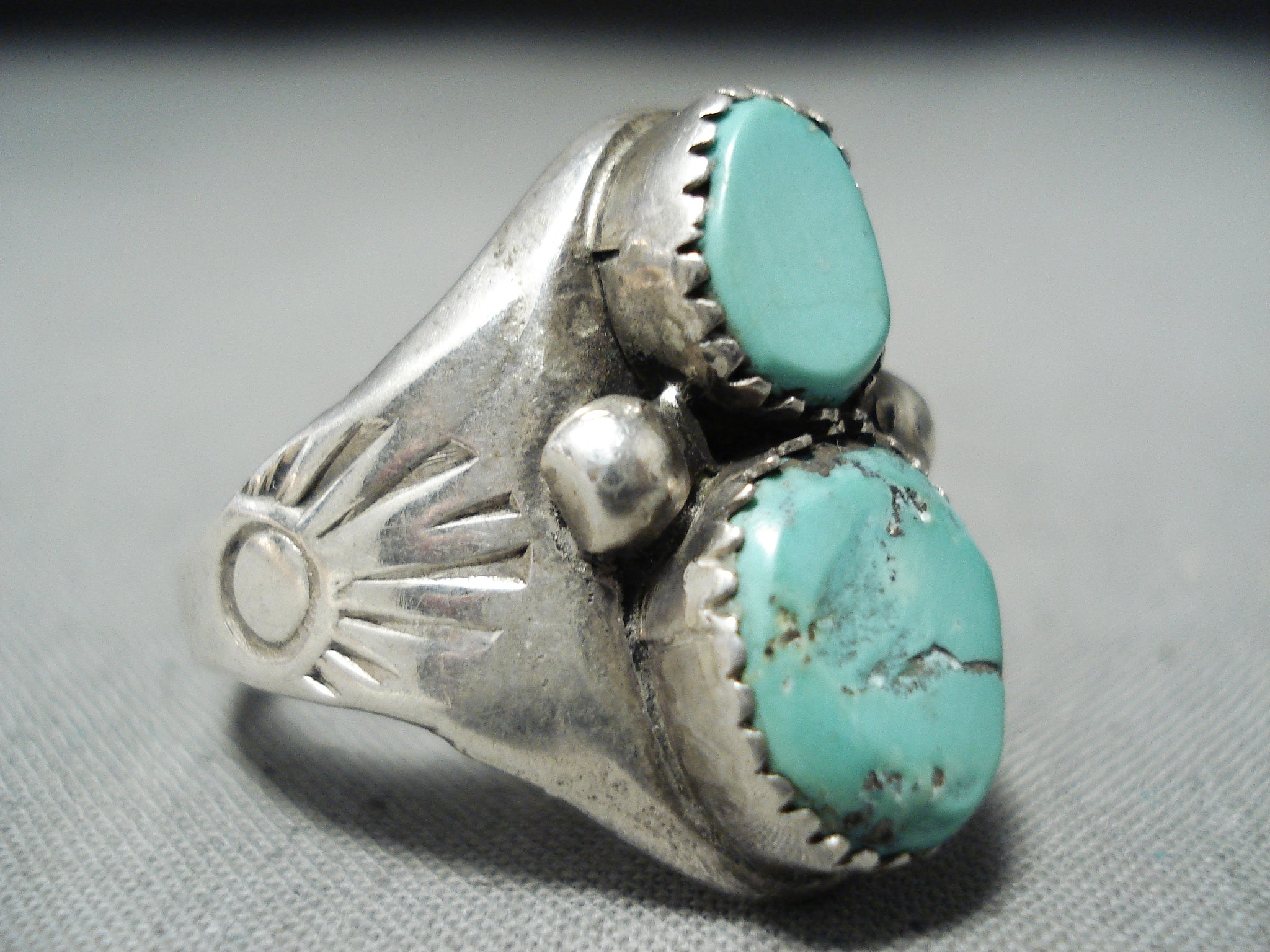 Stunning Vintage Native American Navajo Nevada Green Turquoise Sterling Silver Ring