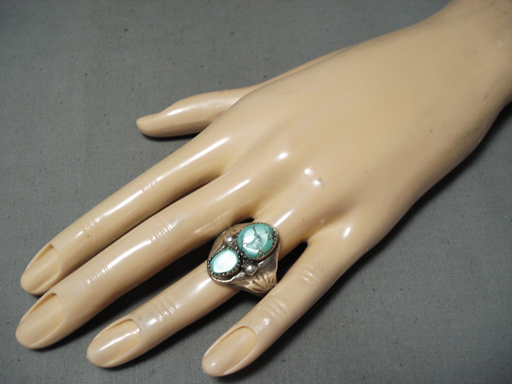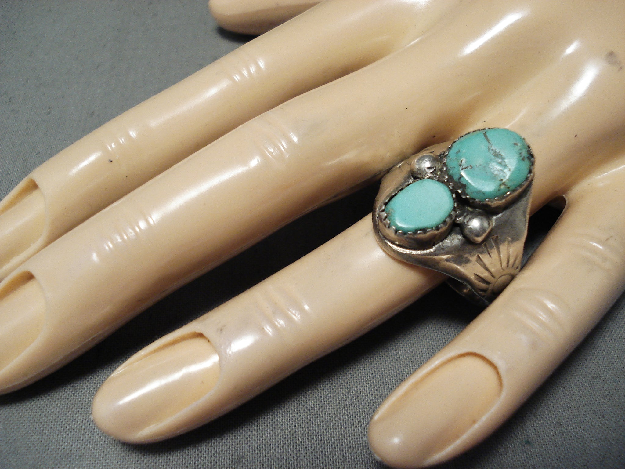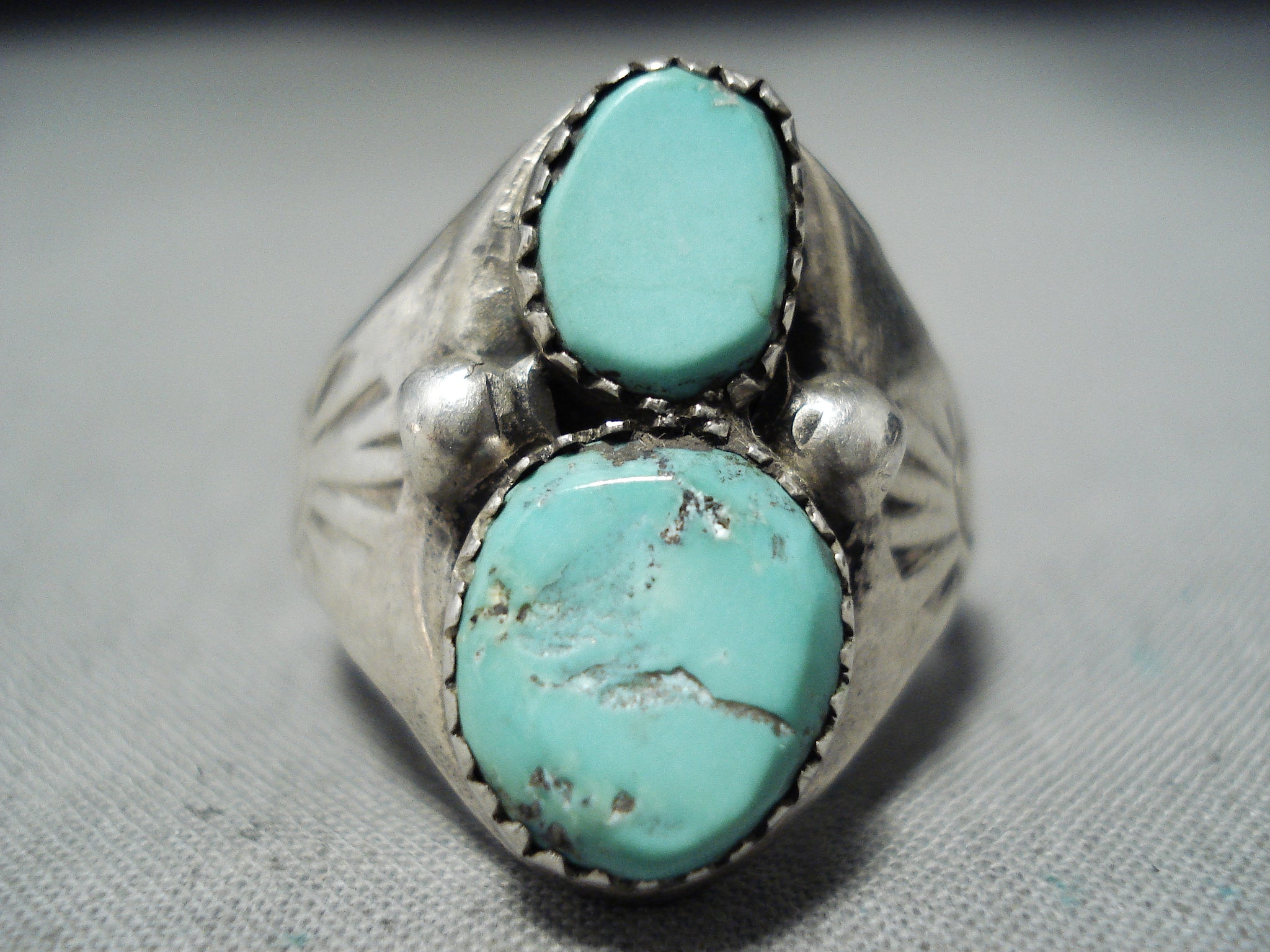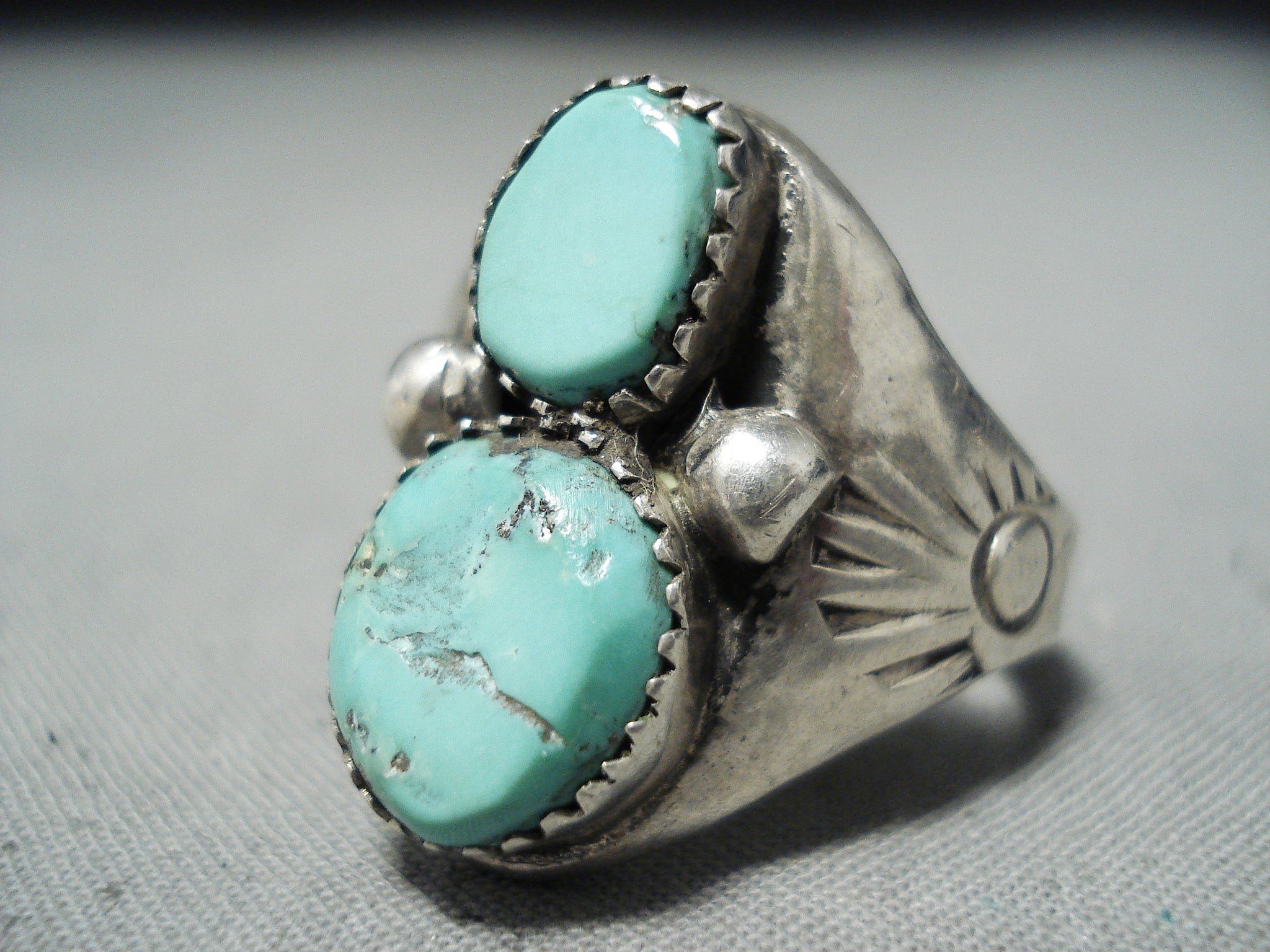 Stunning Vintage Native American Navajo Nevada Green Turquoise Sterling Silver Ring