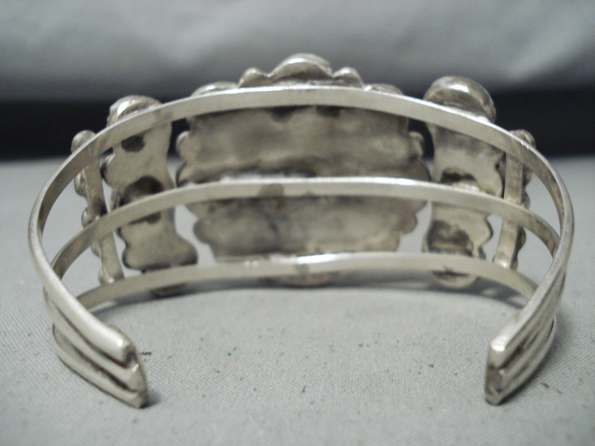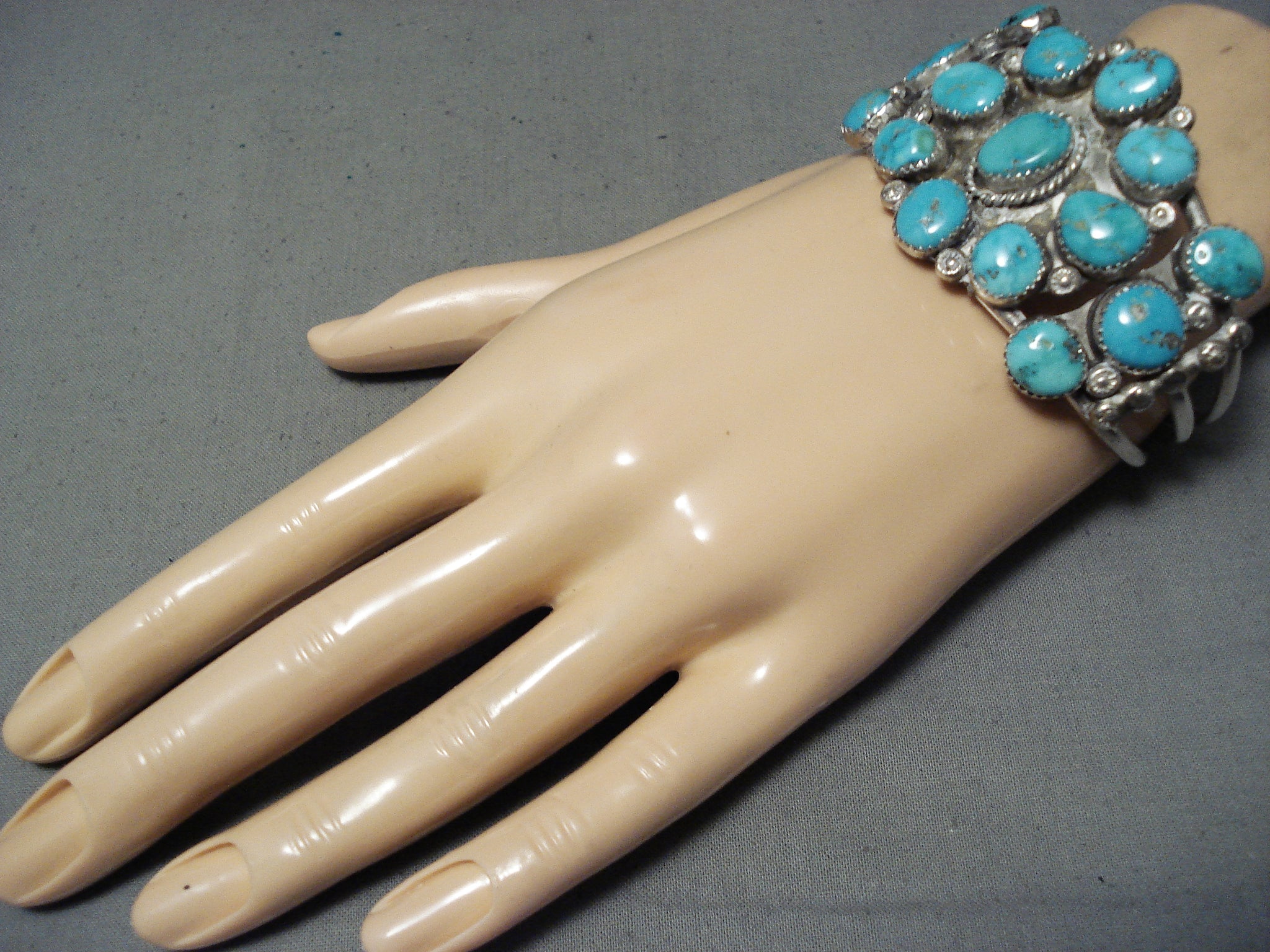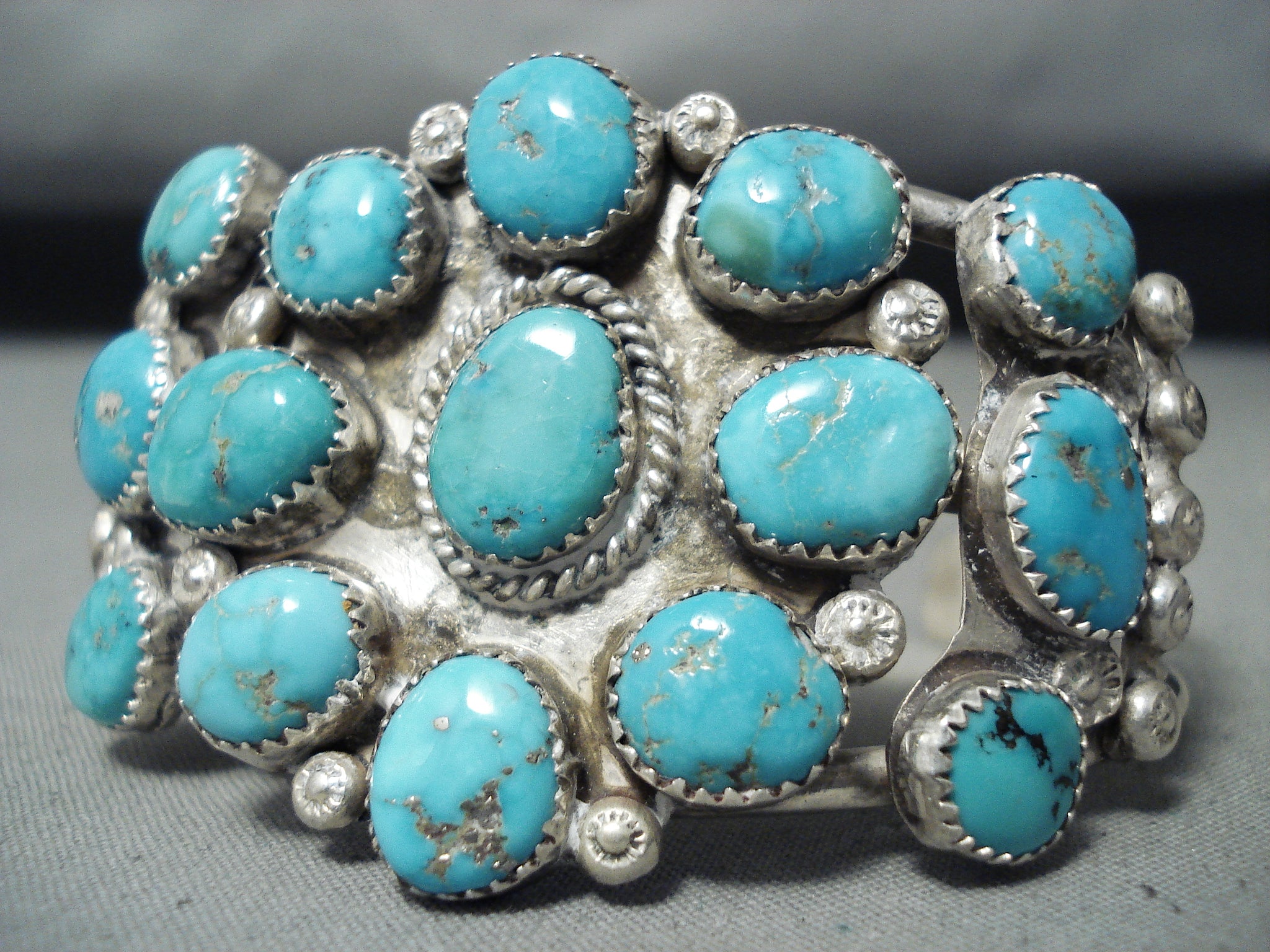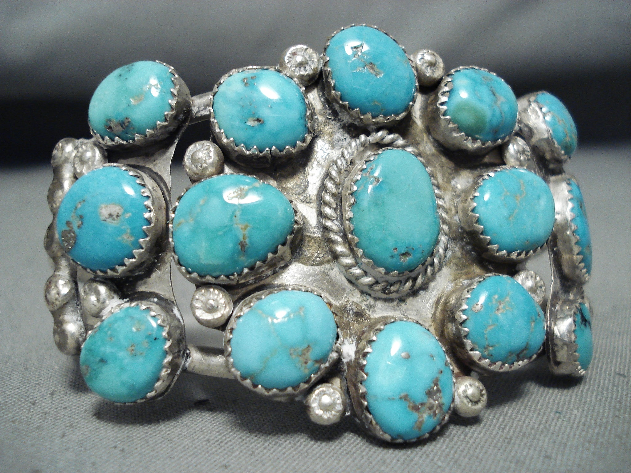 Stunning Vintage Native American Zuni 15 Blue Gem Turquoise Sterling Silver Bracelet