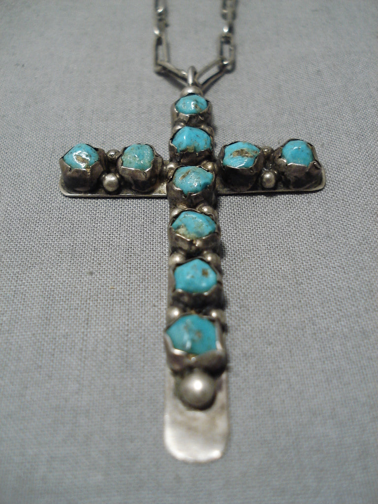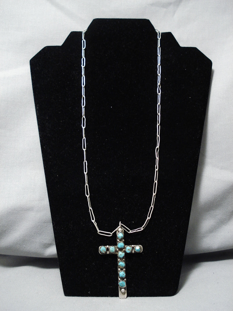 Stunning Vintage Navajo Sterling Silver Cross Native American Necklace
