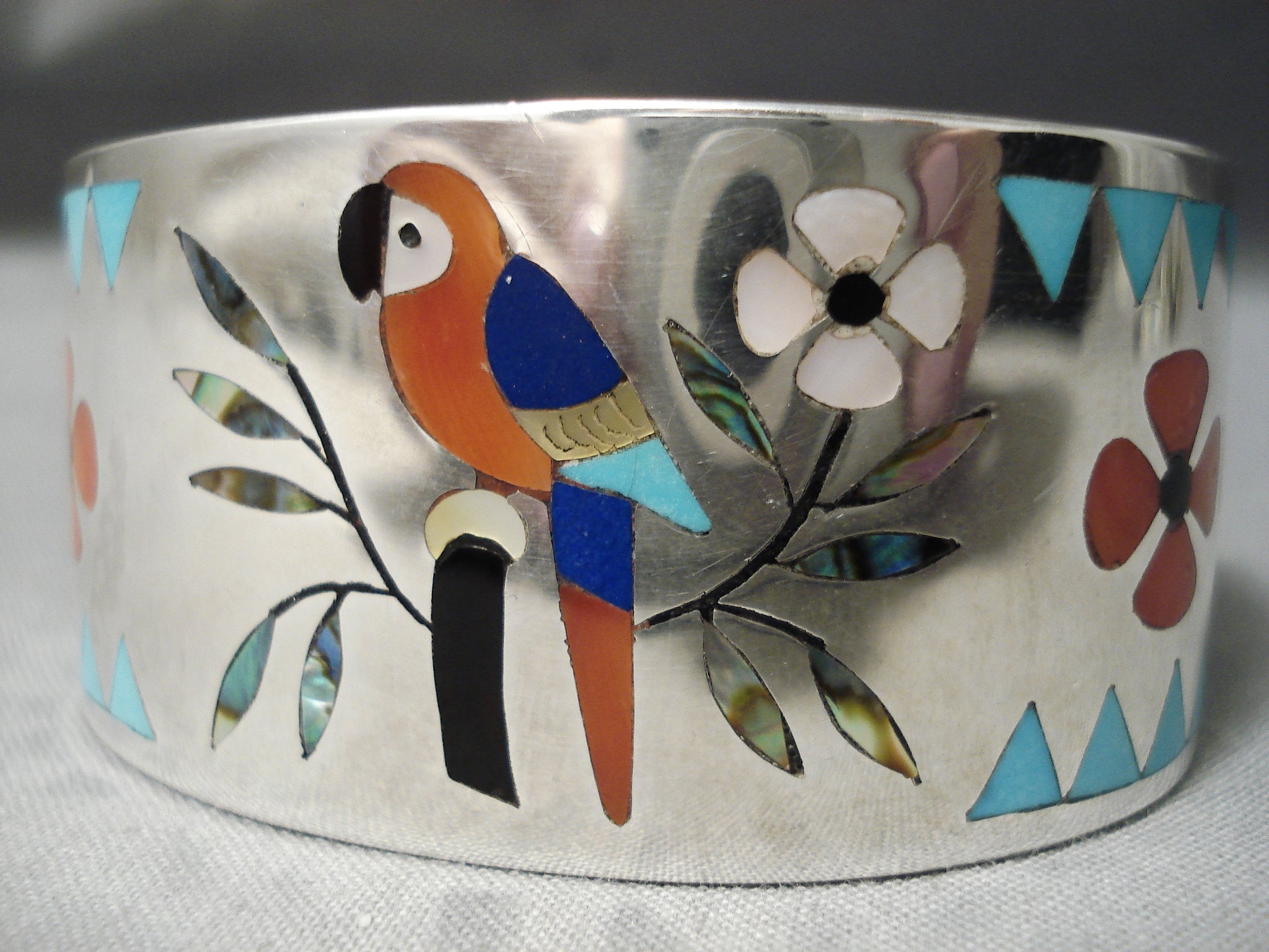 Stunning Vintage Zuni Native American Flower Garden Sterling Silver Bracelet
