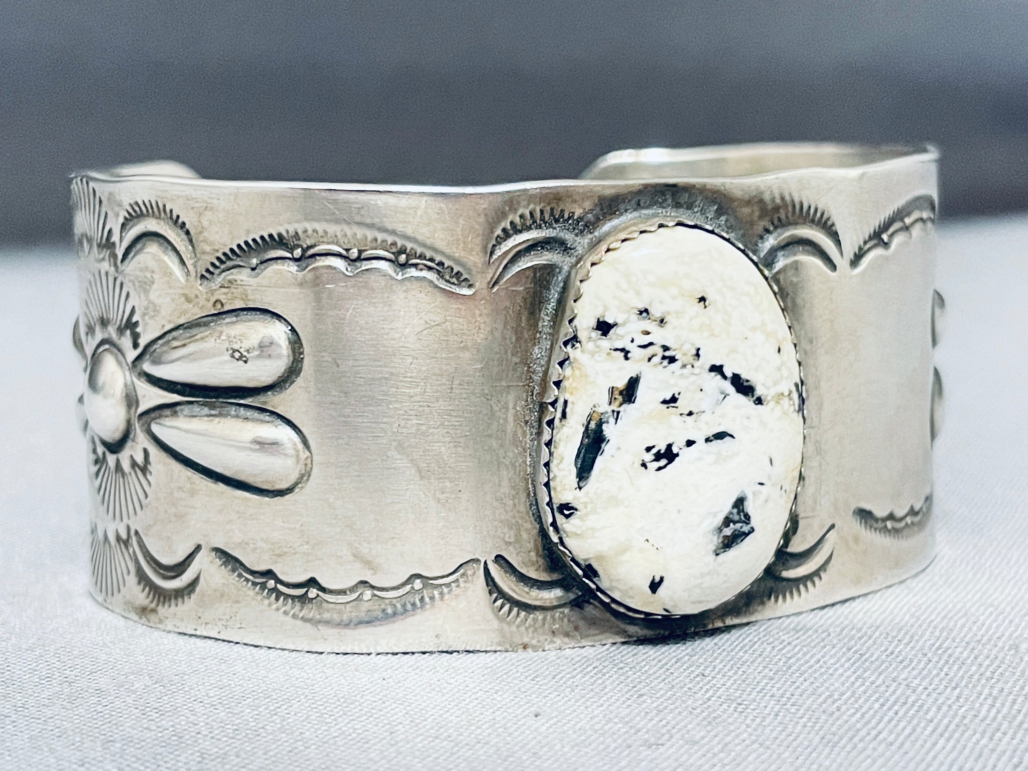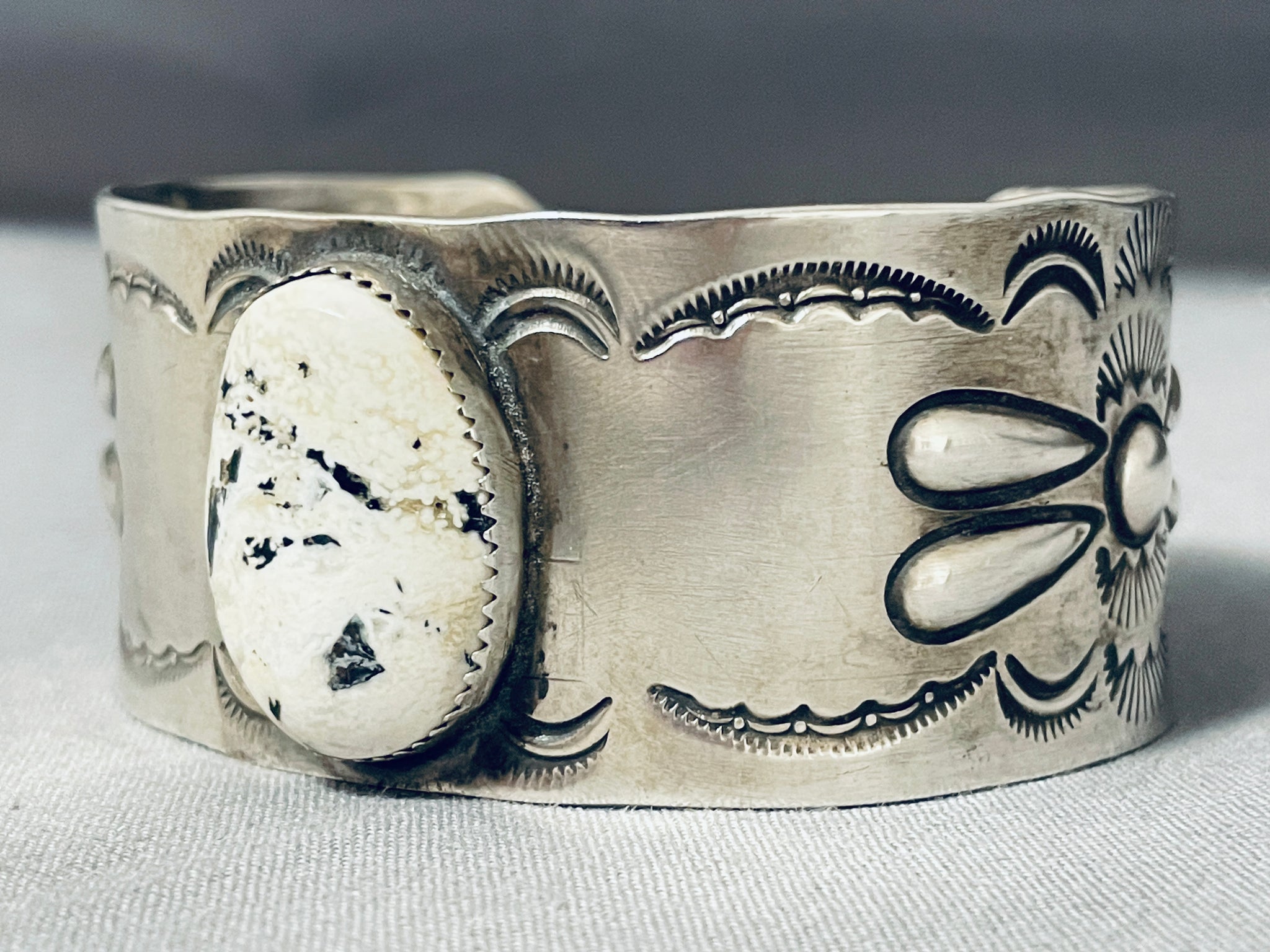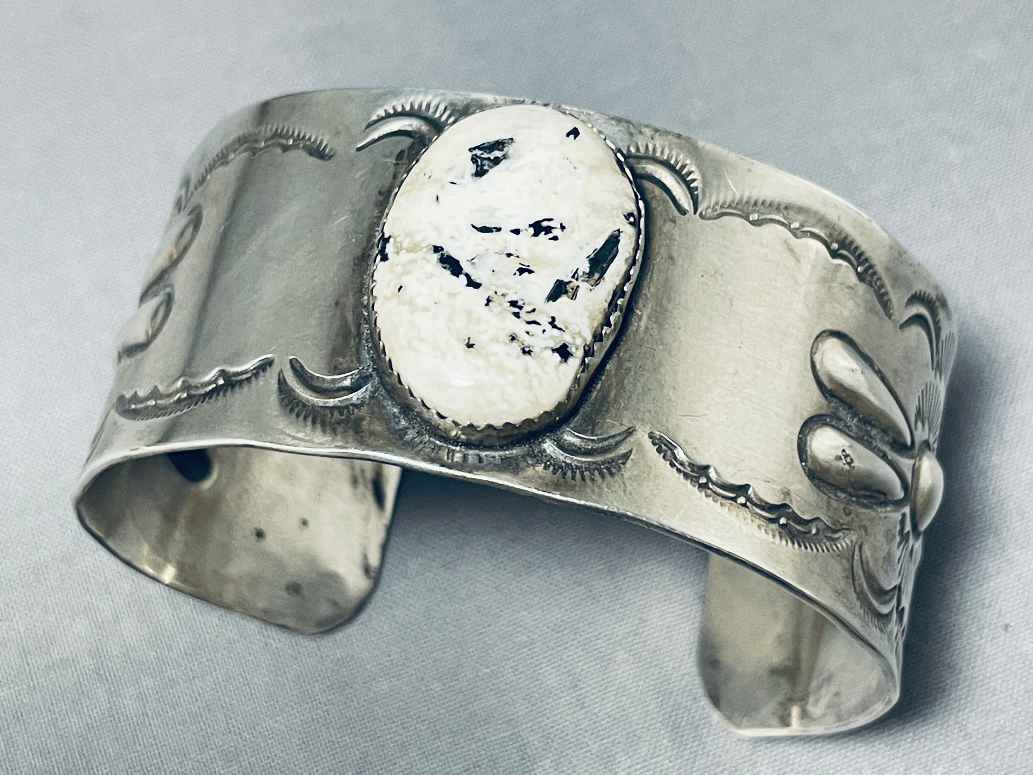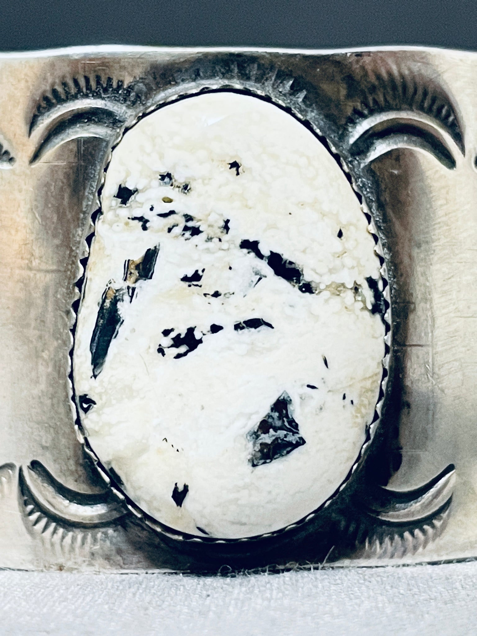 Sturdy Vintage Native American Navajo White Buffalo Turquoise Sterling Silver Bracelet
