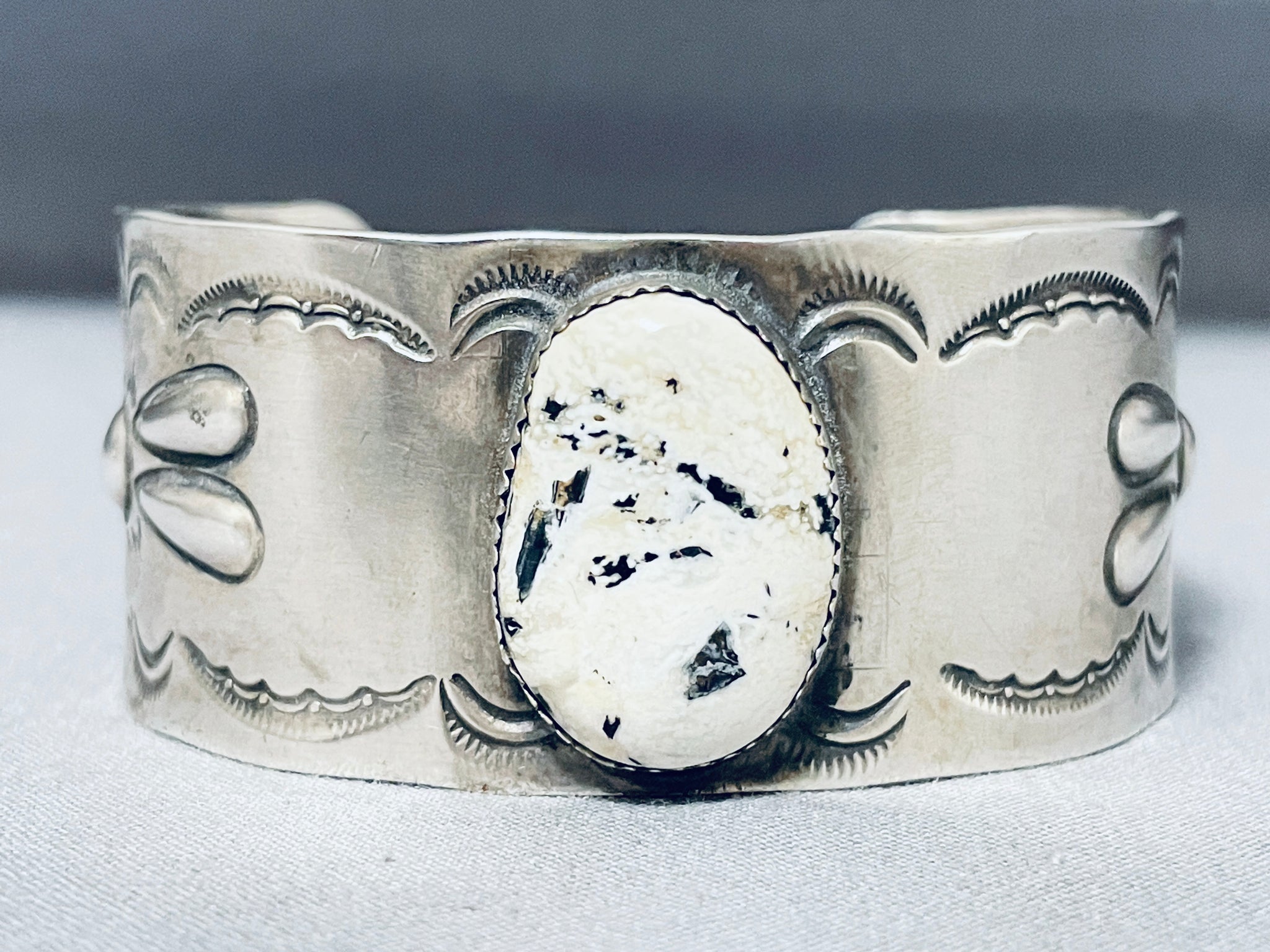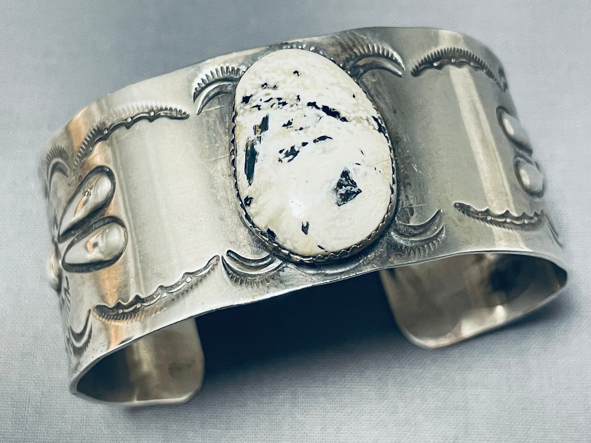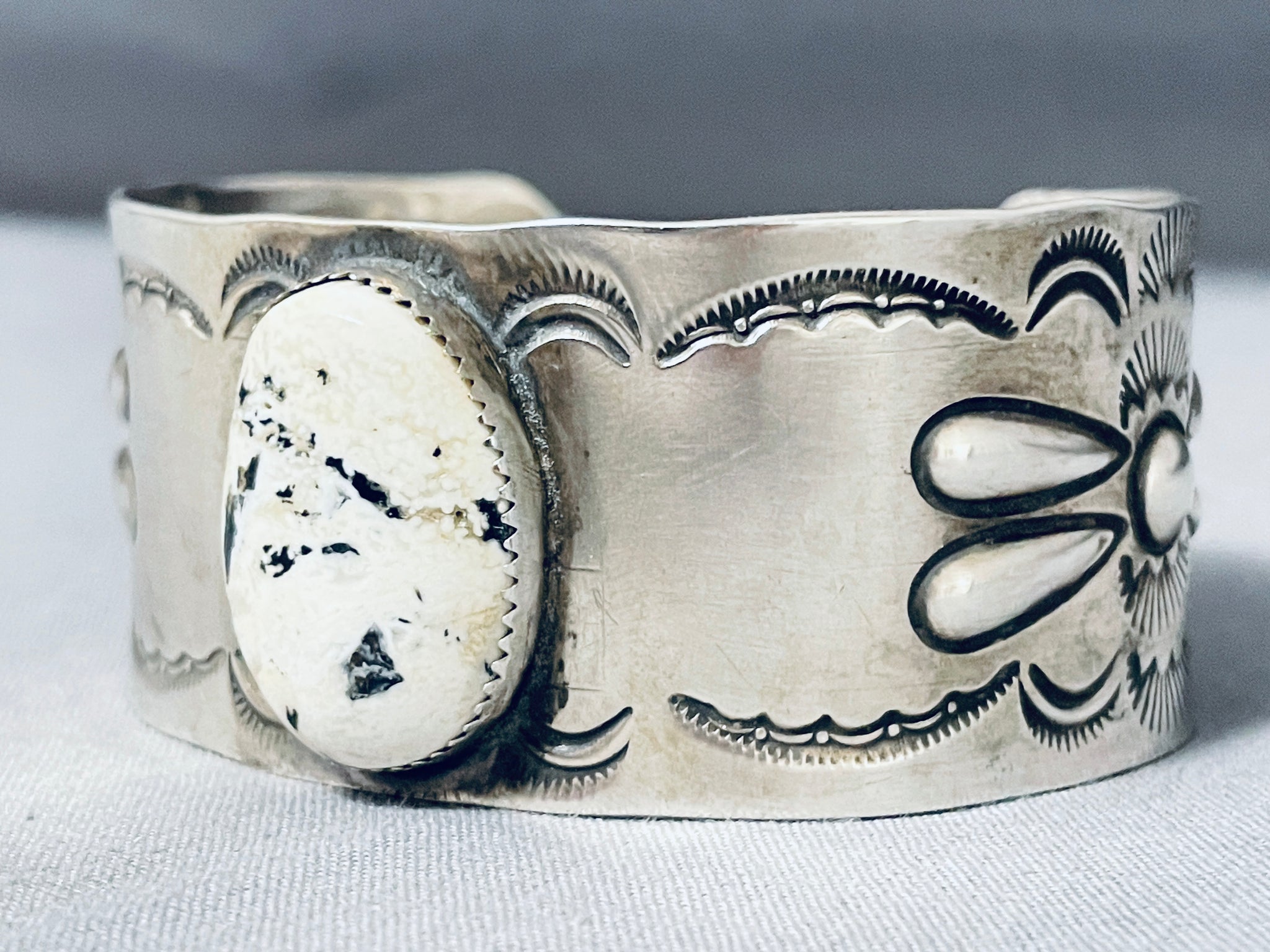 Sturdy Vintage Native American Navajo White Buffalo Turquoise Sterling Silver Bracelet