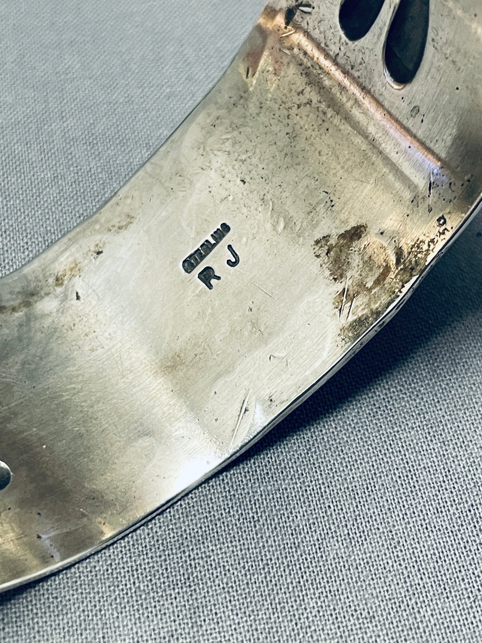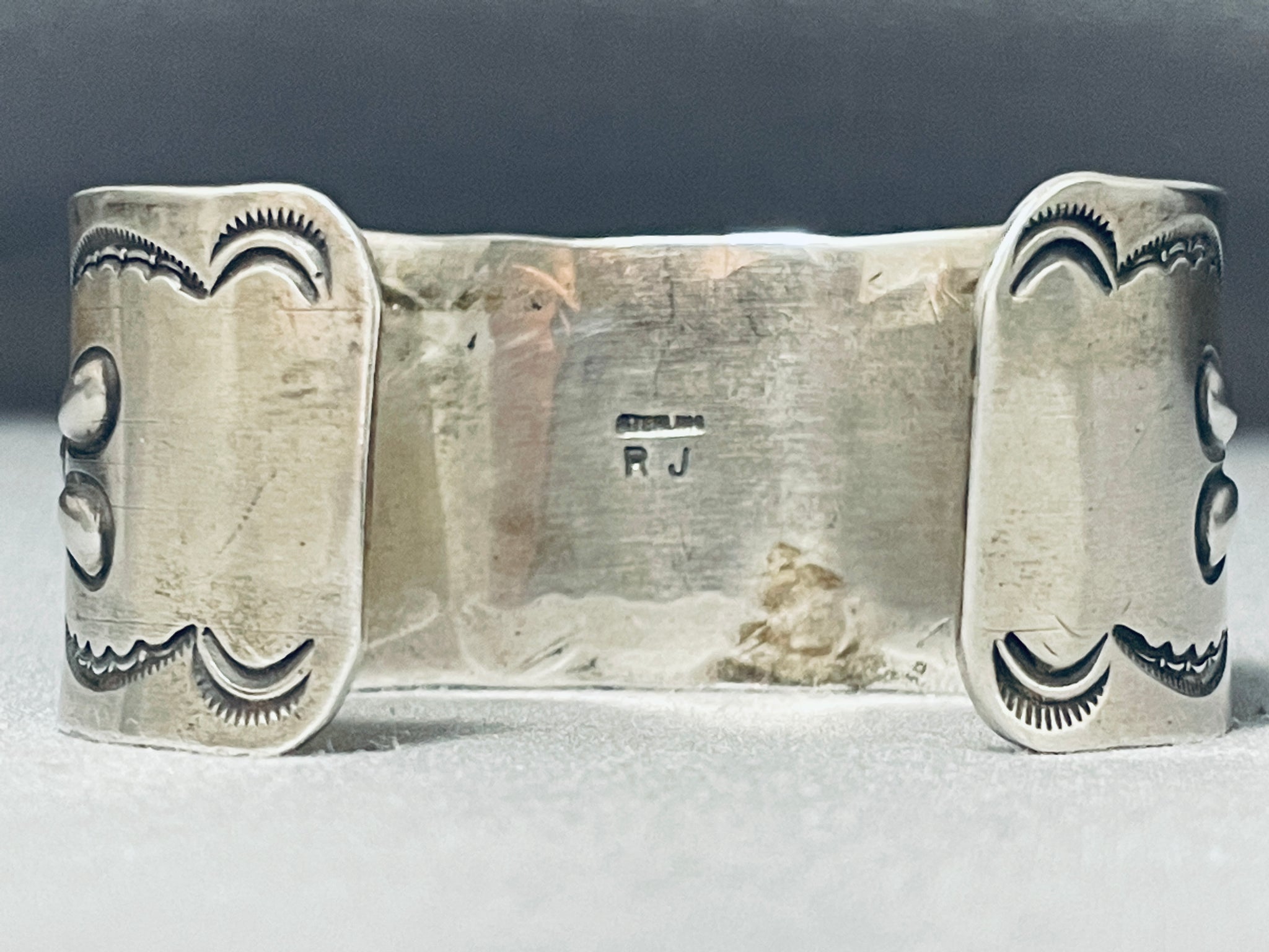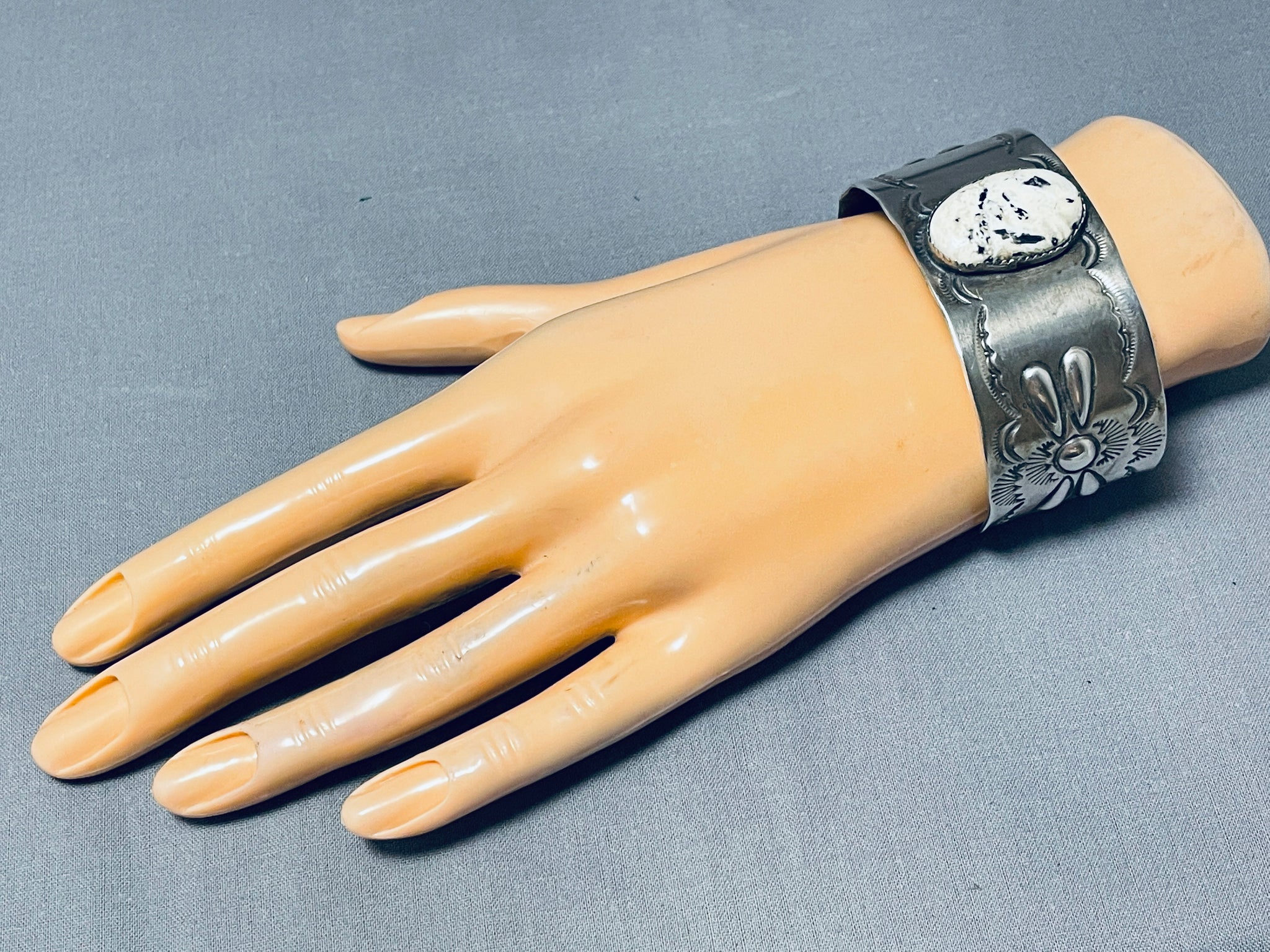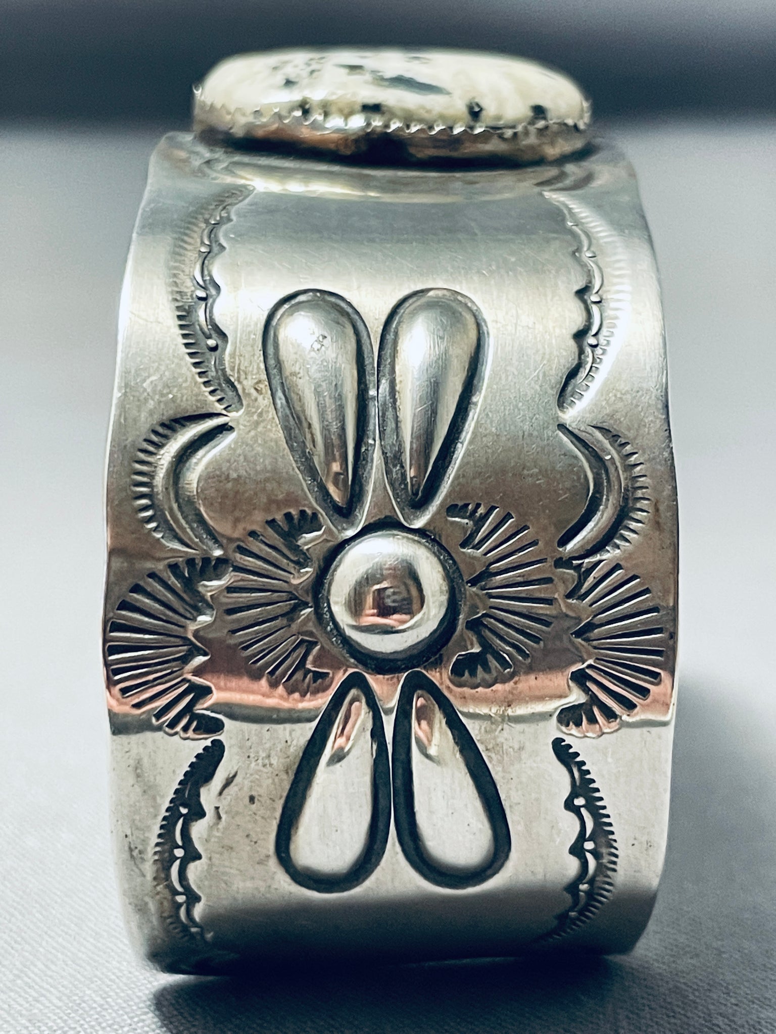Sturdy Vintage Native American Navajo White Buffalo Turquoise Sterling Silver Bracelet