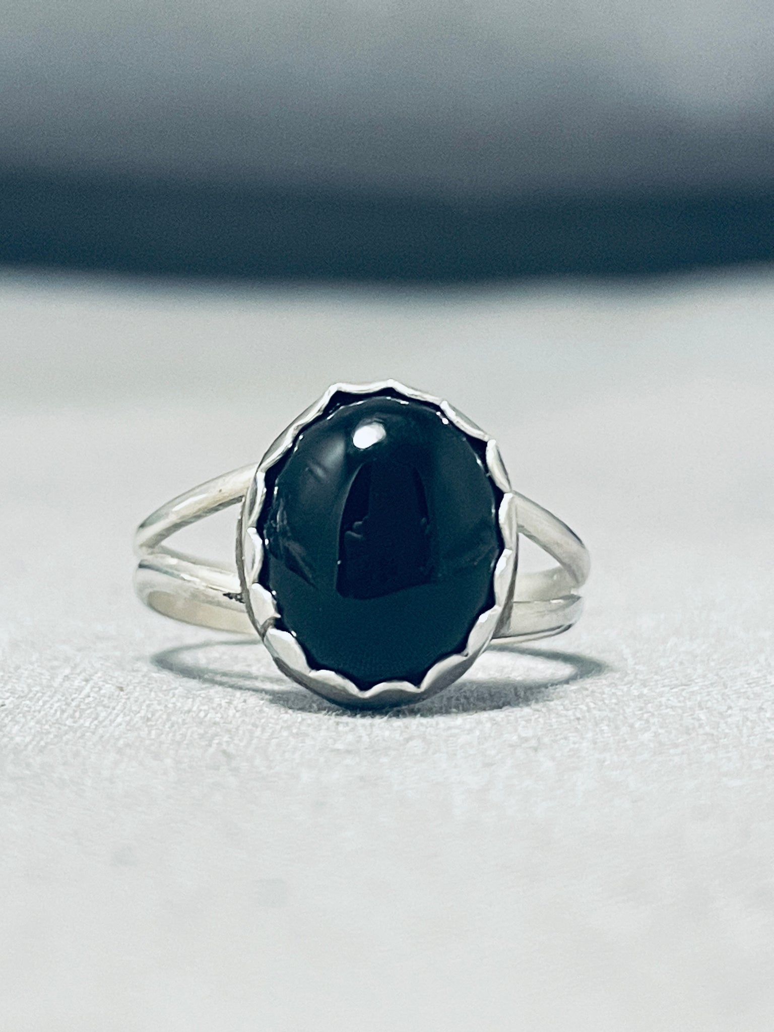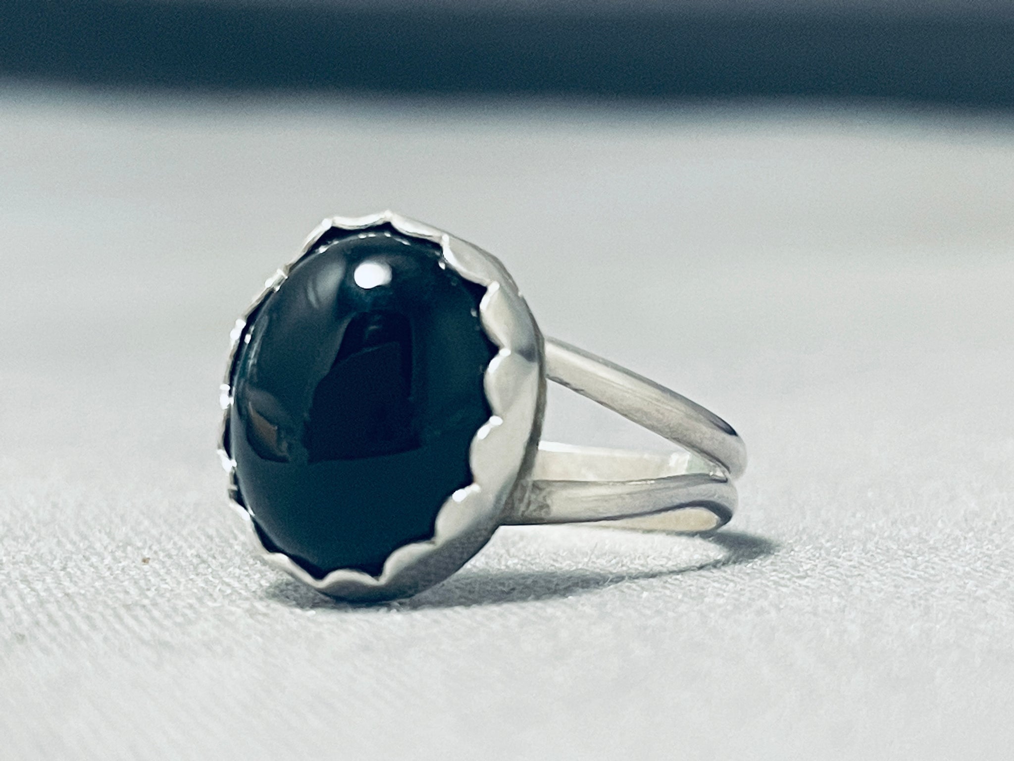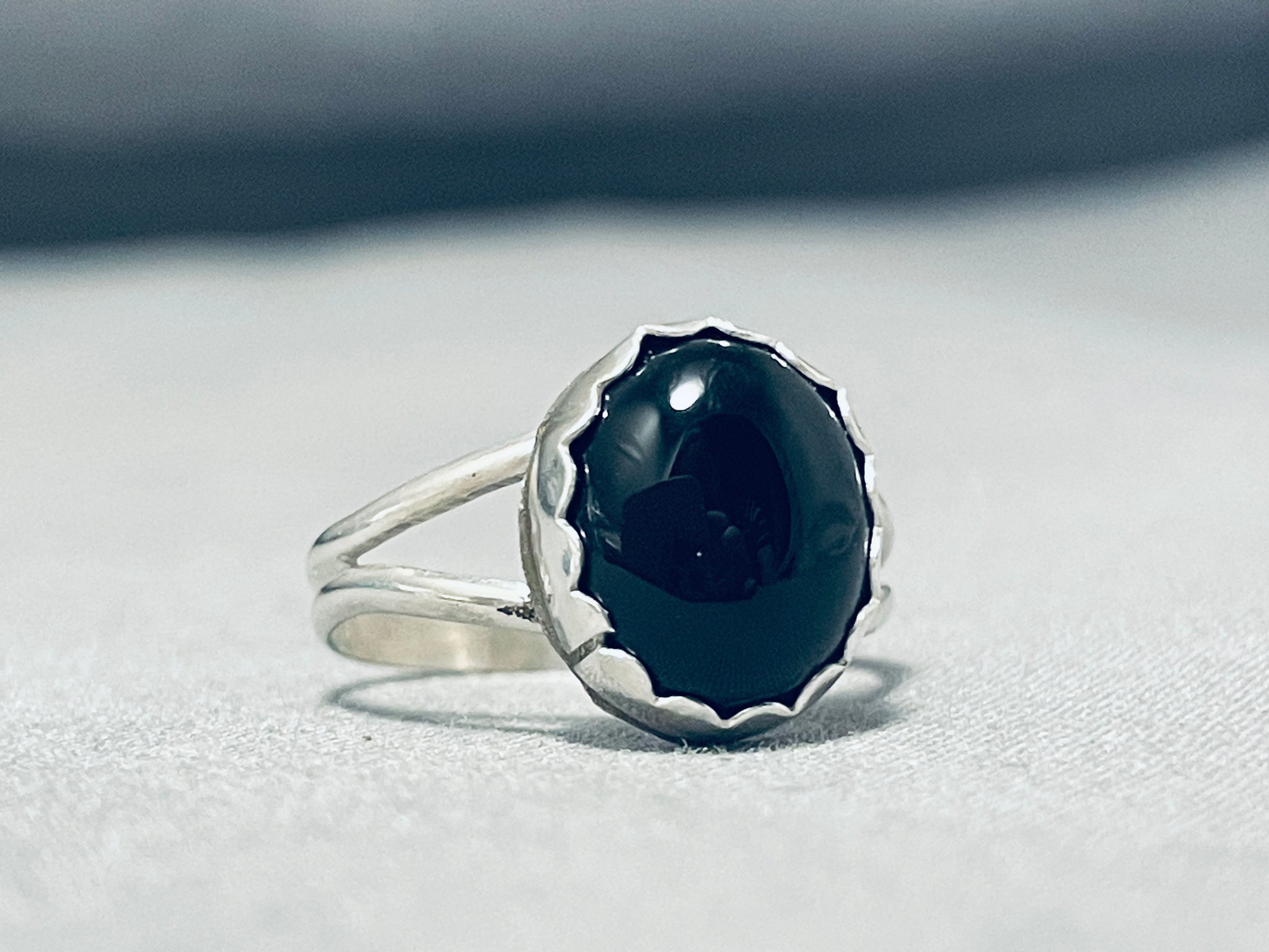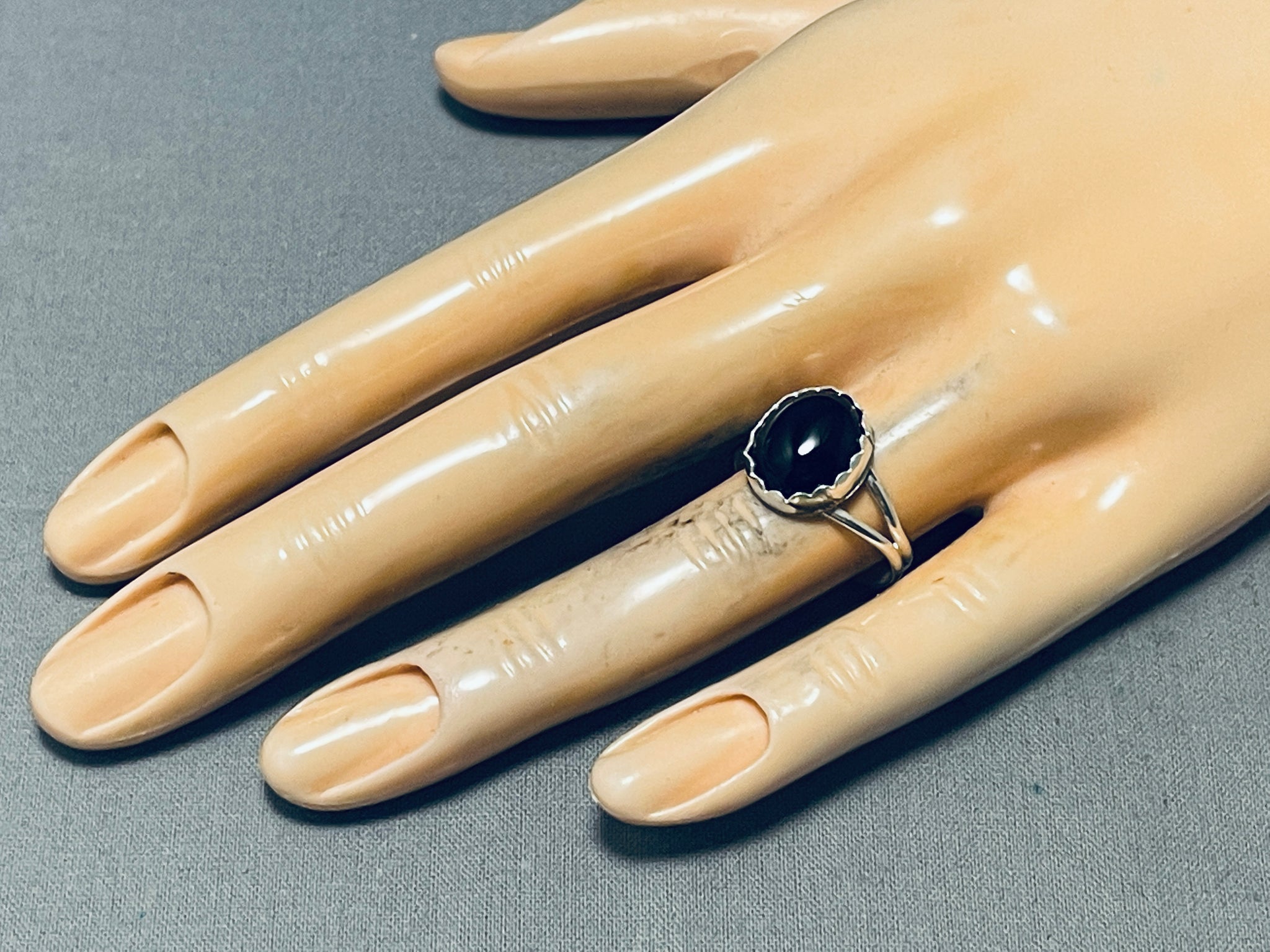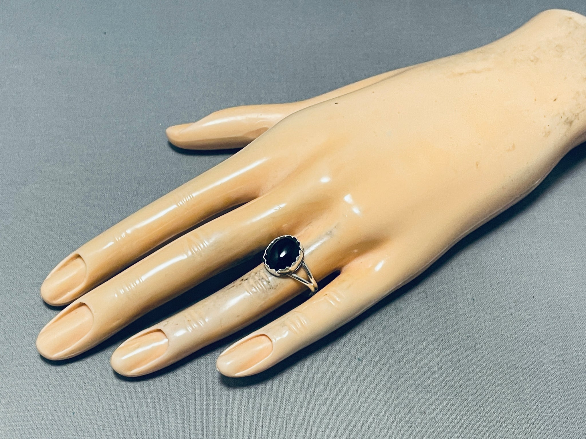 Superb Vintage Native American Navajo Black Onyx Sterling Silver Ring
