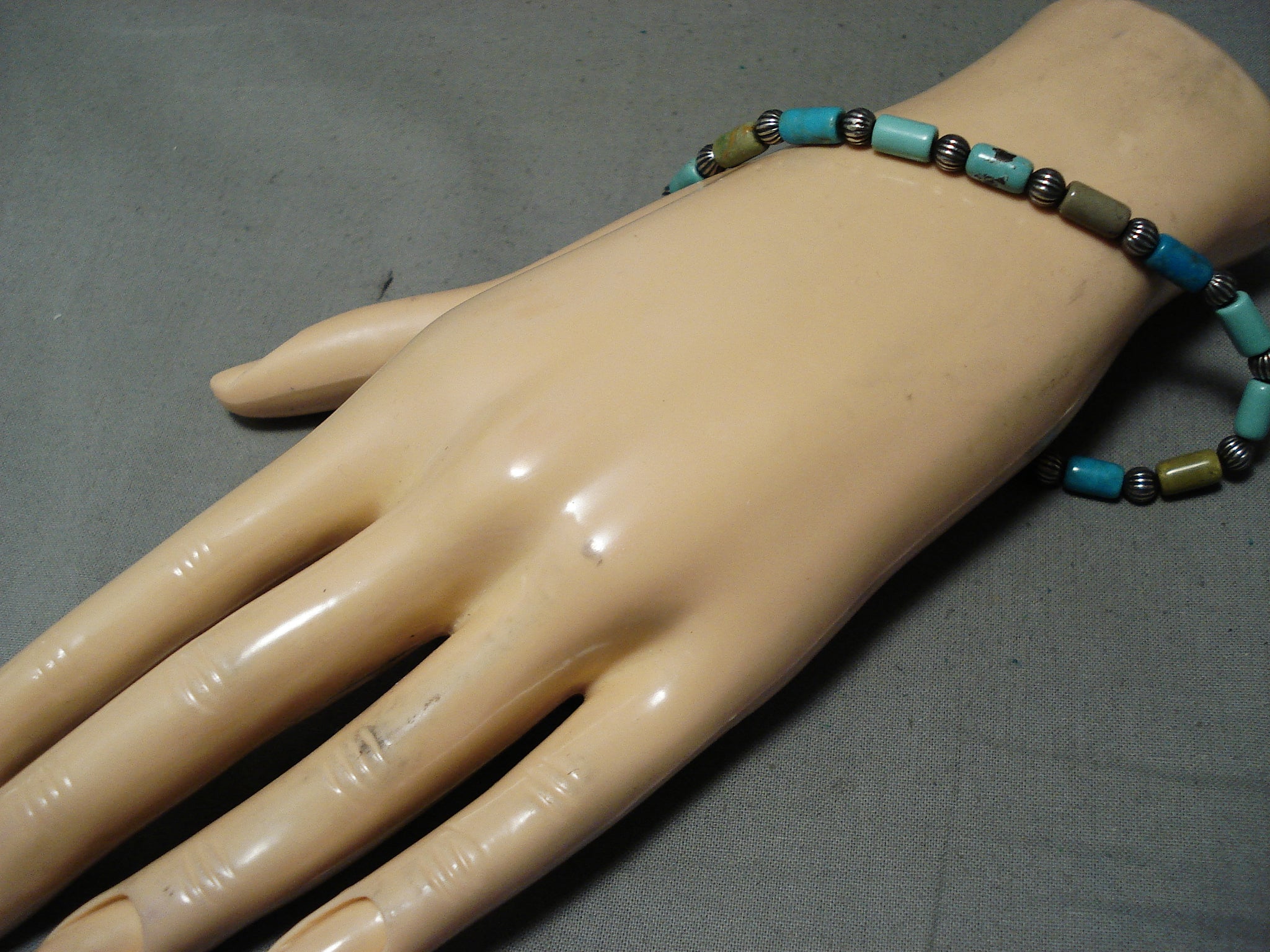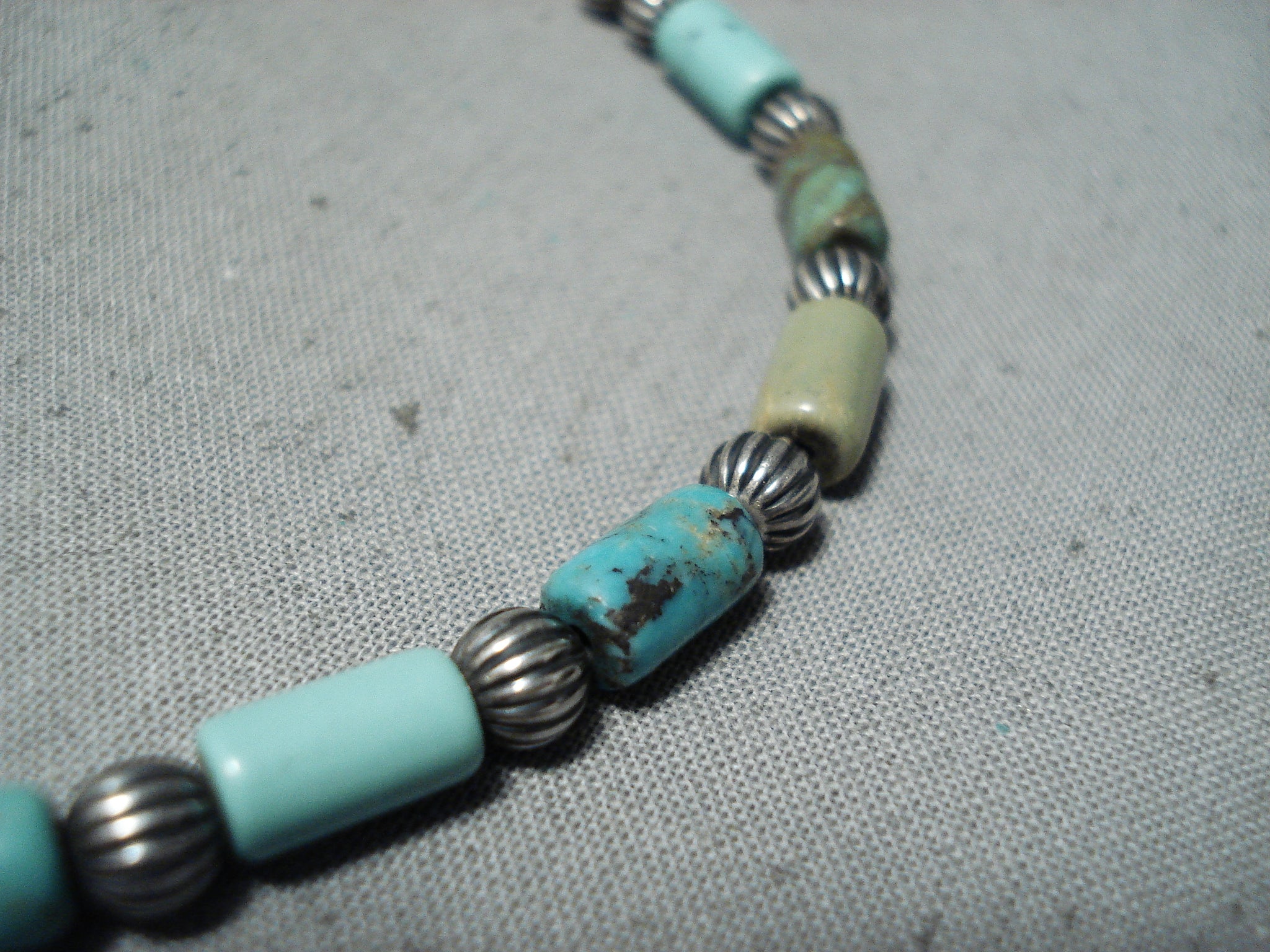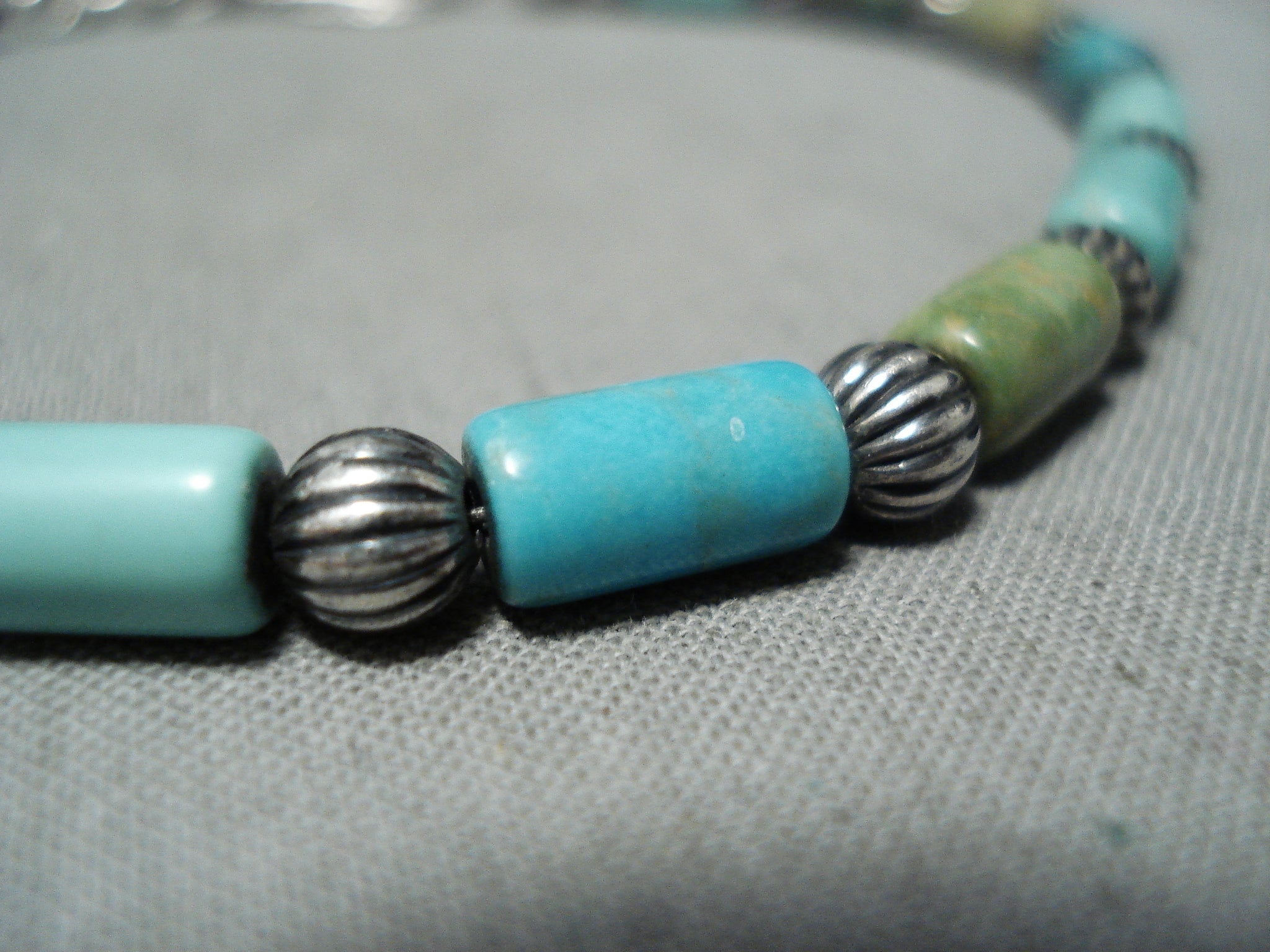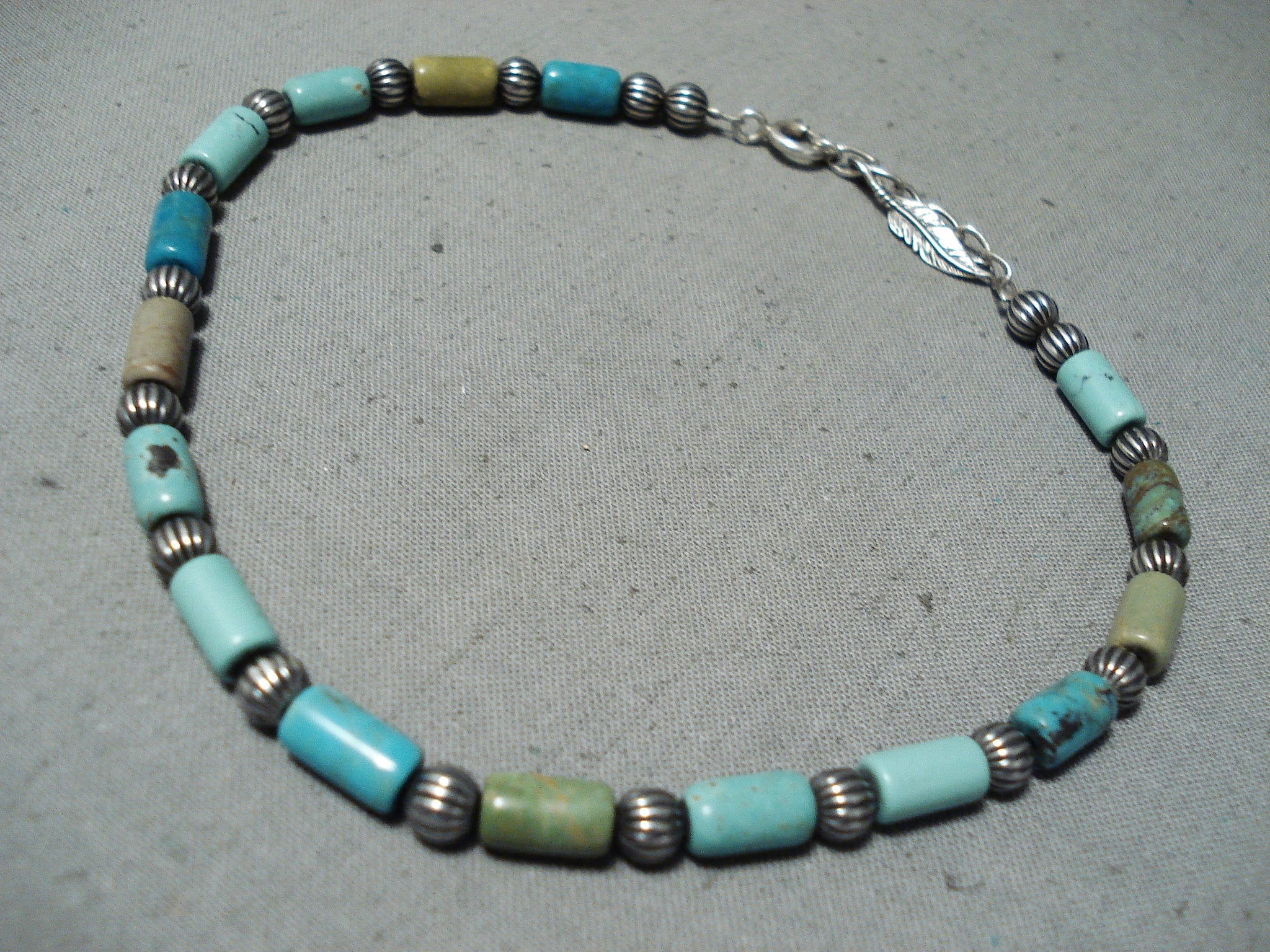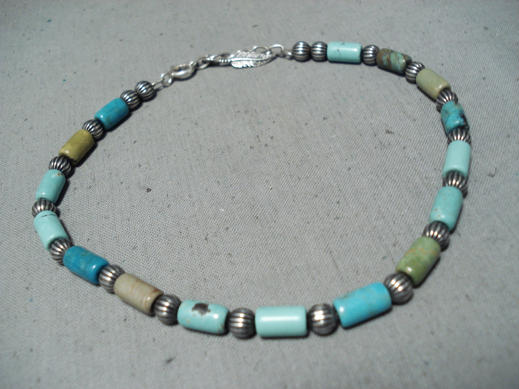 Superb Vintage Native American Navajo Blue Green Turquoise Sterling Silver Bracelet