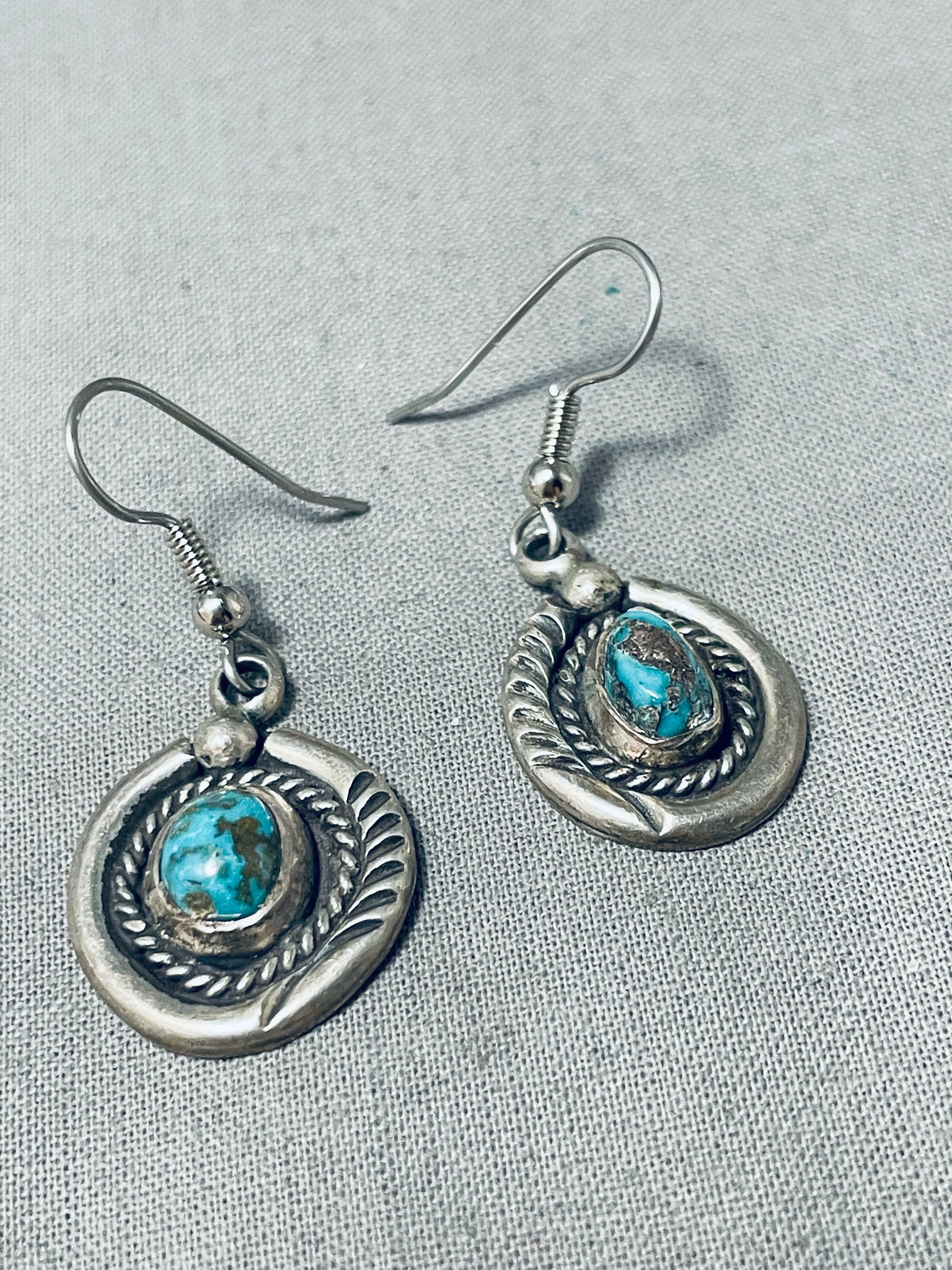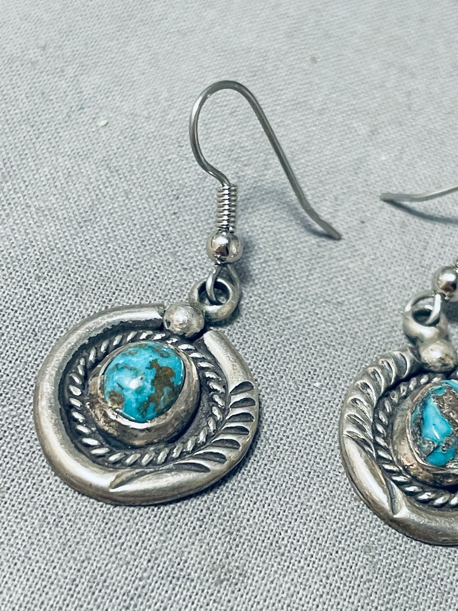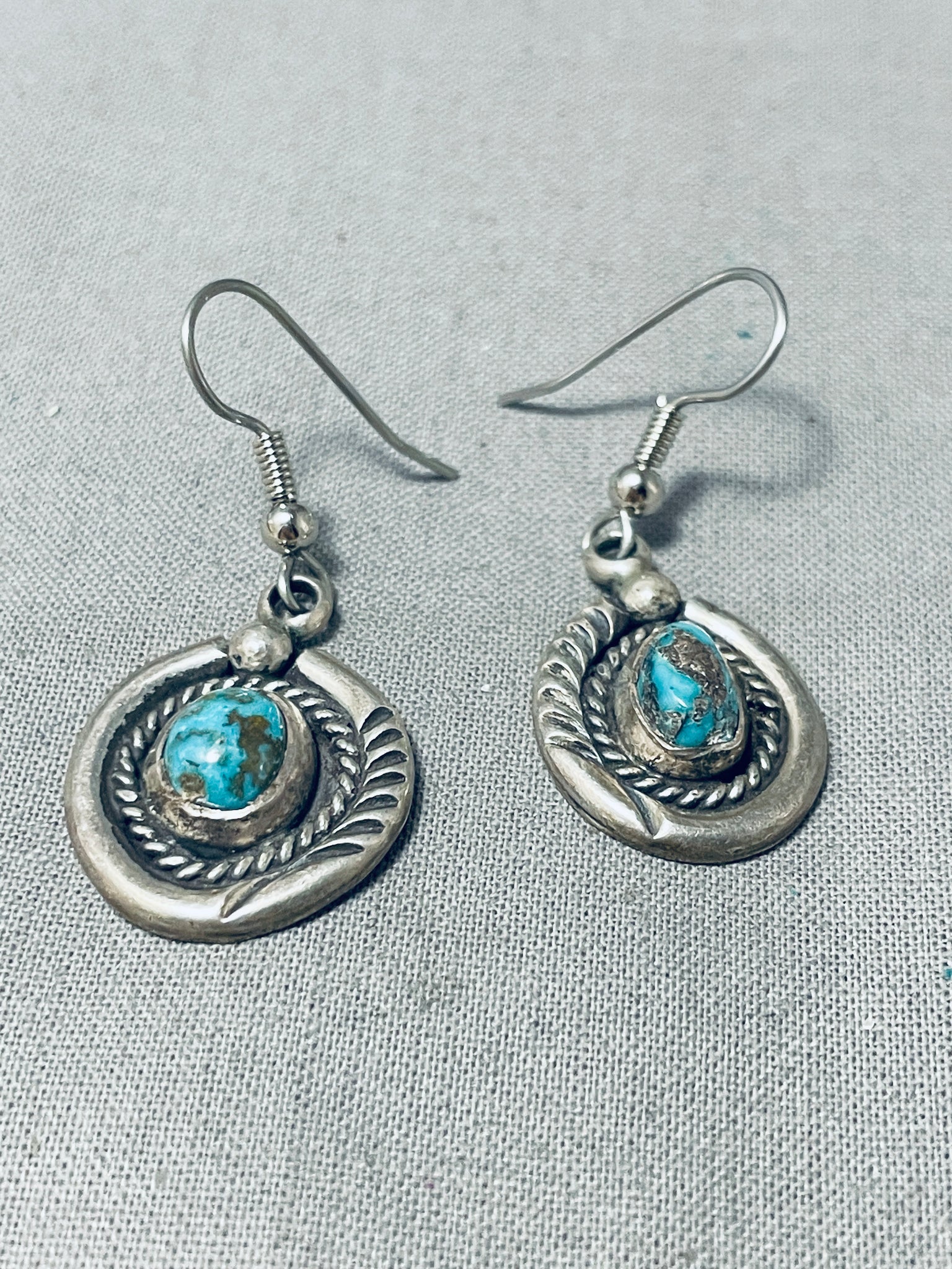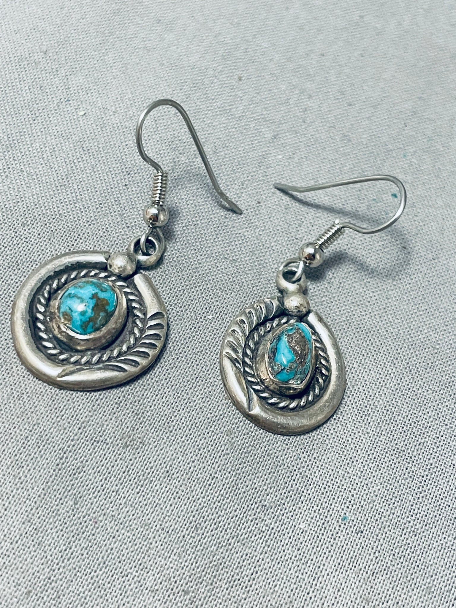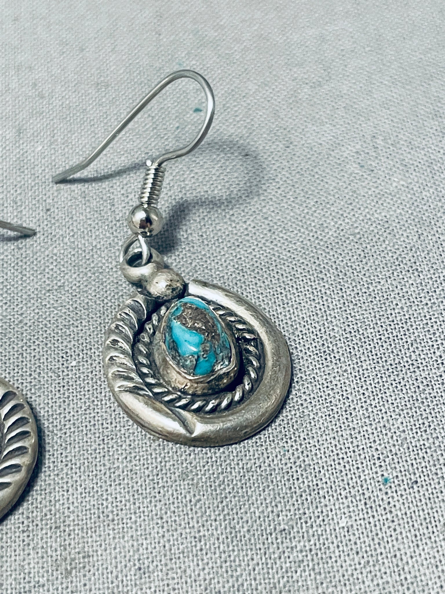 Superb Vintage Native American Navajo Kingman Turquoise Sterling Silver Pendant Earrings