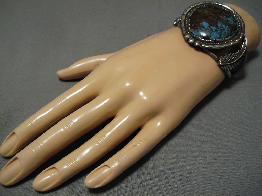 Superior Bisbee Turquoise Vintage Native American Navajo Sterling Silver Bracelet Old