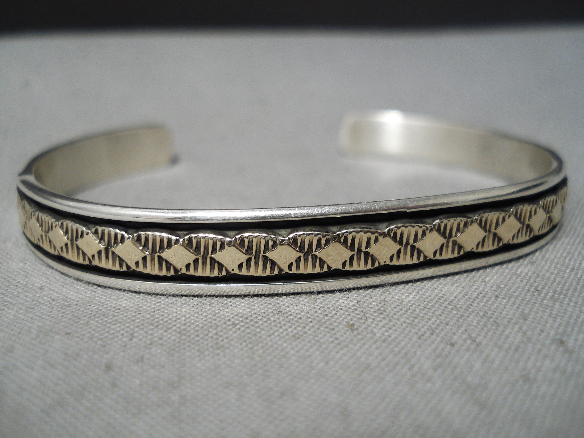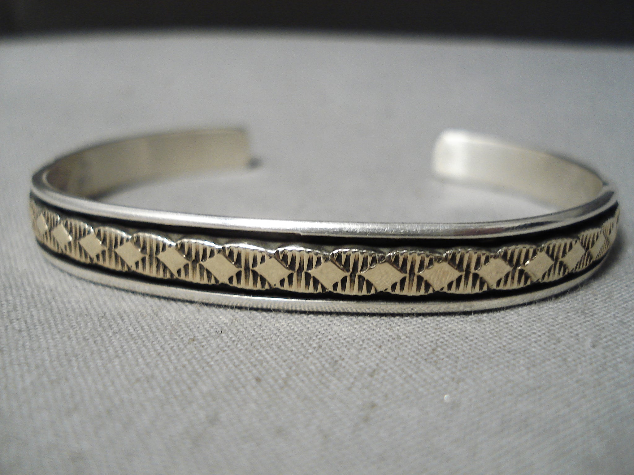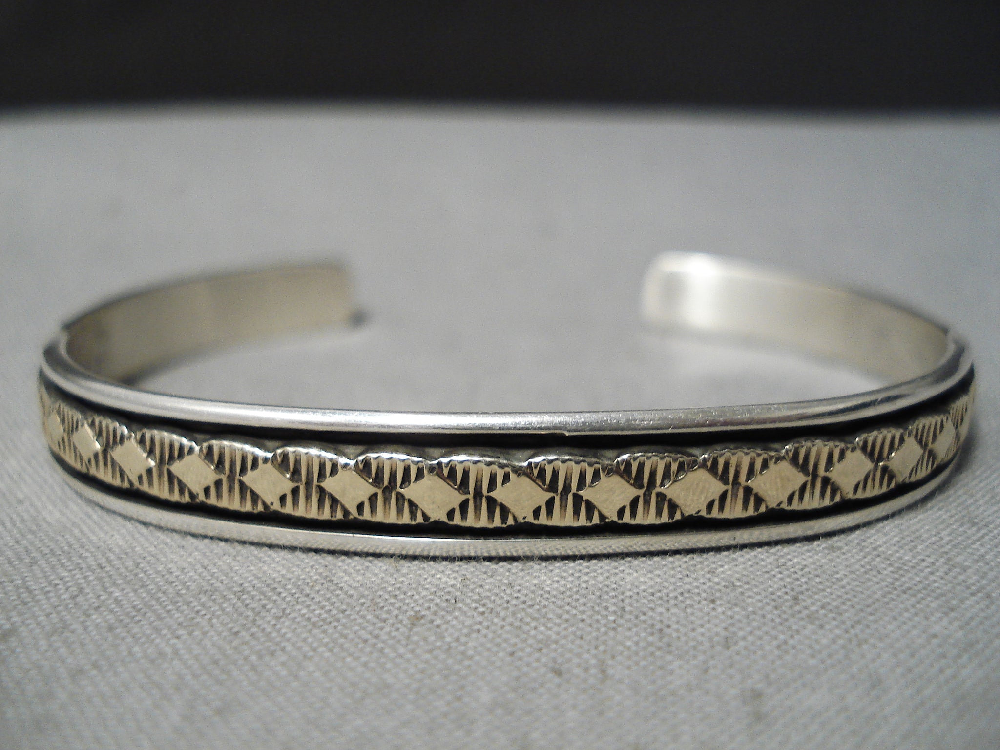 Superior Vintage Native American Navajo 14k Gold Sterling Silver Bruce Morgan Bracelet