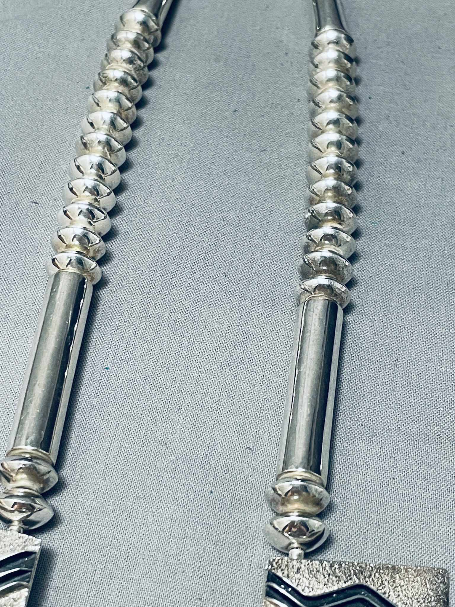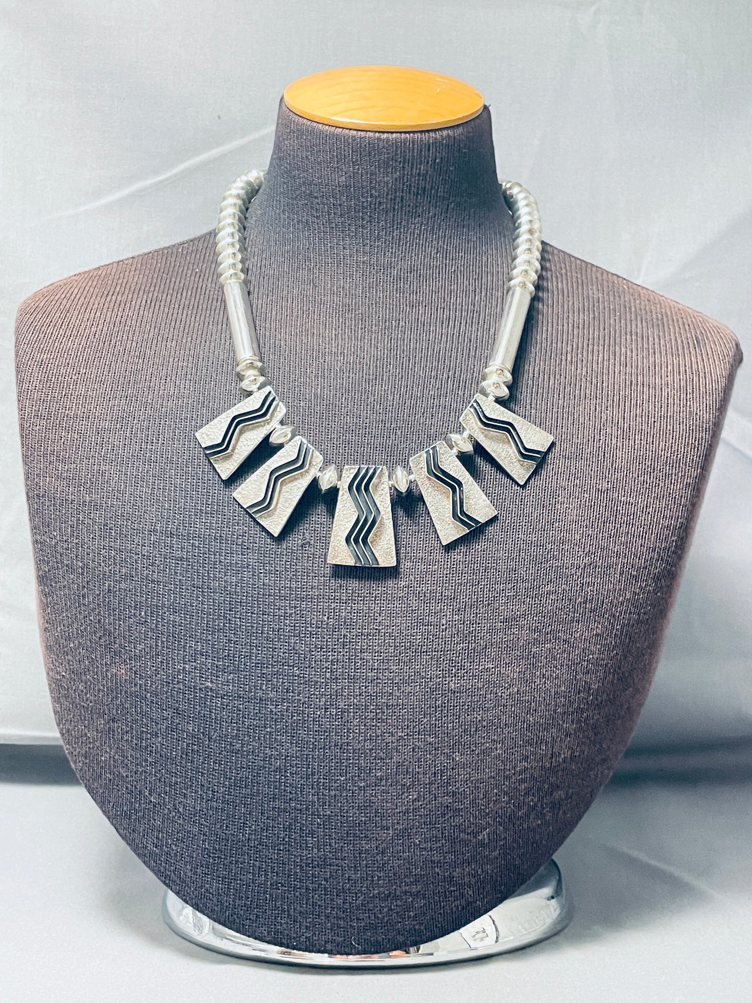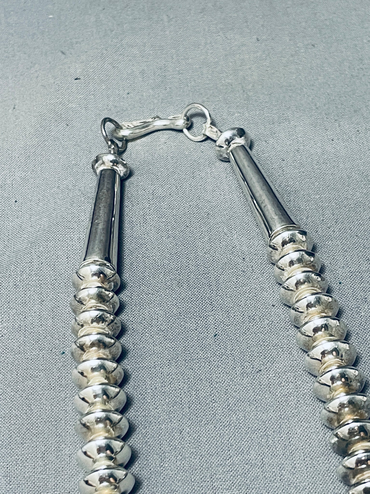 Symbolic River Of Life Vintage Native American Navajo Sterling Silver Tube Necklace
