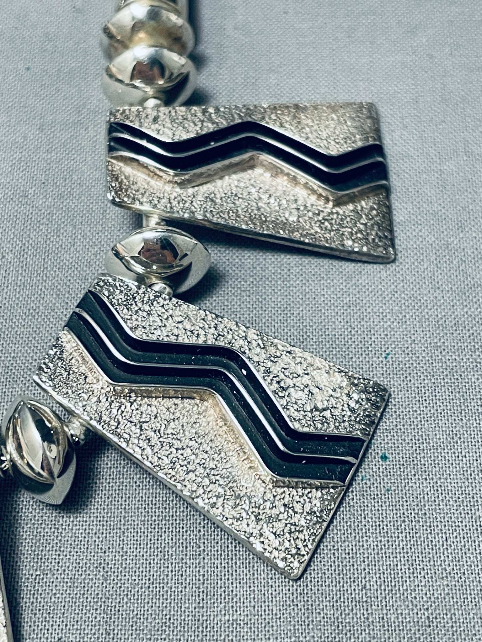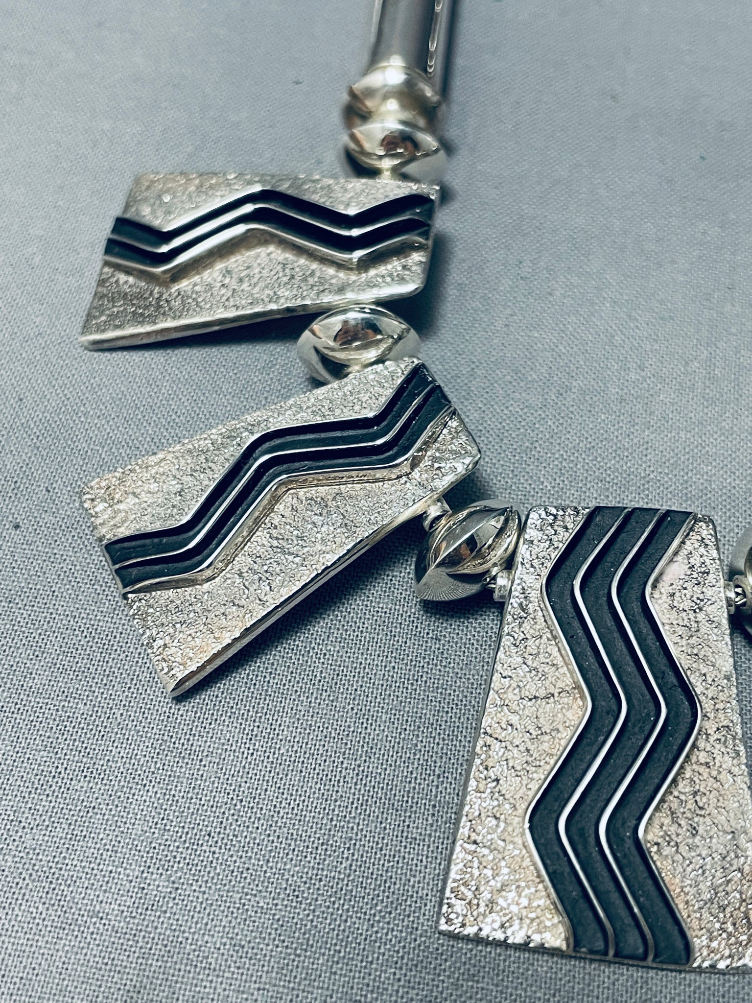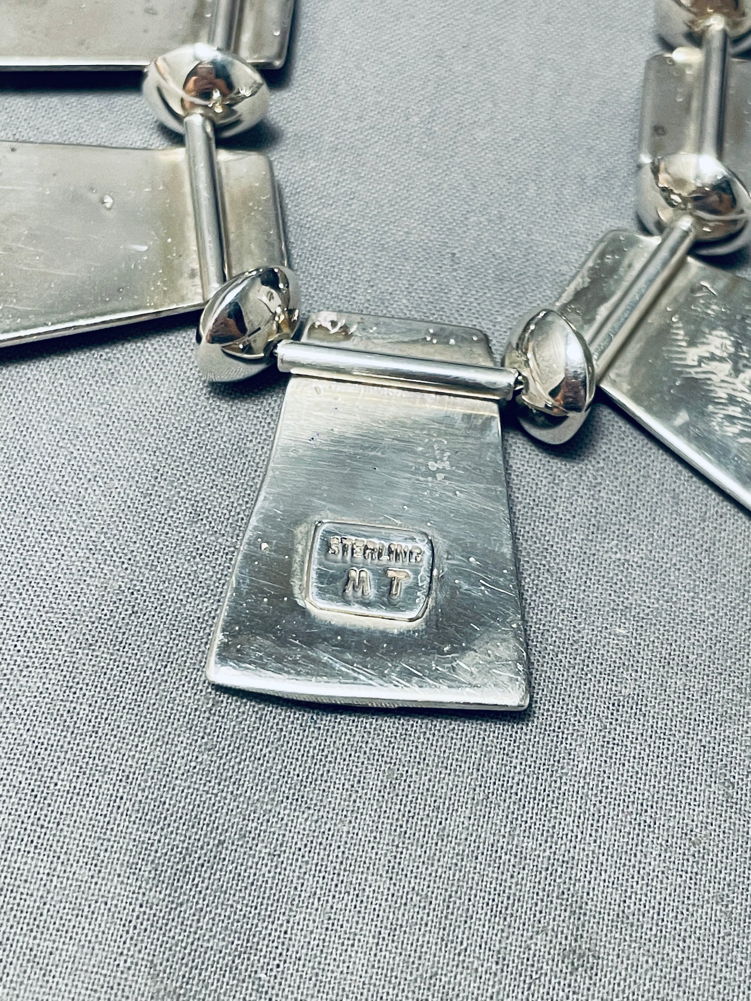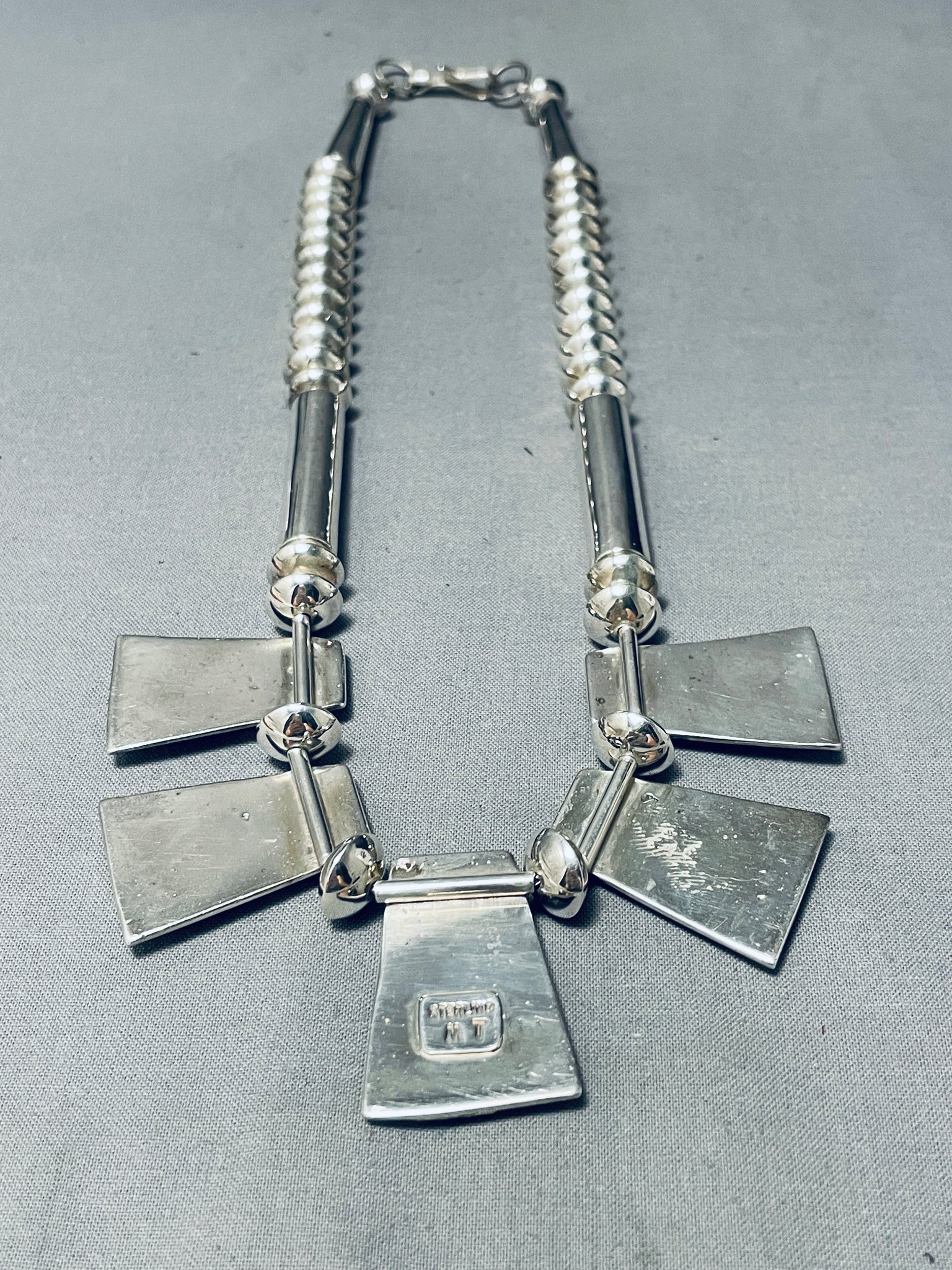 Symbolic River Of Life Vintage Native American Navajo Sterling Silver Tube Necklace