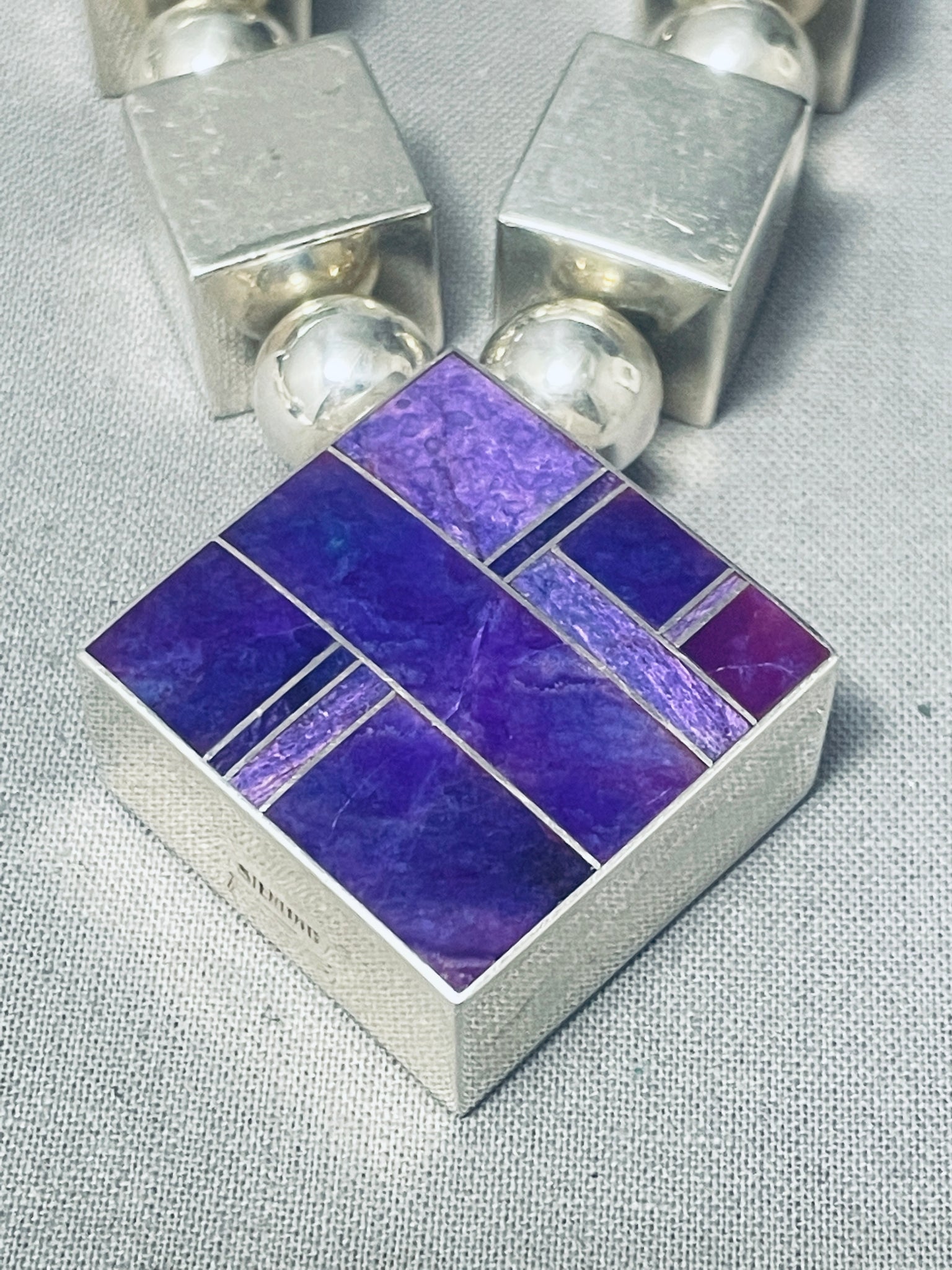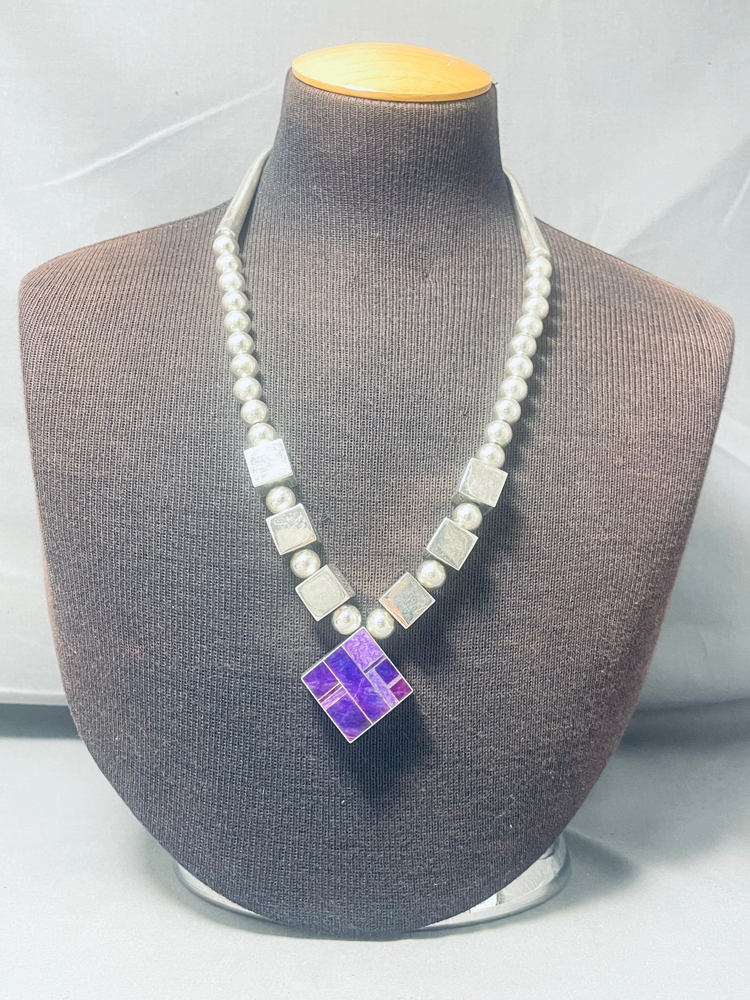 The Best Vintage Native American Navajo Charoite Sterling Silver Inlay Necklace