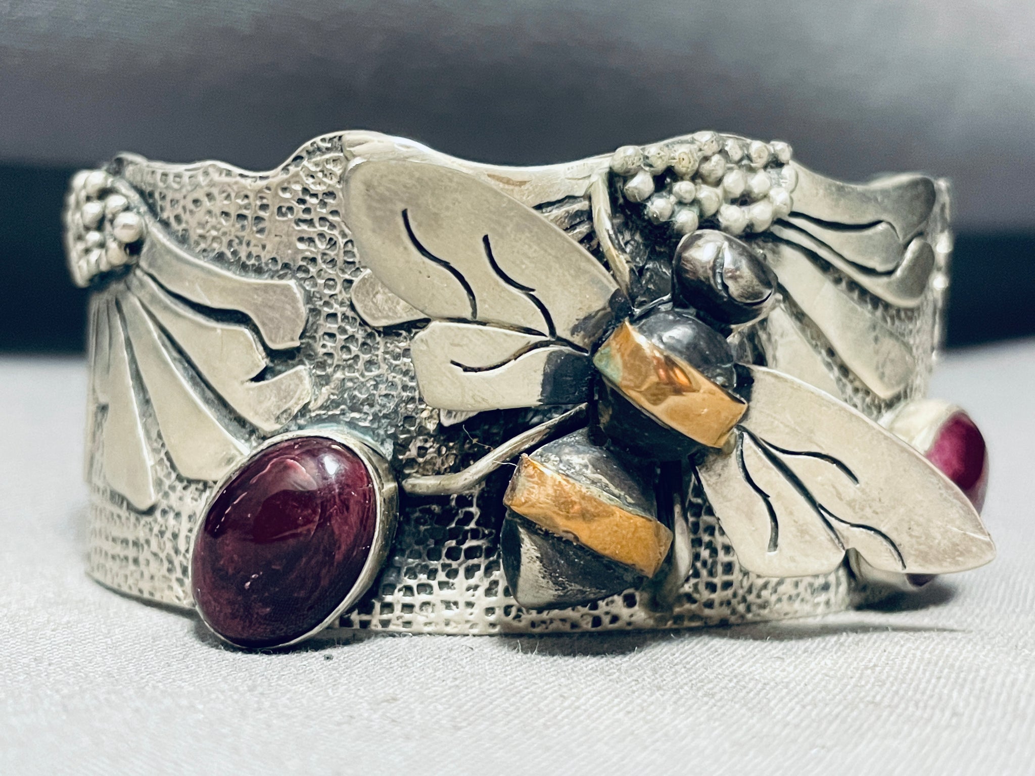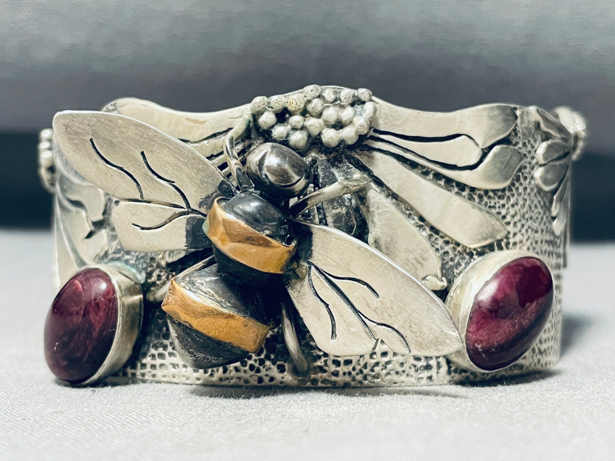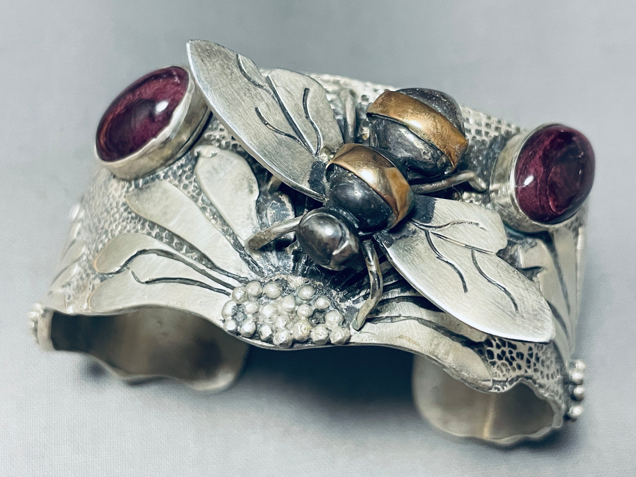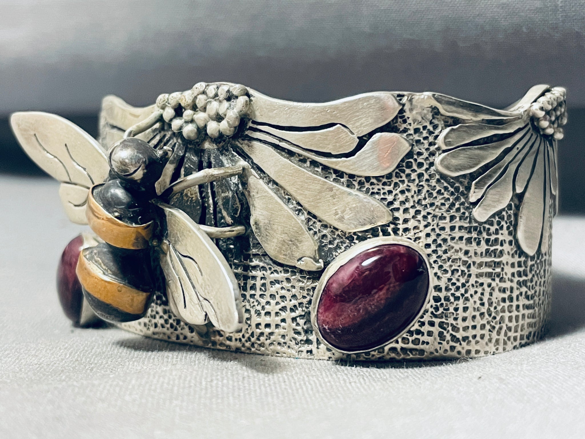 The Coolest Bee Vintage Native American Navajo Sterling Silver Purple Shell Bracelet