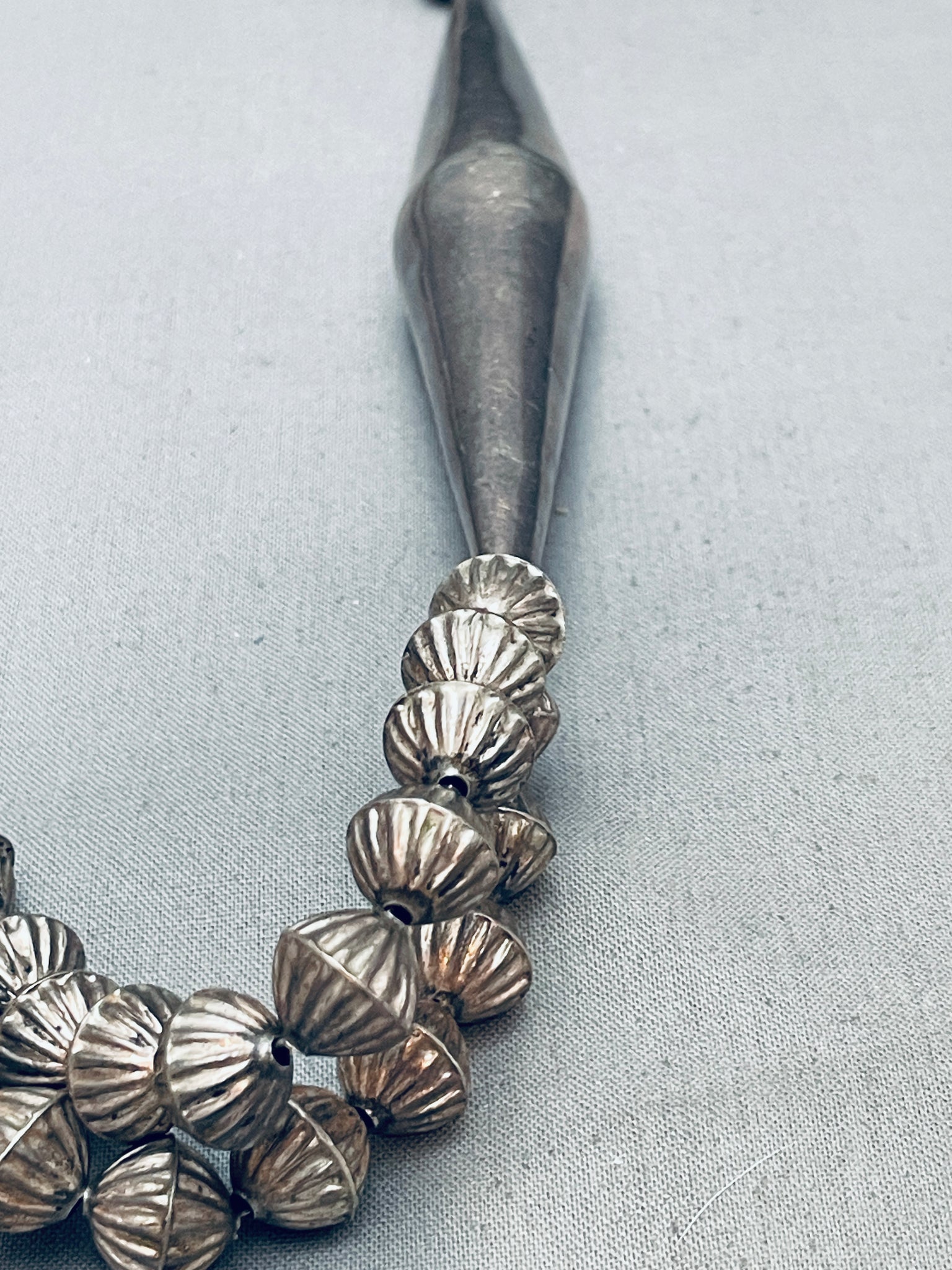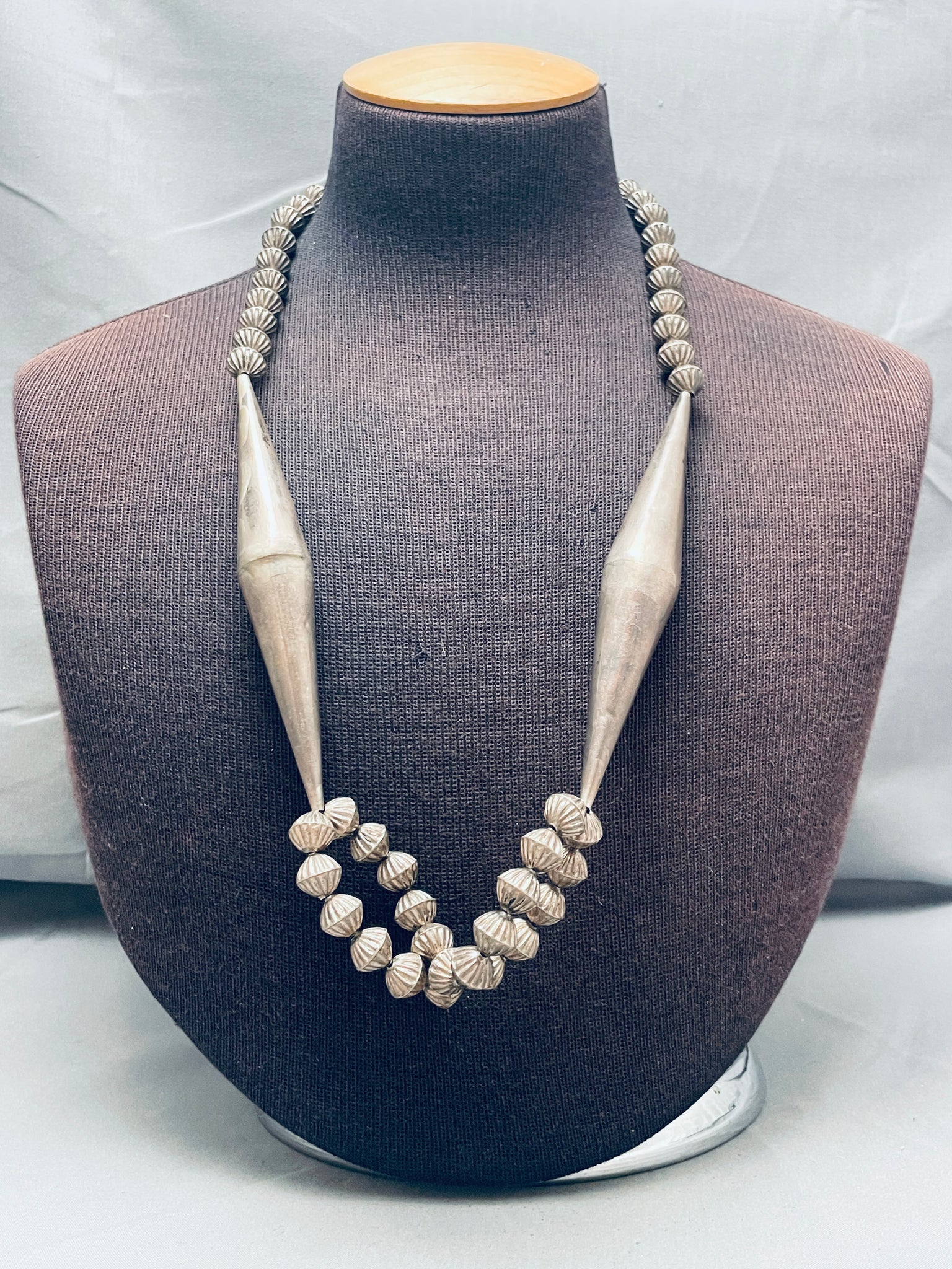 The Most Unique Vintage Native American Navajo Cone Sterling Silver Bead Necklace Old