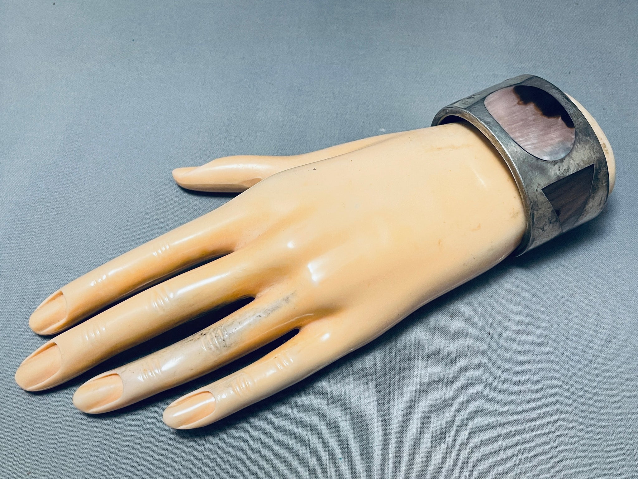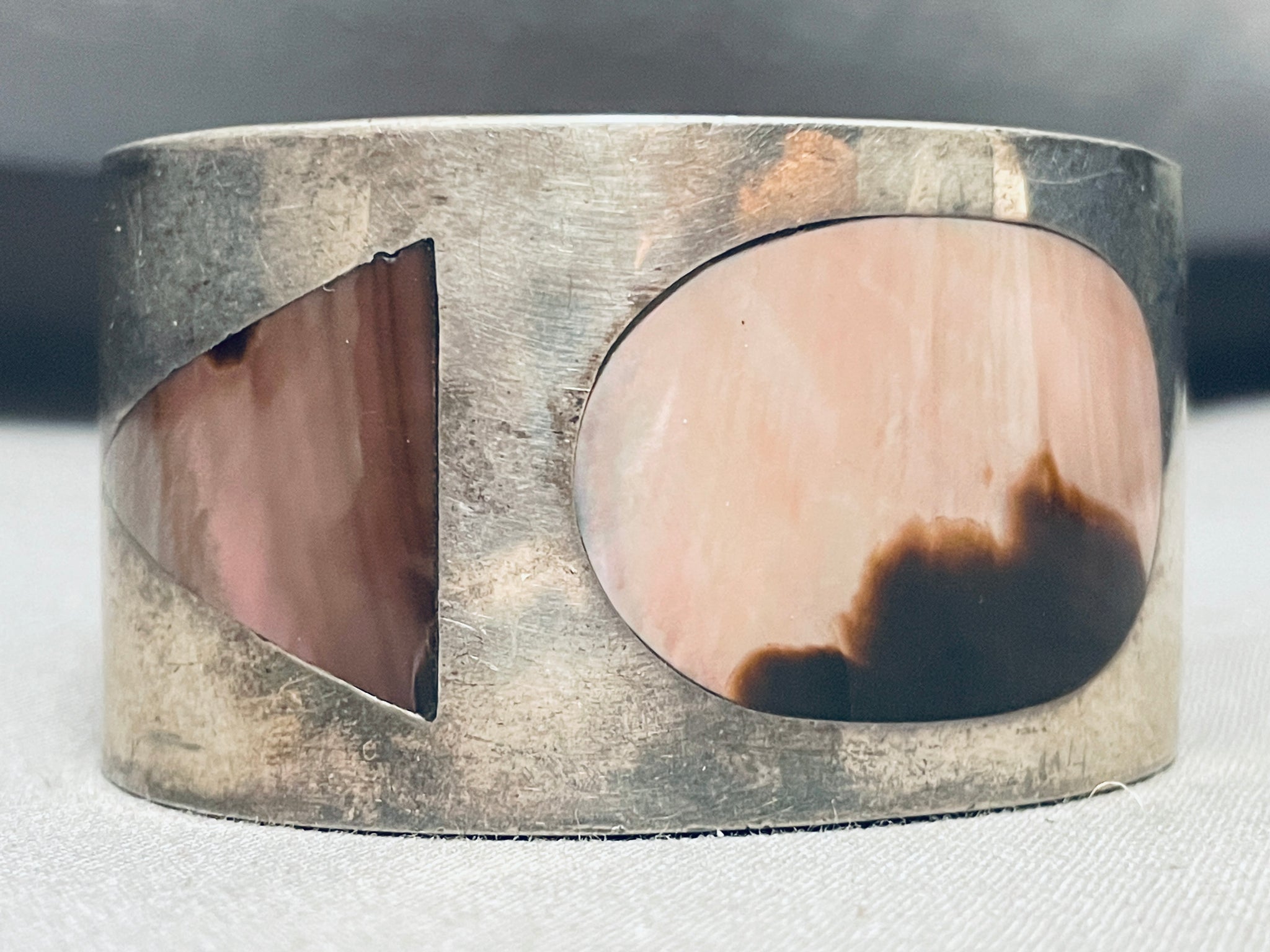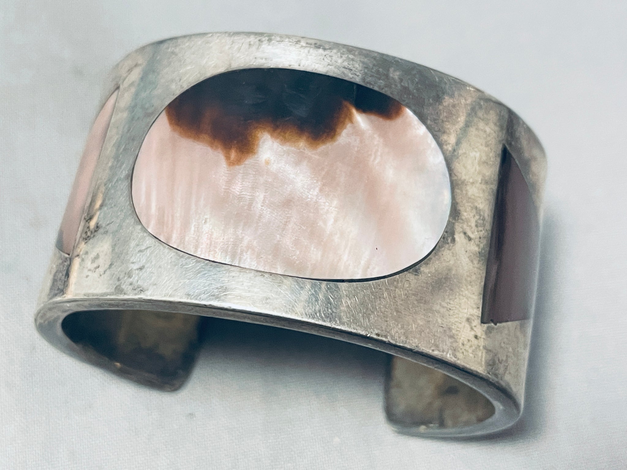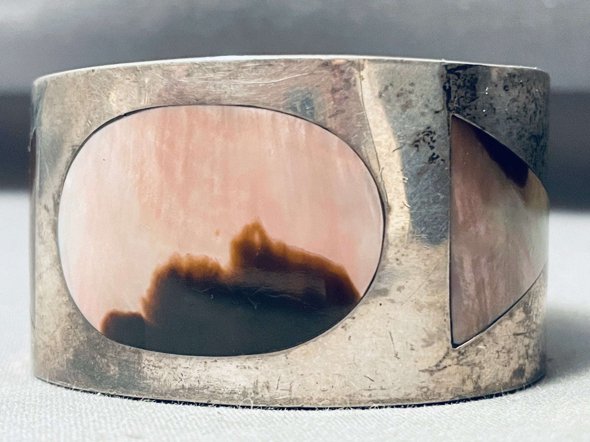The Most Unique Vintage Pink Shell Inlay Sterling Silver Bracelet