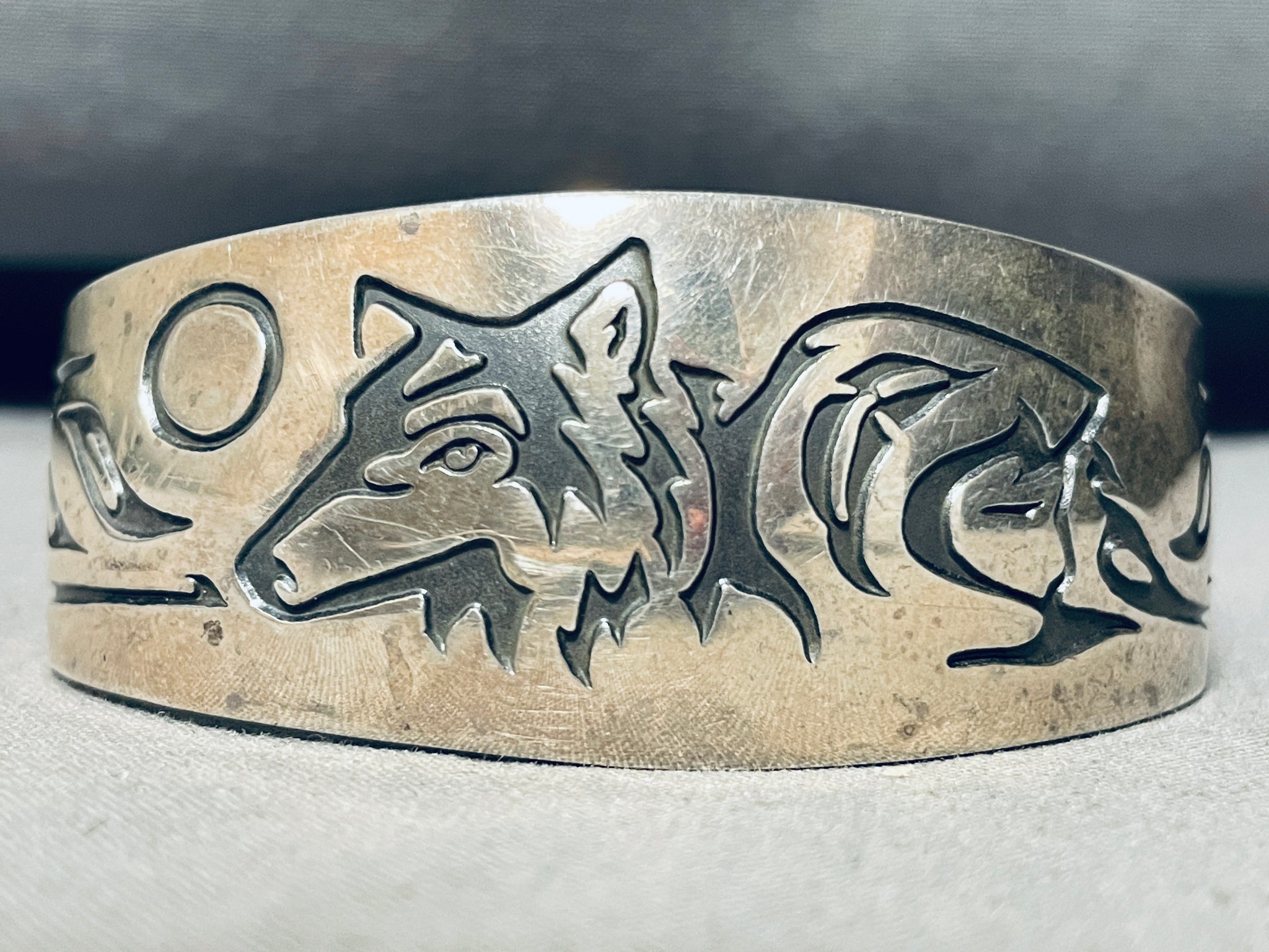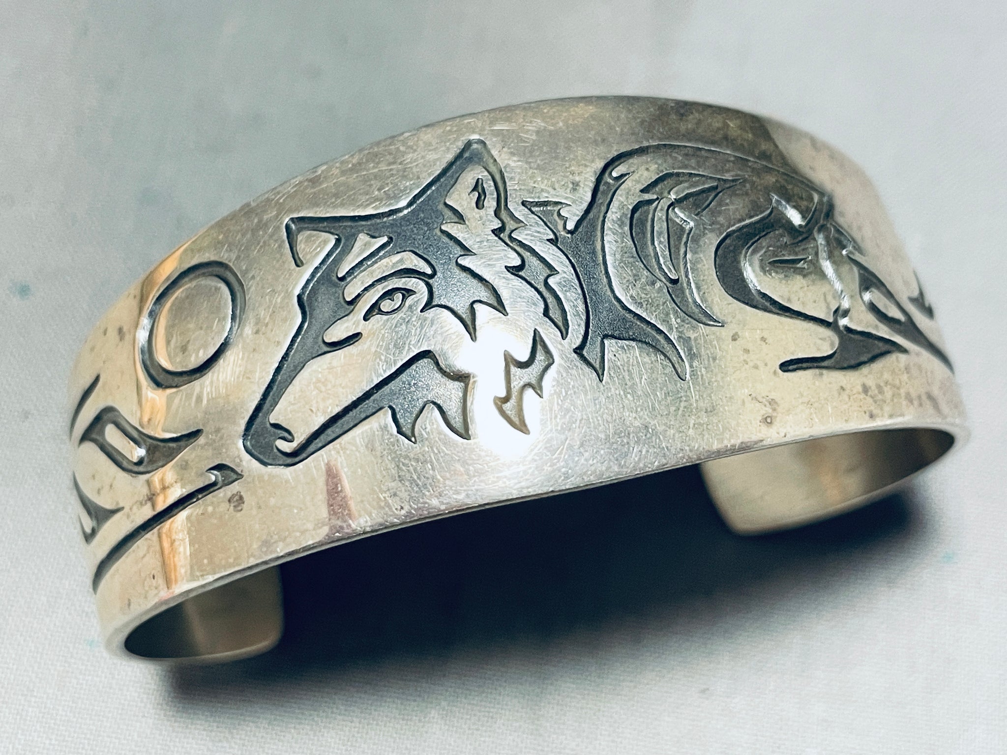 The Woman And The Wolf Vintage Native American Navajo Sterling Silver Bracelet Cuff