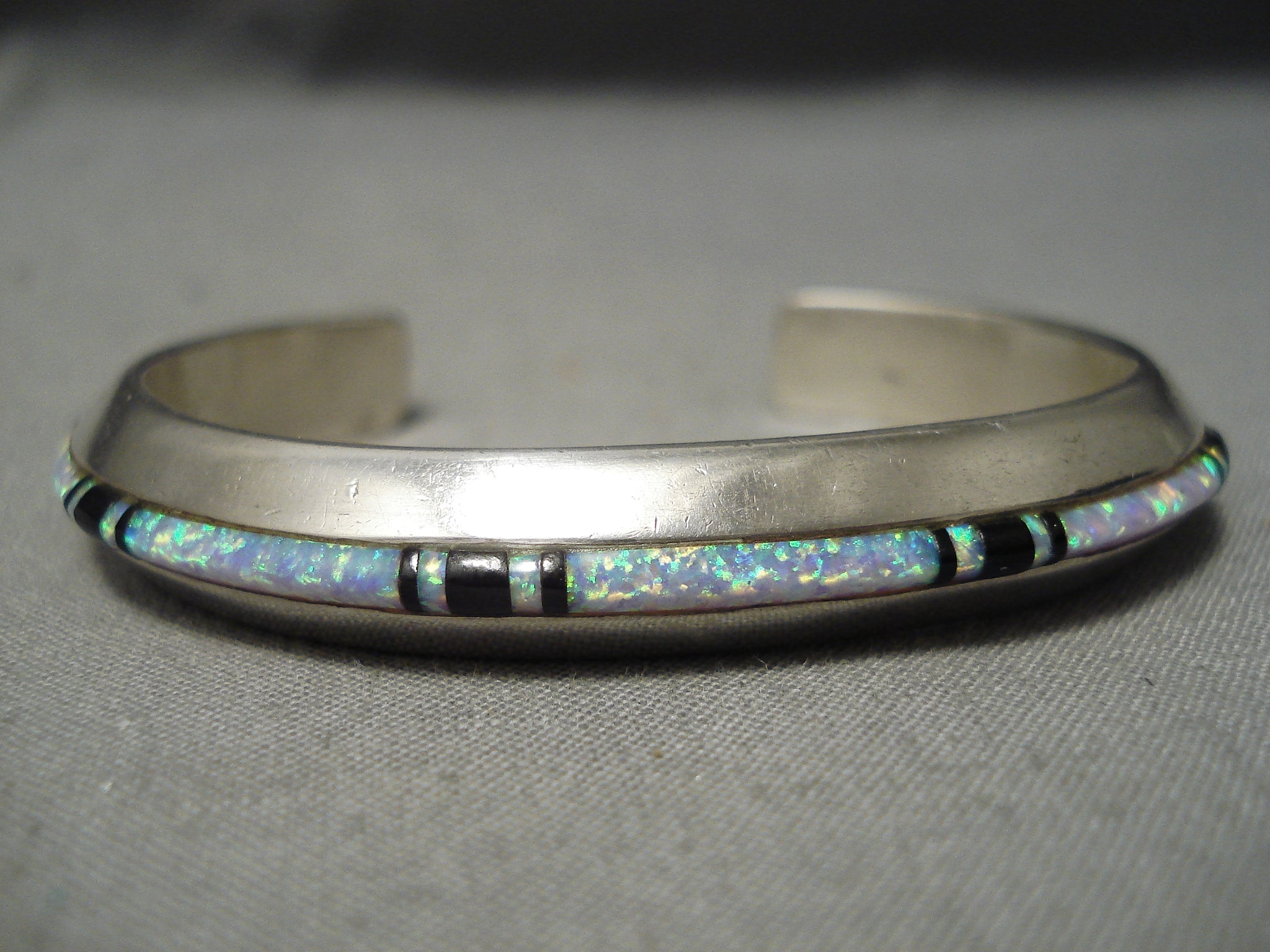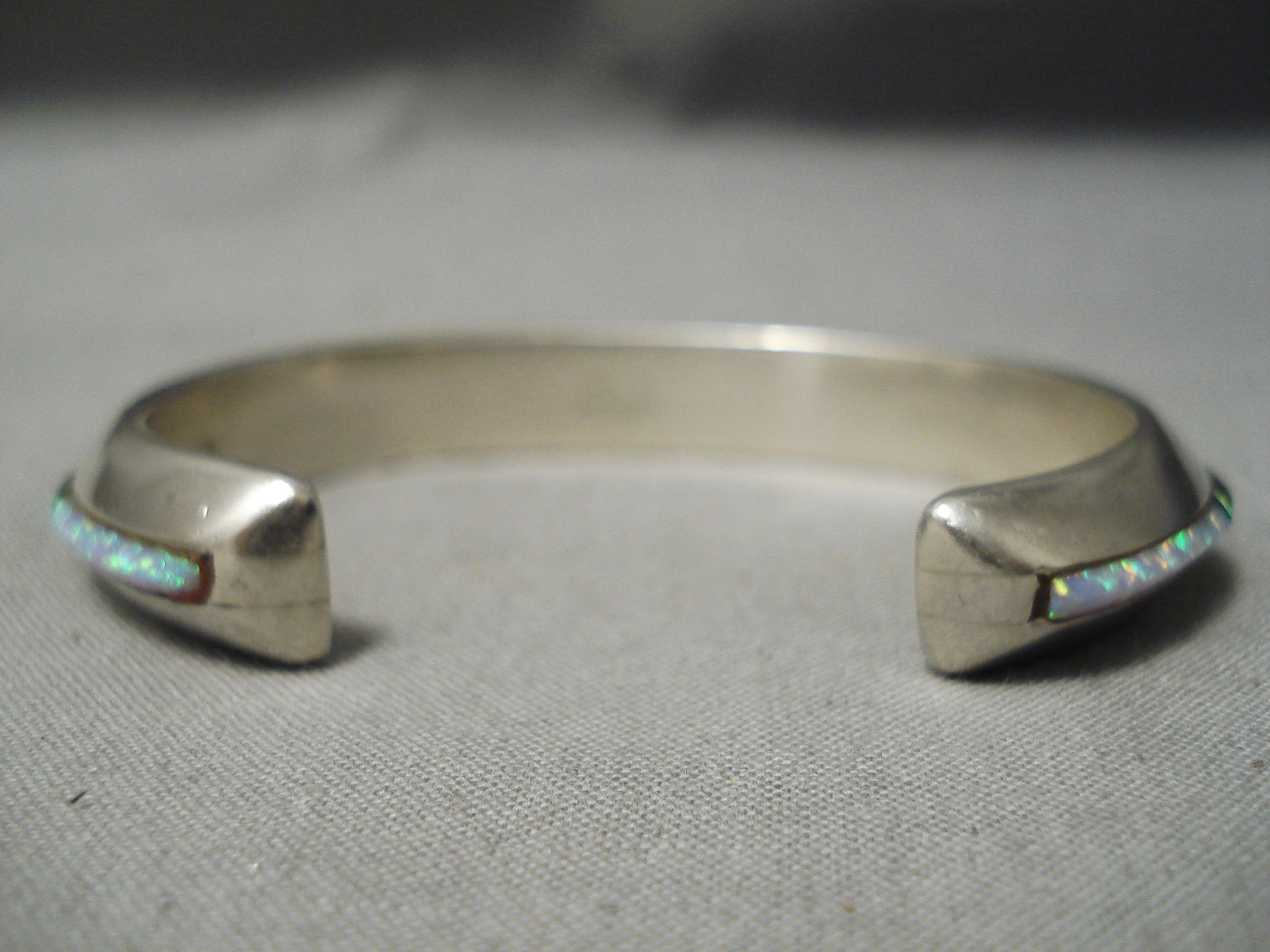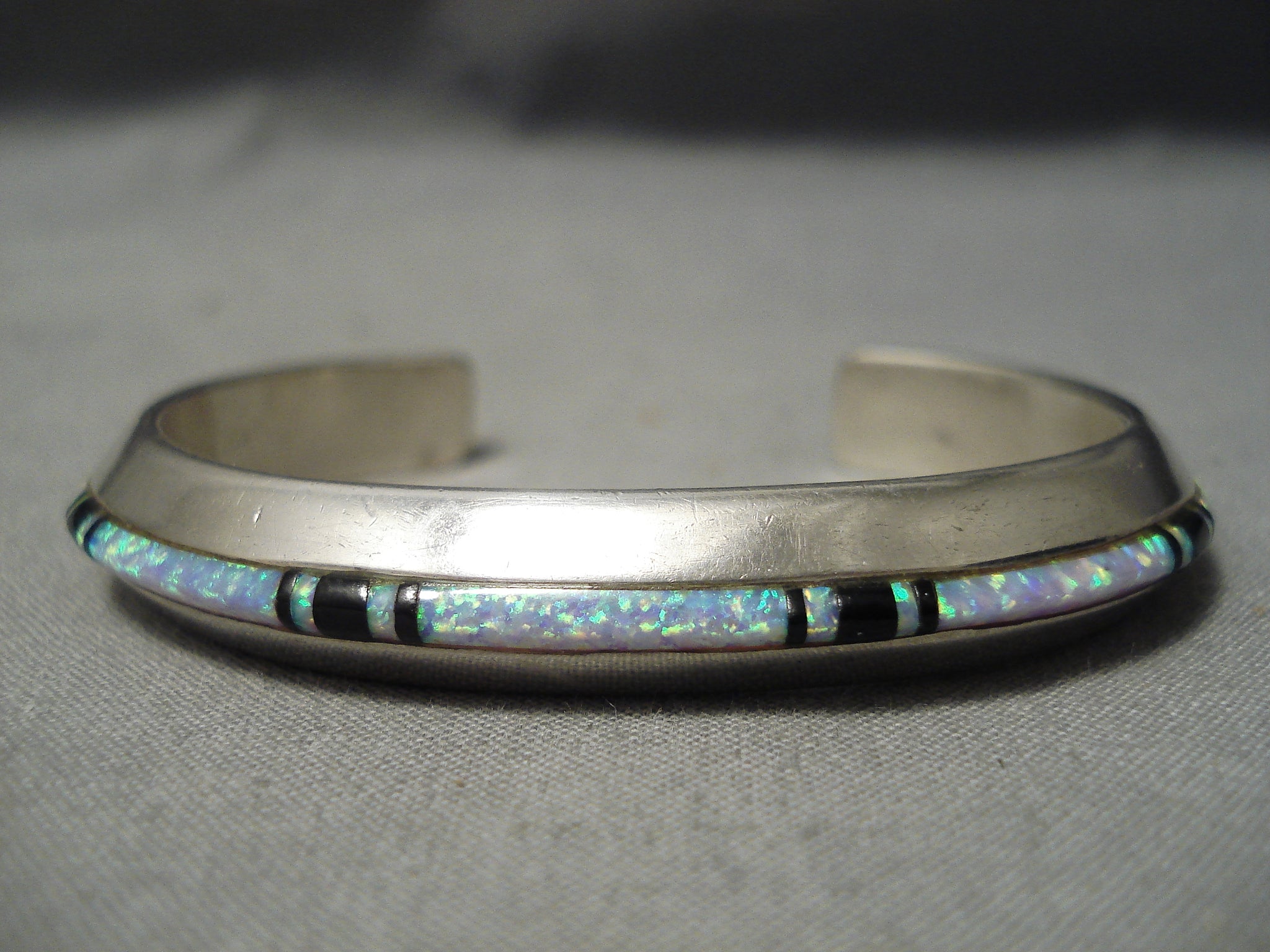 Thick And Sturdy Vintage Navajo Opal Sterling Silver Native American Bracelet