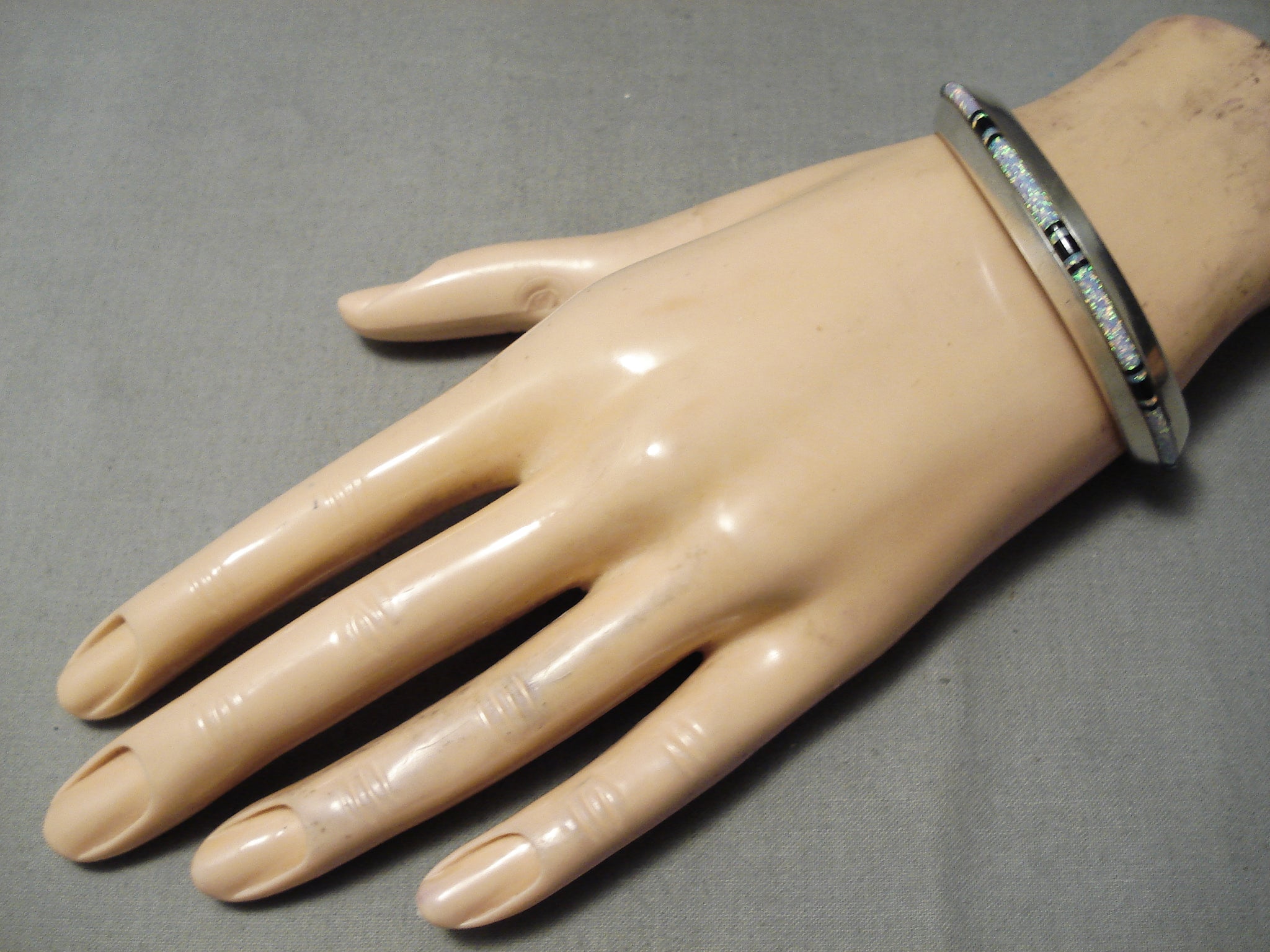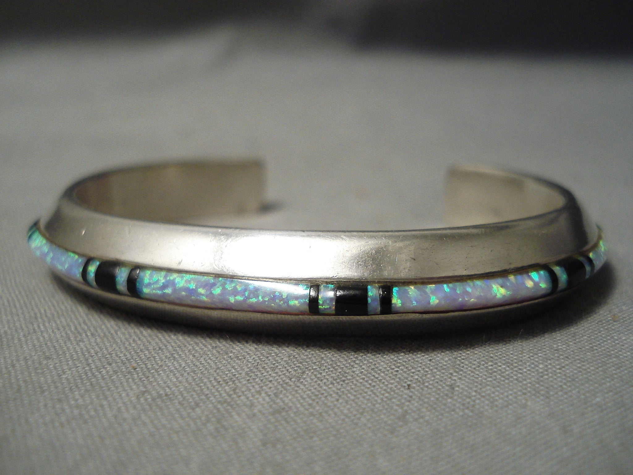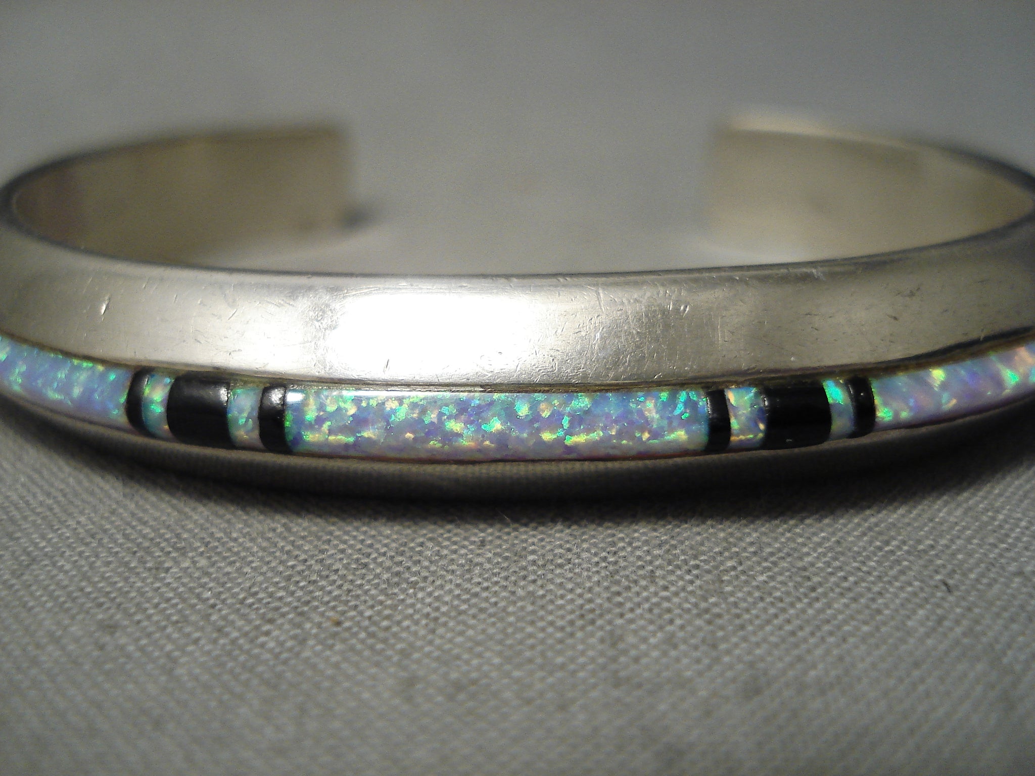 Thick And Sturdy Vintage Navajo Opal Sterling Silver Native American Bracelet