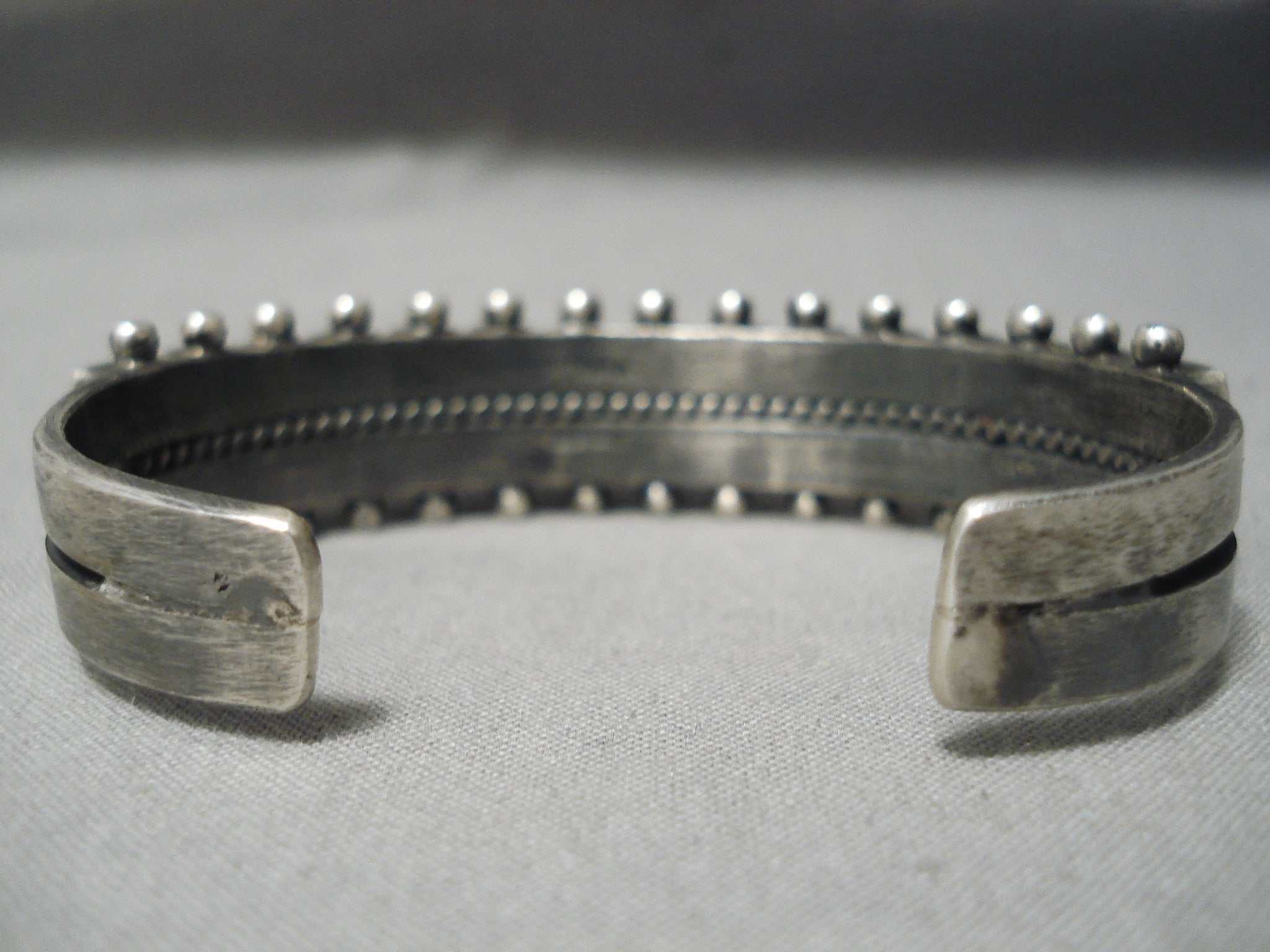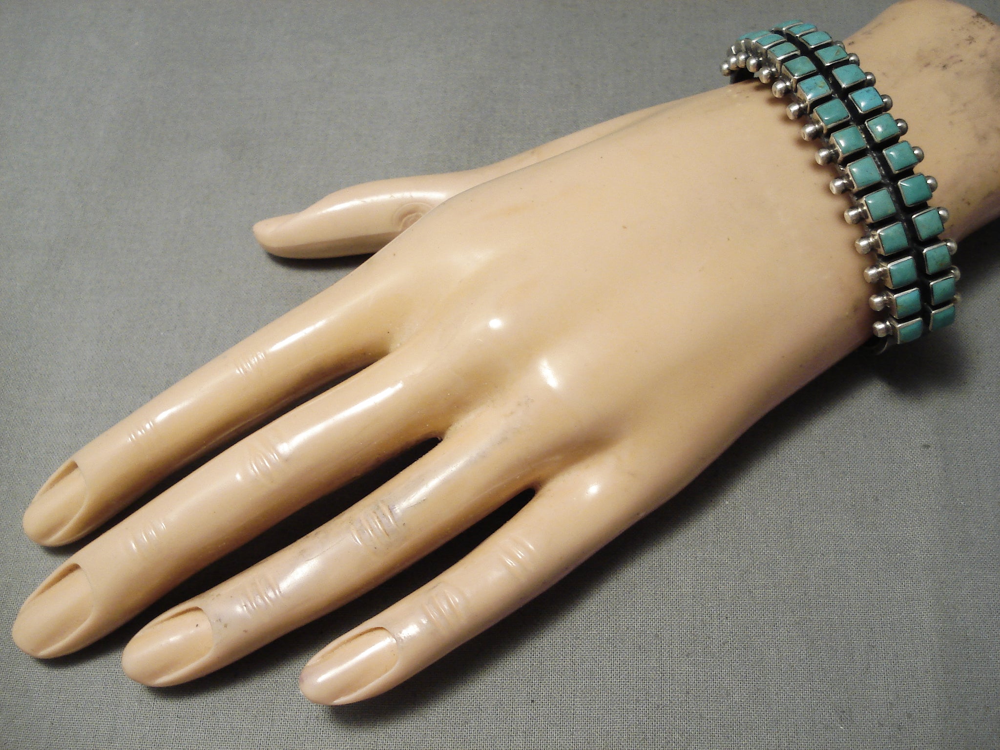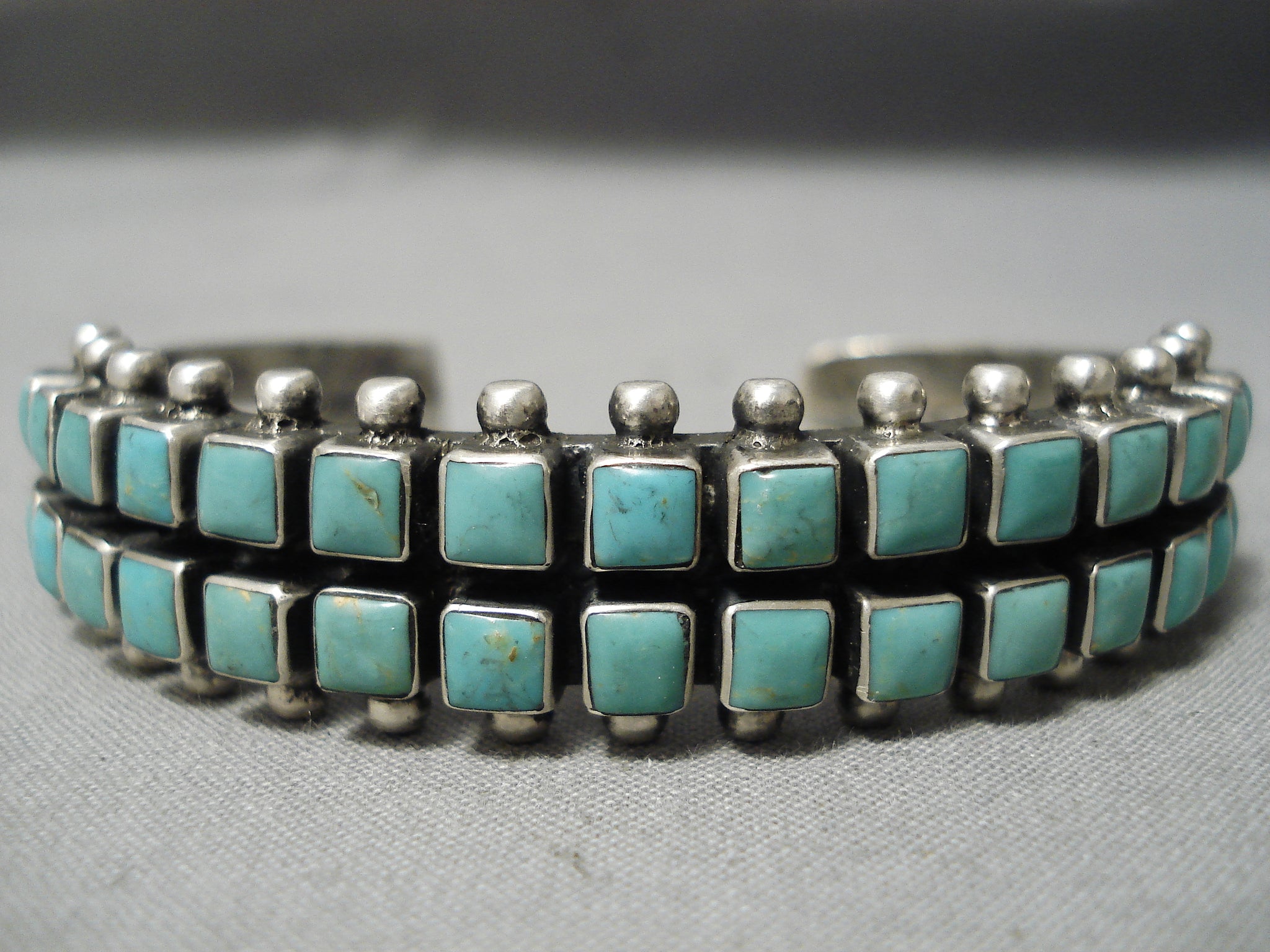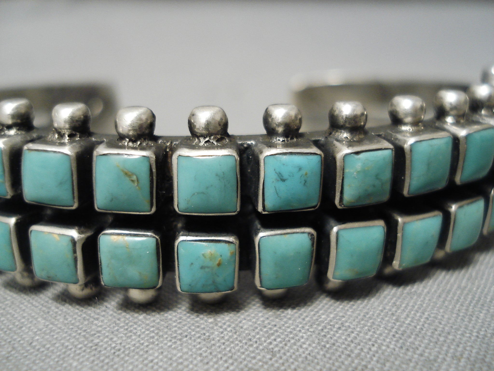 Thick Heavy Vintage Native American Navajo Squared Turquoise Sterling Silver Bracelet