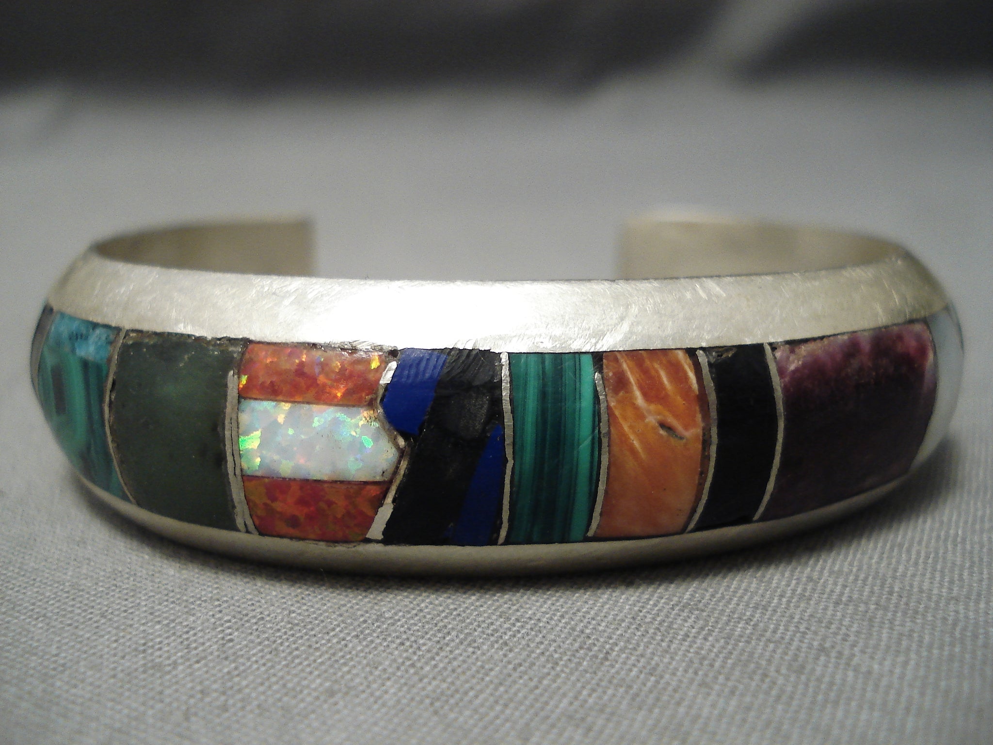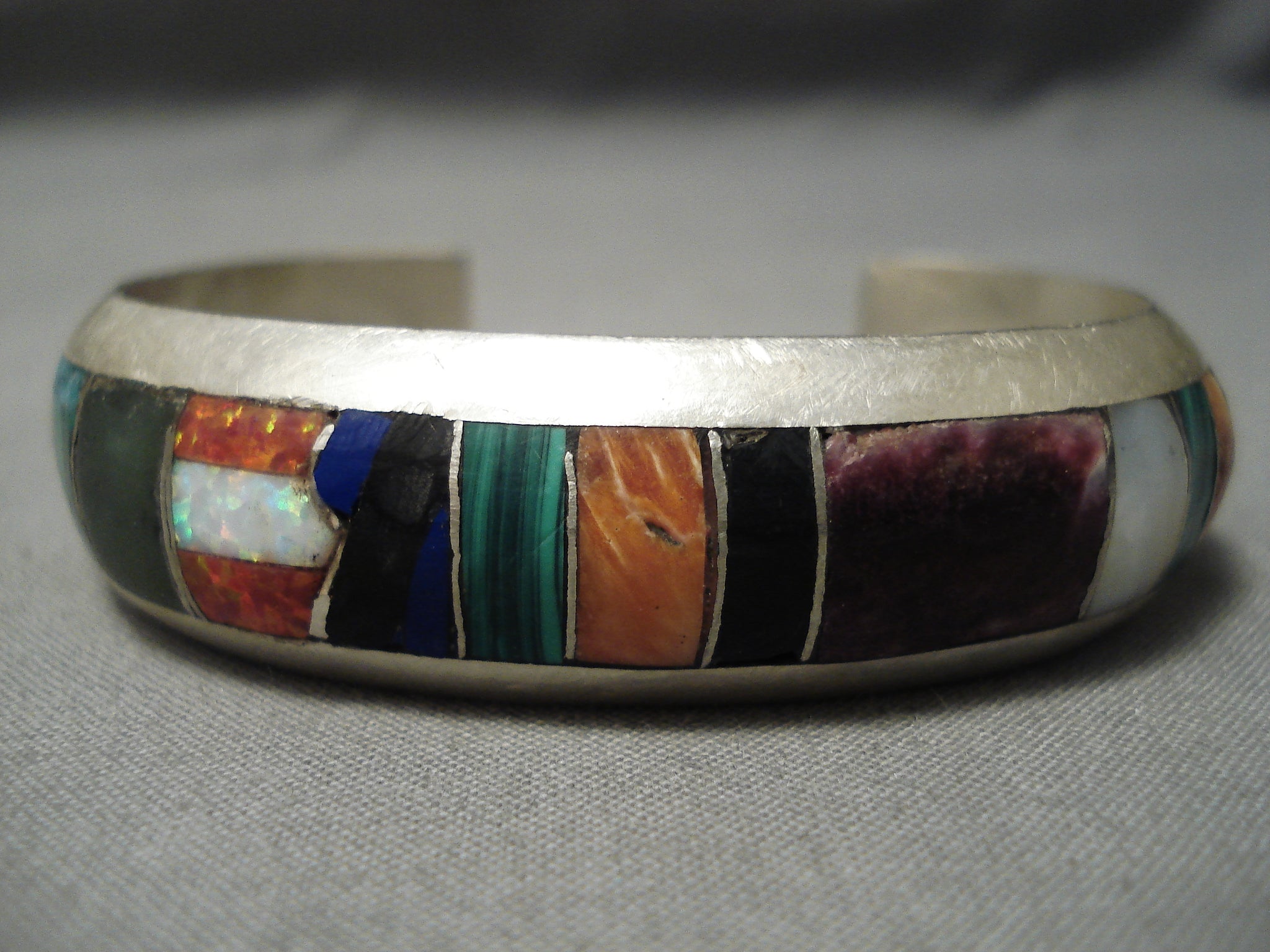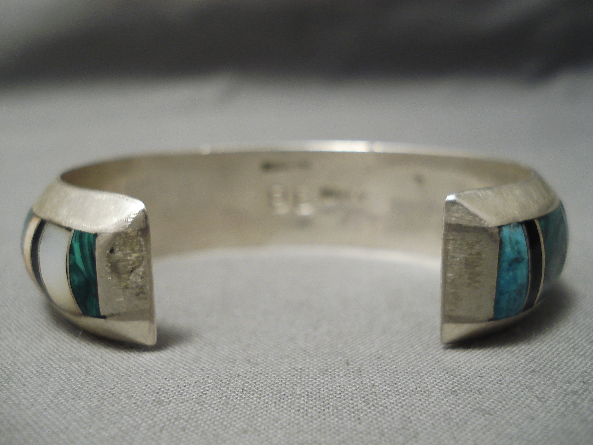 Thick Heavy Vintage Native American Navajo Turquoise Lapis Sterling Silver Bracelet Old
