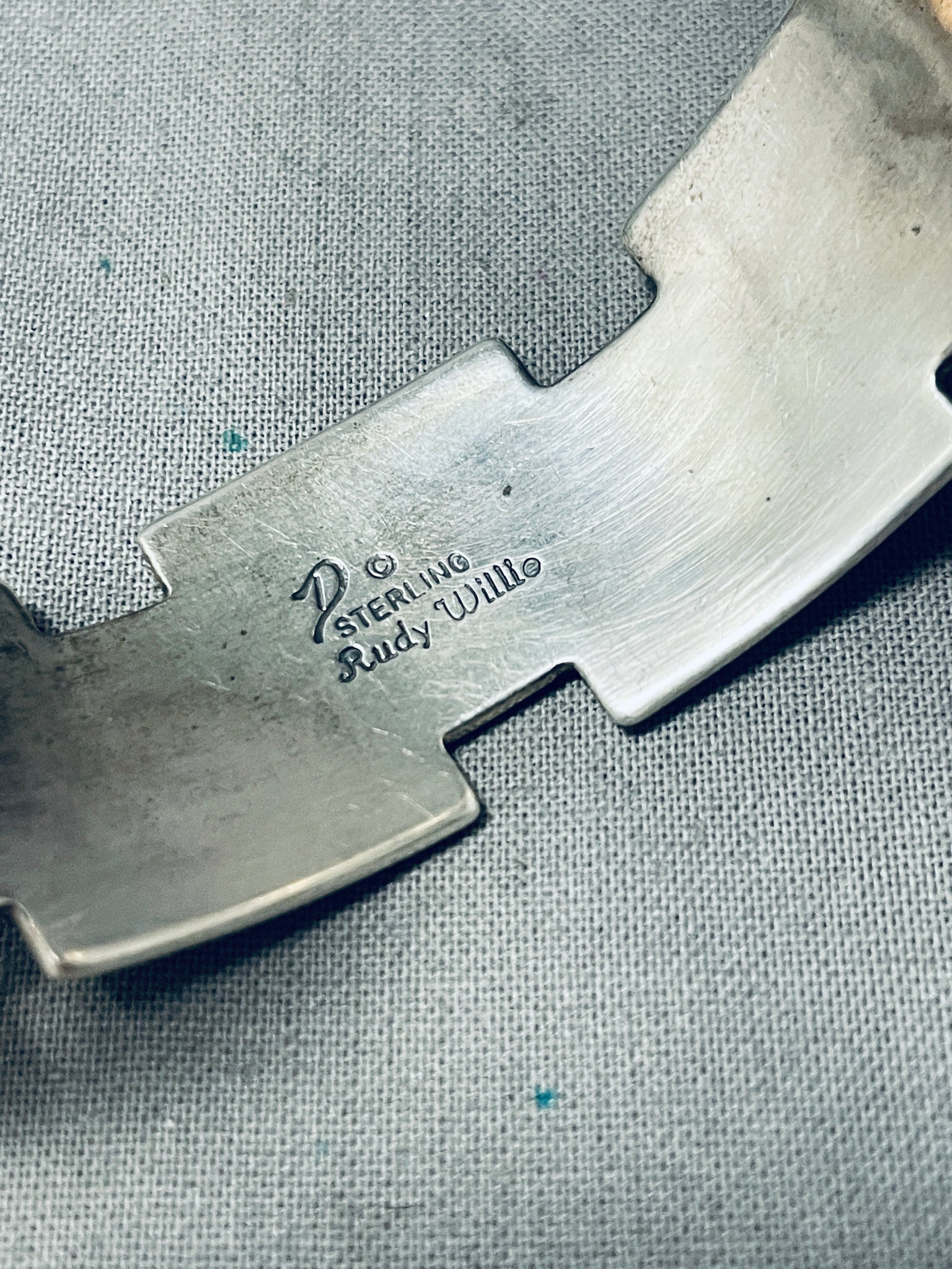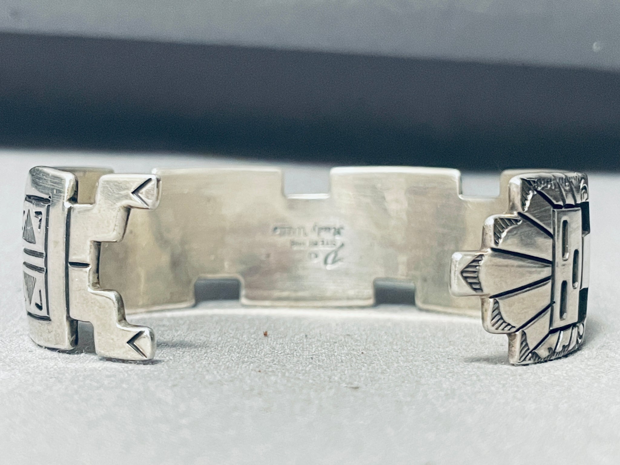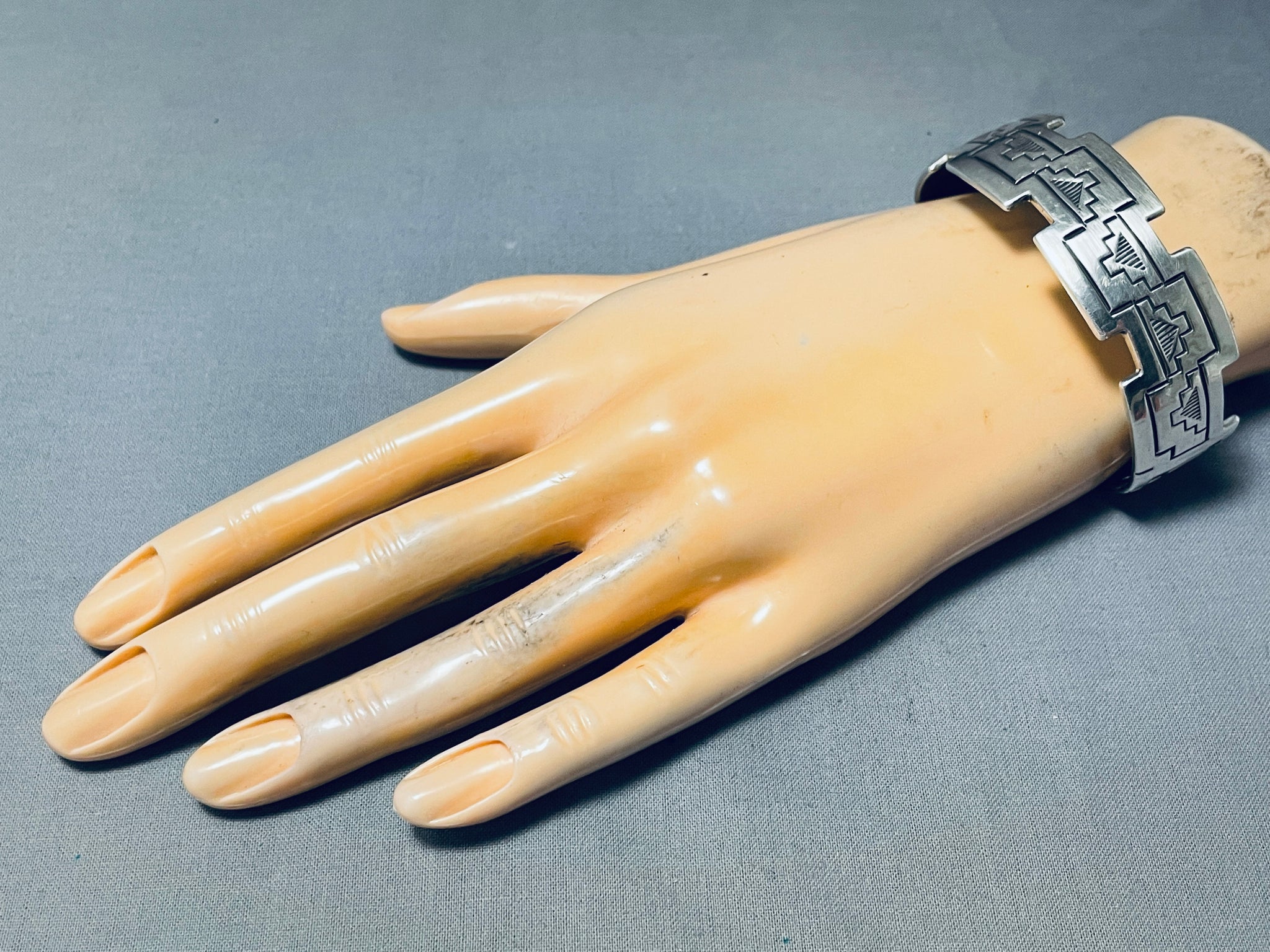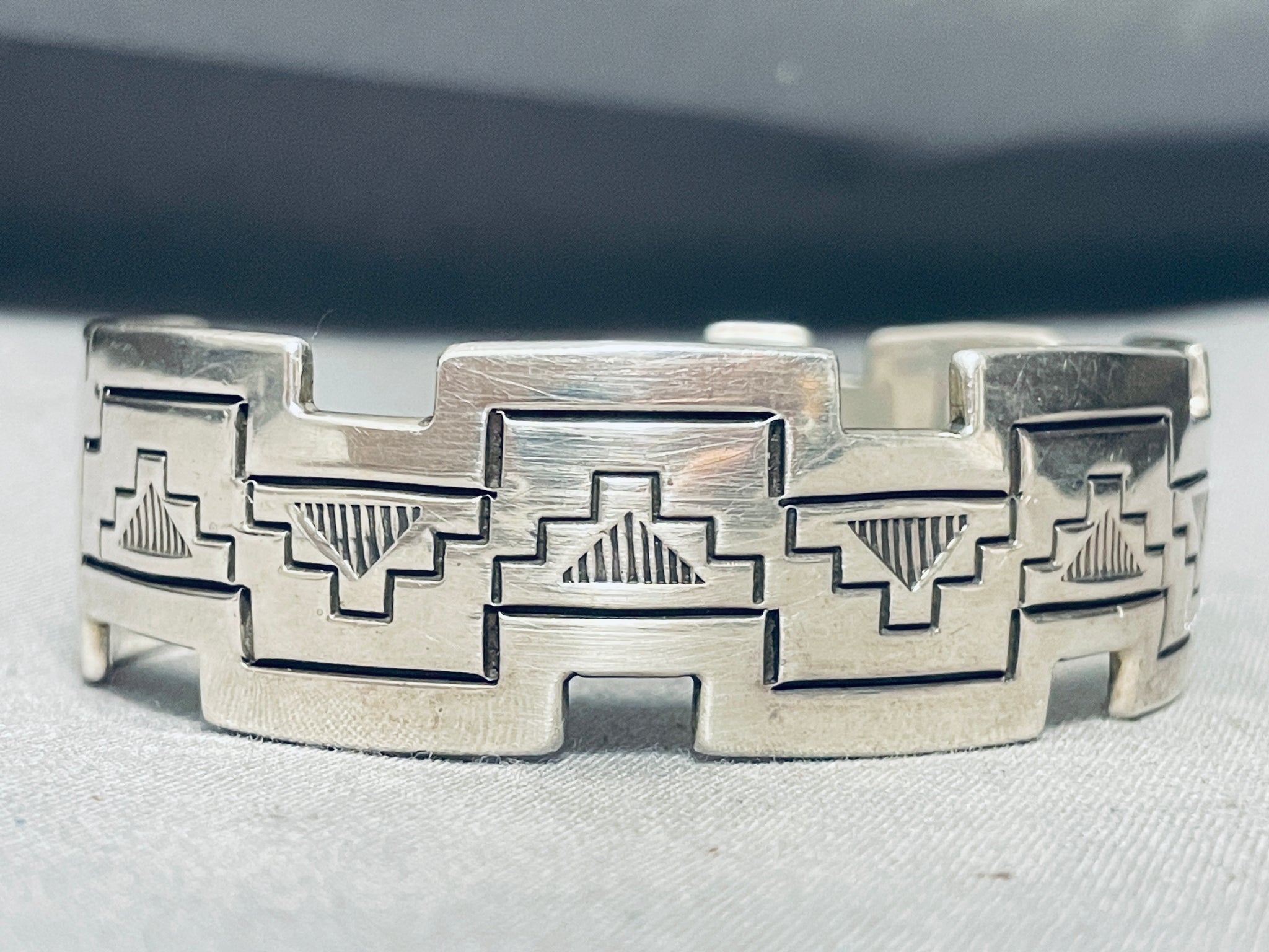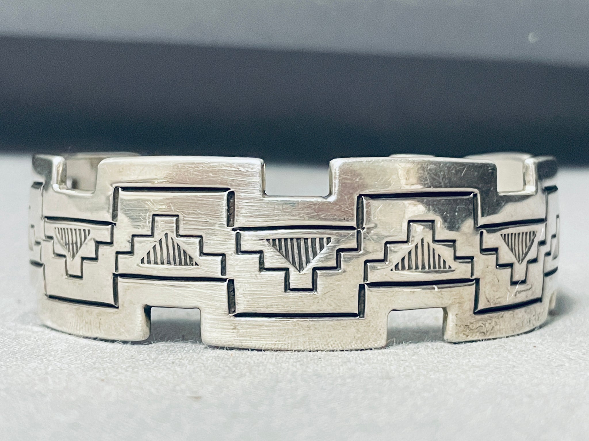 Thick Rudy Willie Vintage Native American Navajo Sterling Silver Geomtric Bracelet Cuff