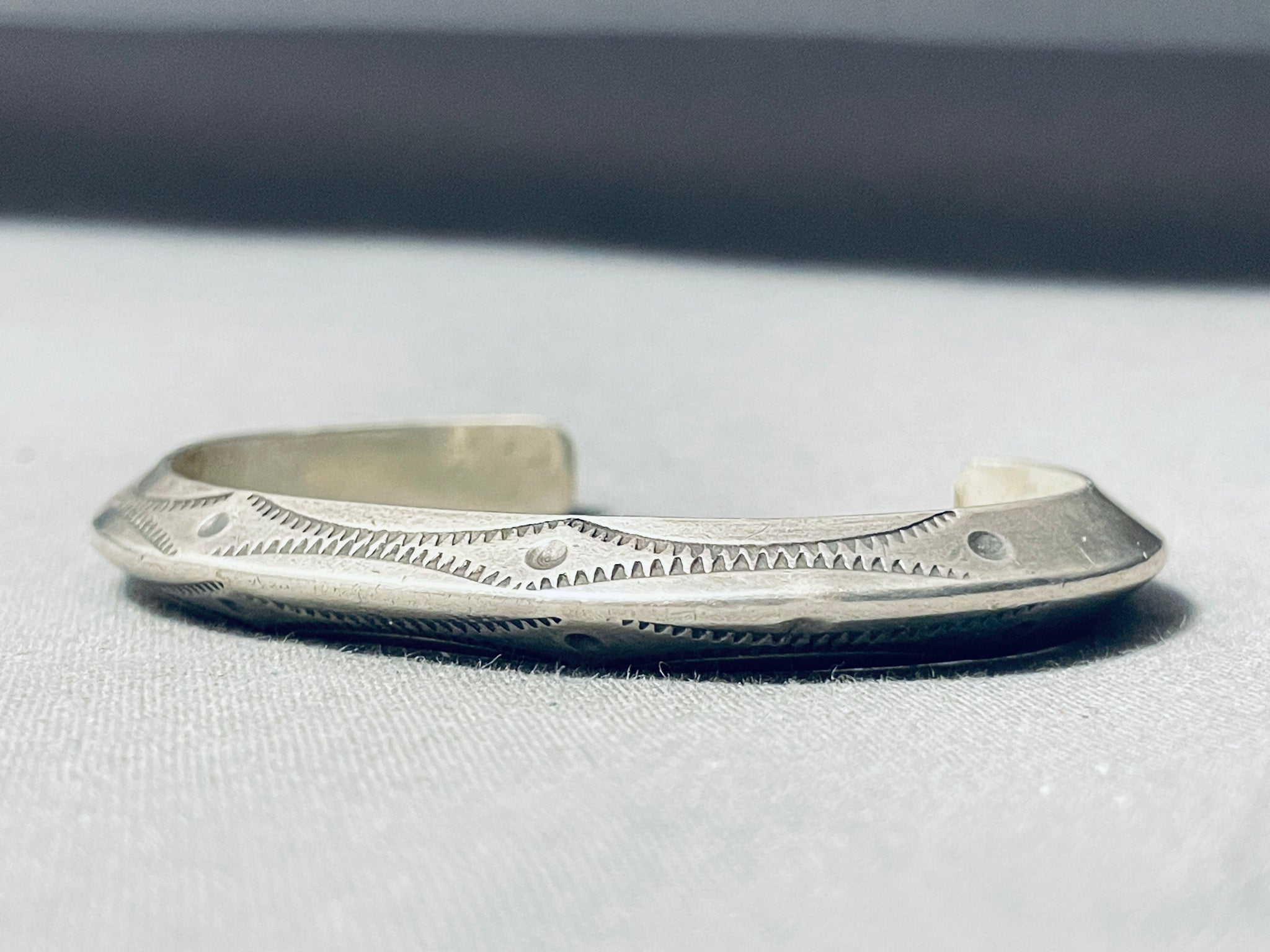Thicker Vintage Native American Navajo Traingular Cuff Sterling Silver Bracelet